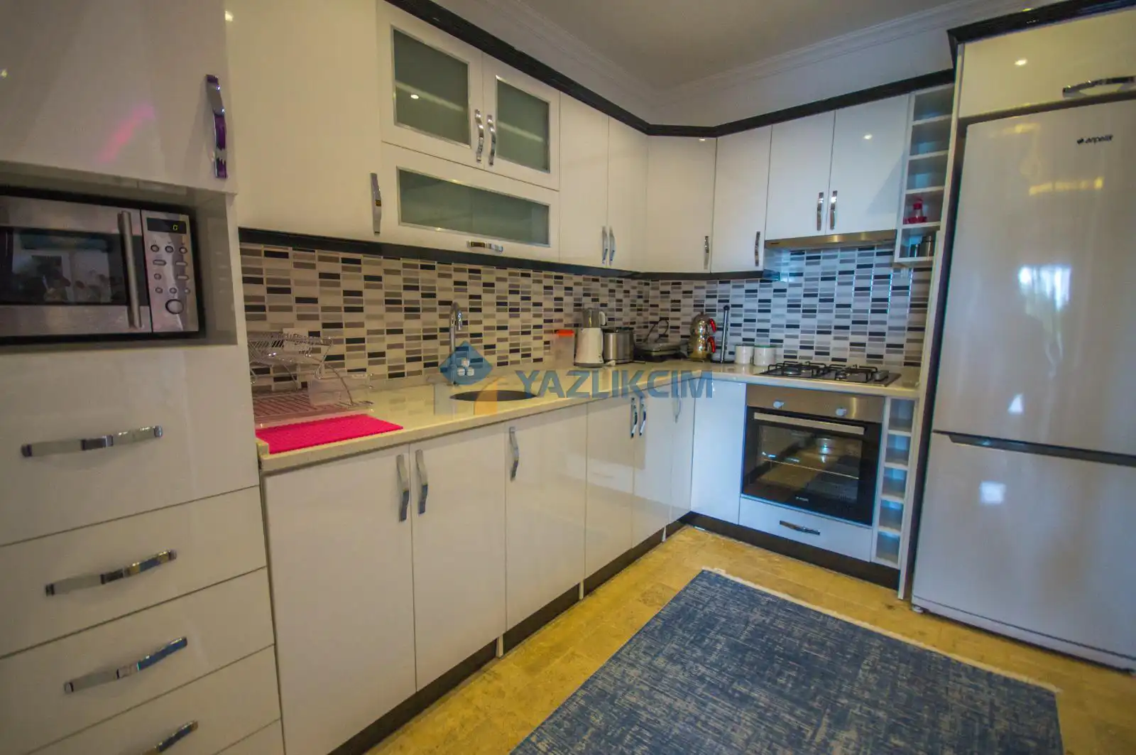 Mutfak Detayları: Buzdolabı, Bulaşık makinesi, Çamaşır makinesi, , Fırın, 4’lü Ocak, Elektrikli su ısıtıcı, 2 kişilik yemek takımı, Tava, Tencereler, Çatal bıçak vb.