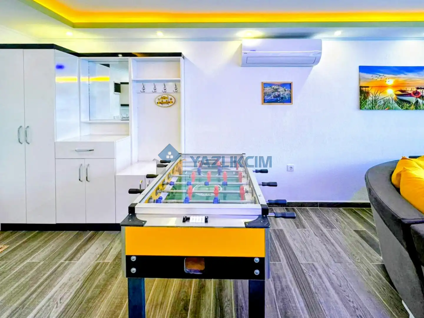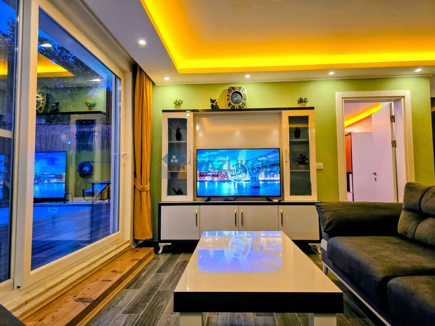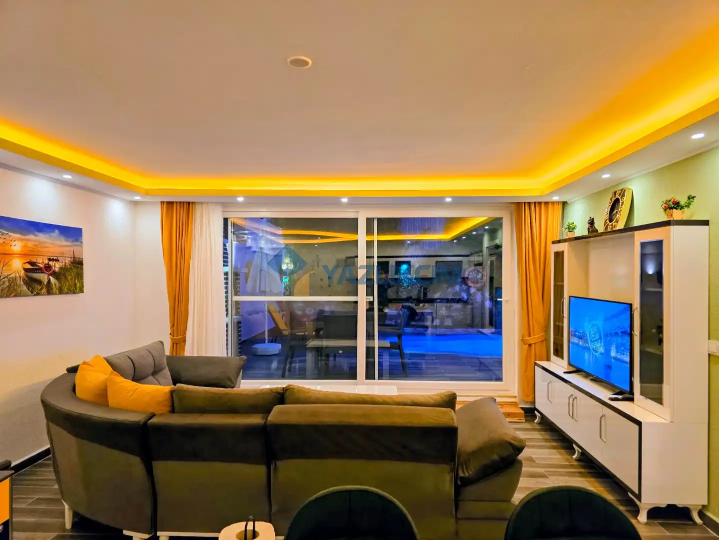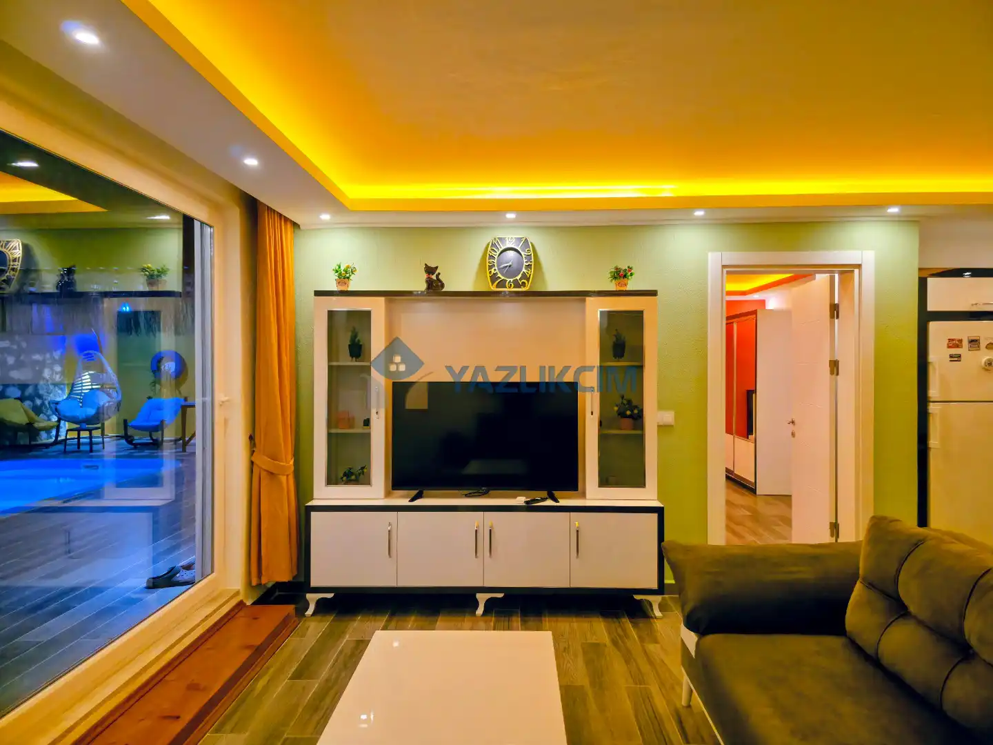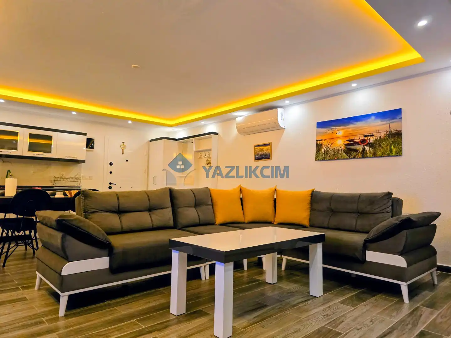 Salon Detayları: LCD TV, modern  oturma grubu, sauna, mama sandalyesi, yemek masası ve sandalyeler, kablosuz modem bulunmaktadır.