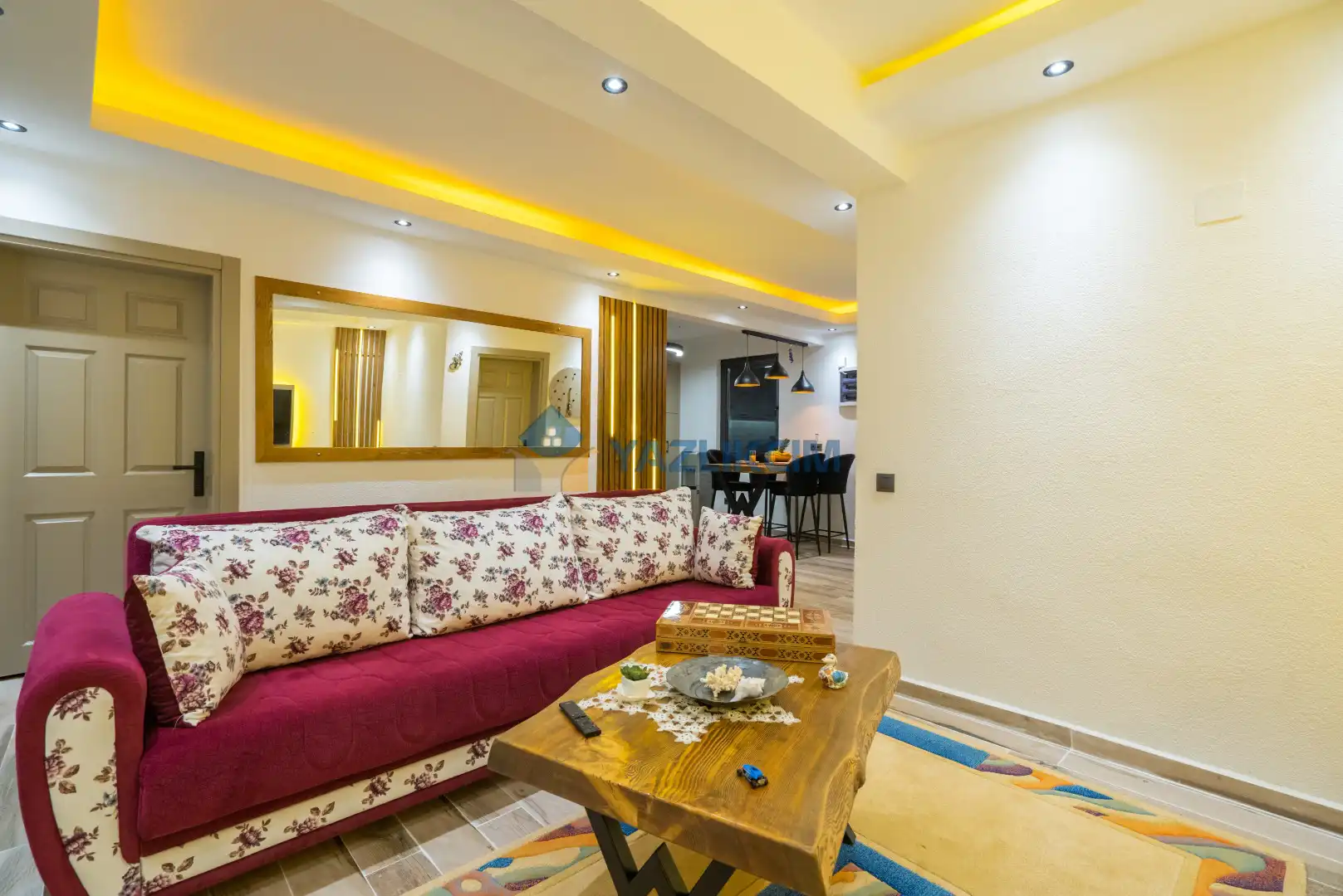 Salon Detayları: LCD TV,modern  oturma grubu,yemek masası ve sandalyeler,kablosuz modem bulunmaktadır.