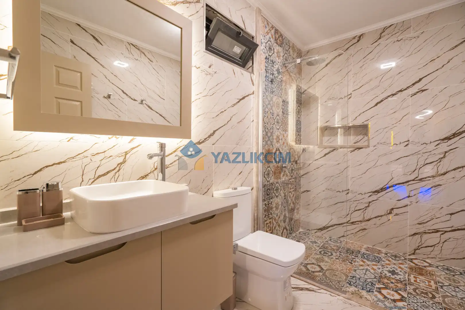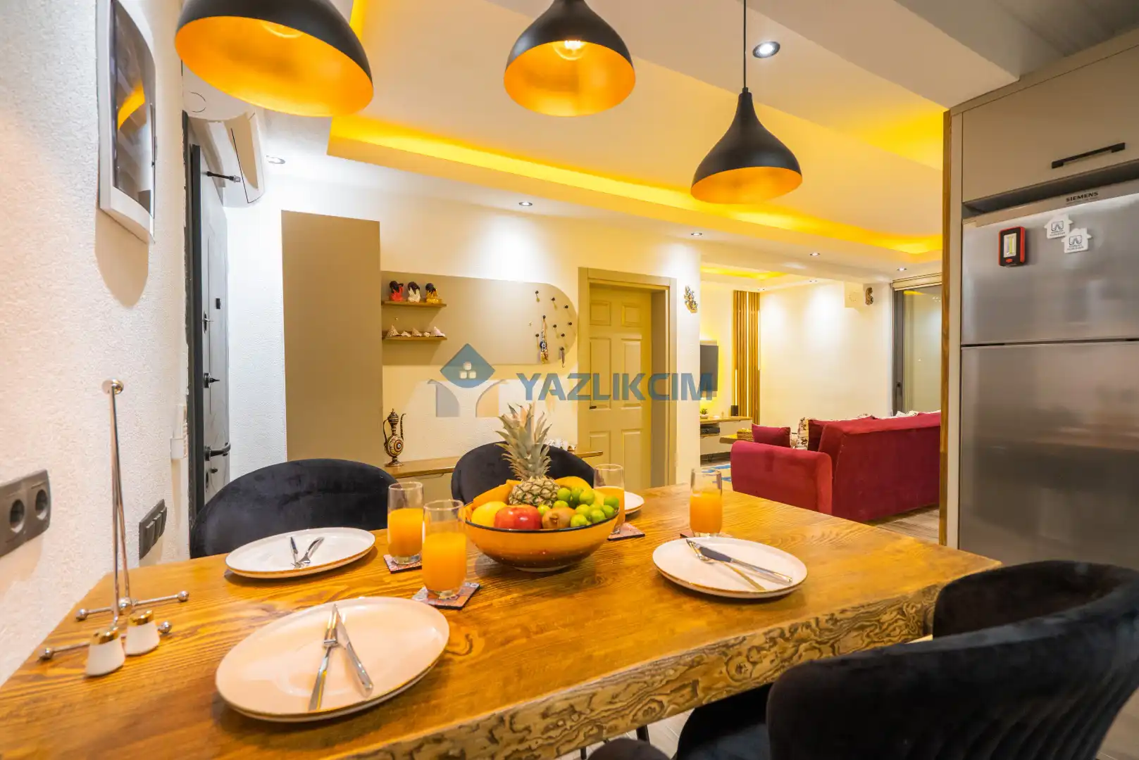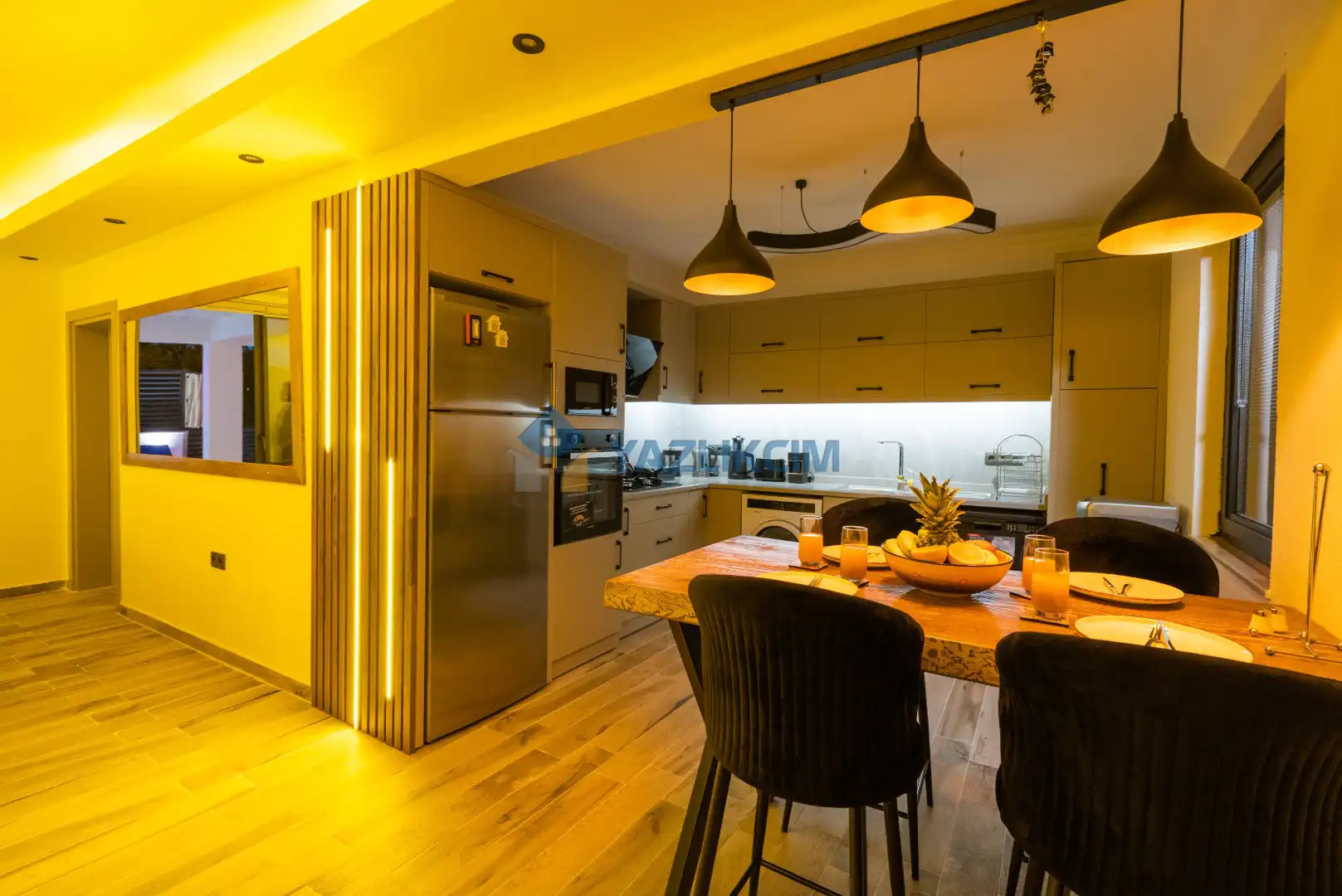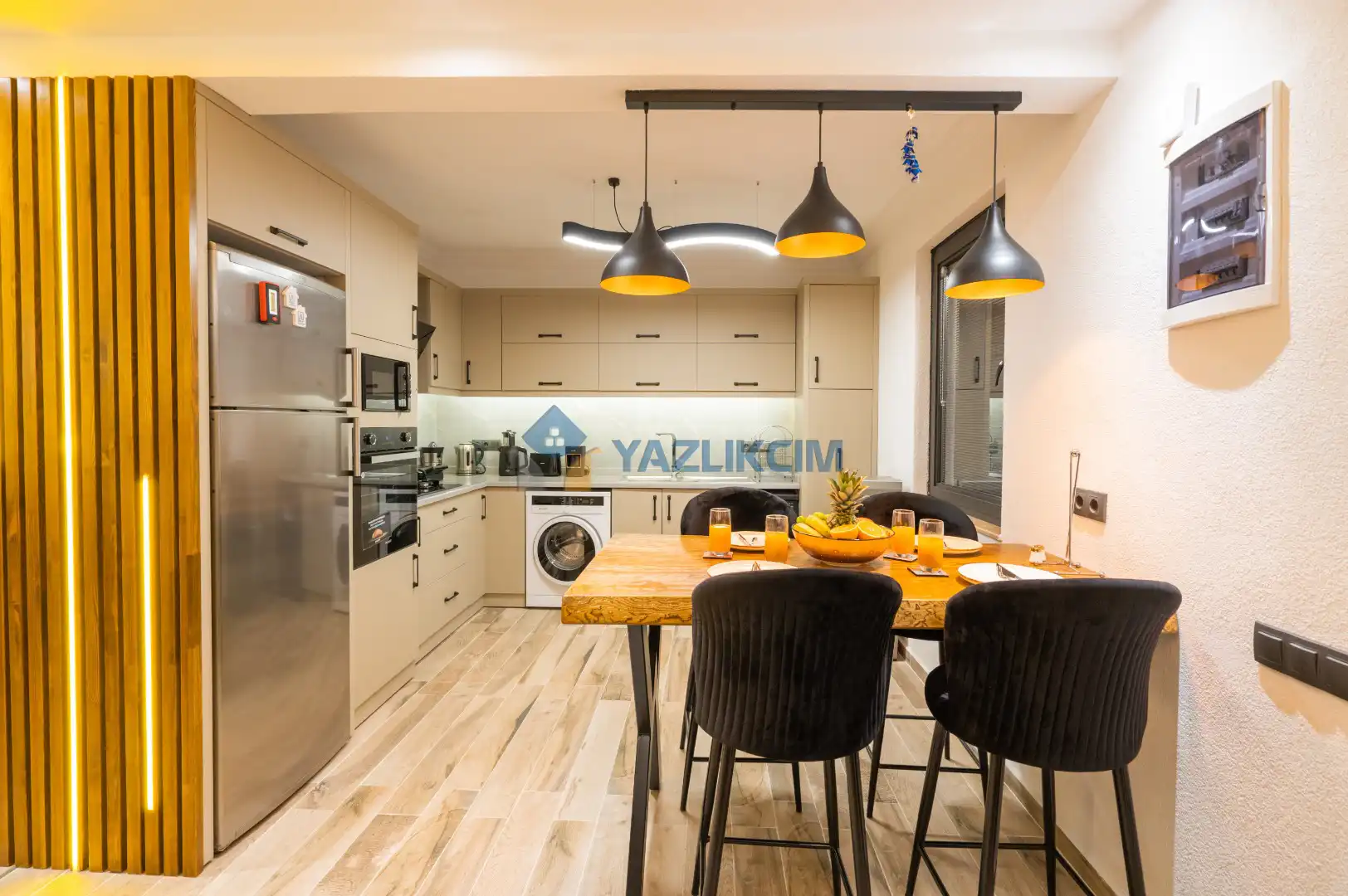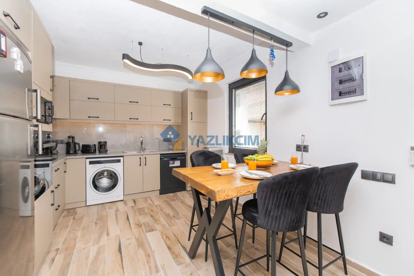 Mutfak Detayları:  Buzdolabı, bulaşık makinesi, fırın, çamaşır makinesi, yemek takımı, tava-tencere, çatal-bıçak seti bulunmaktadır.