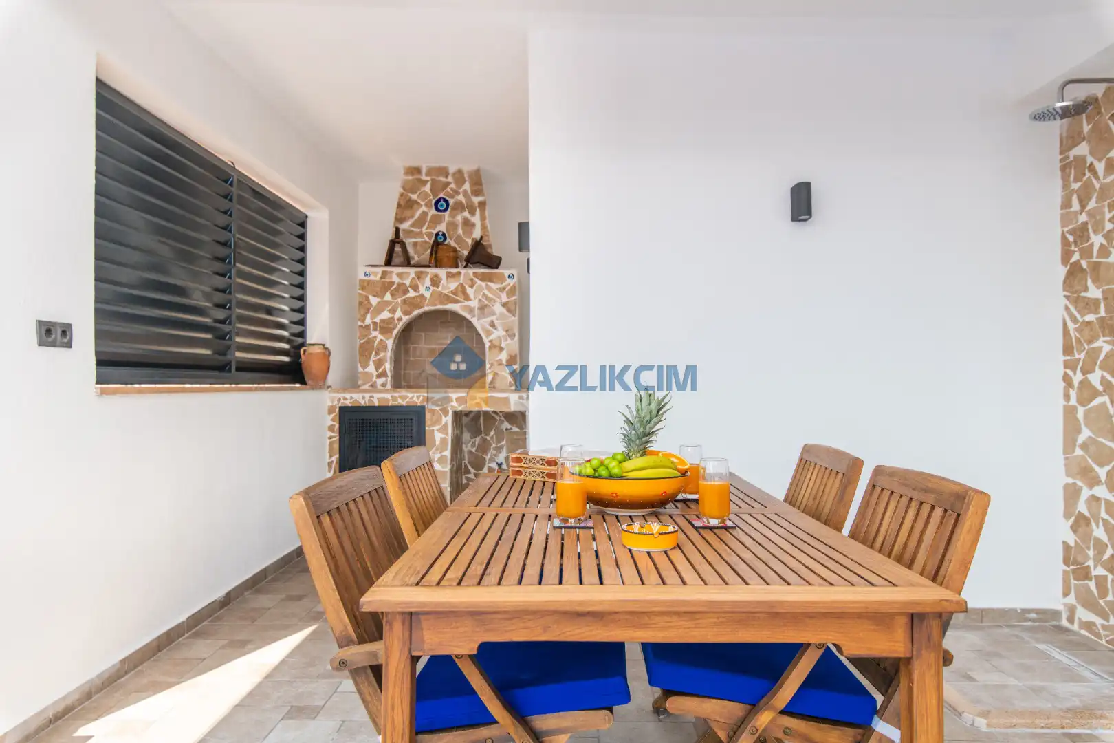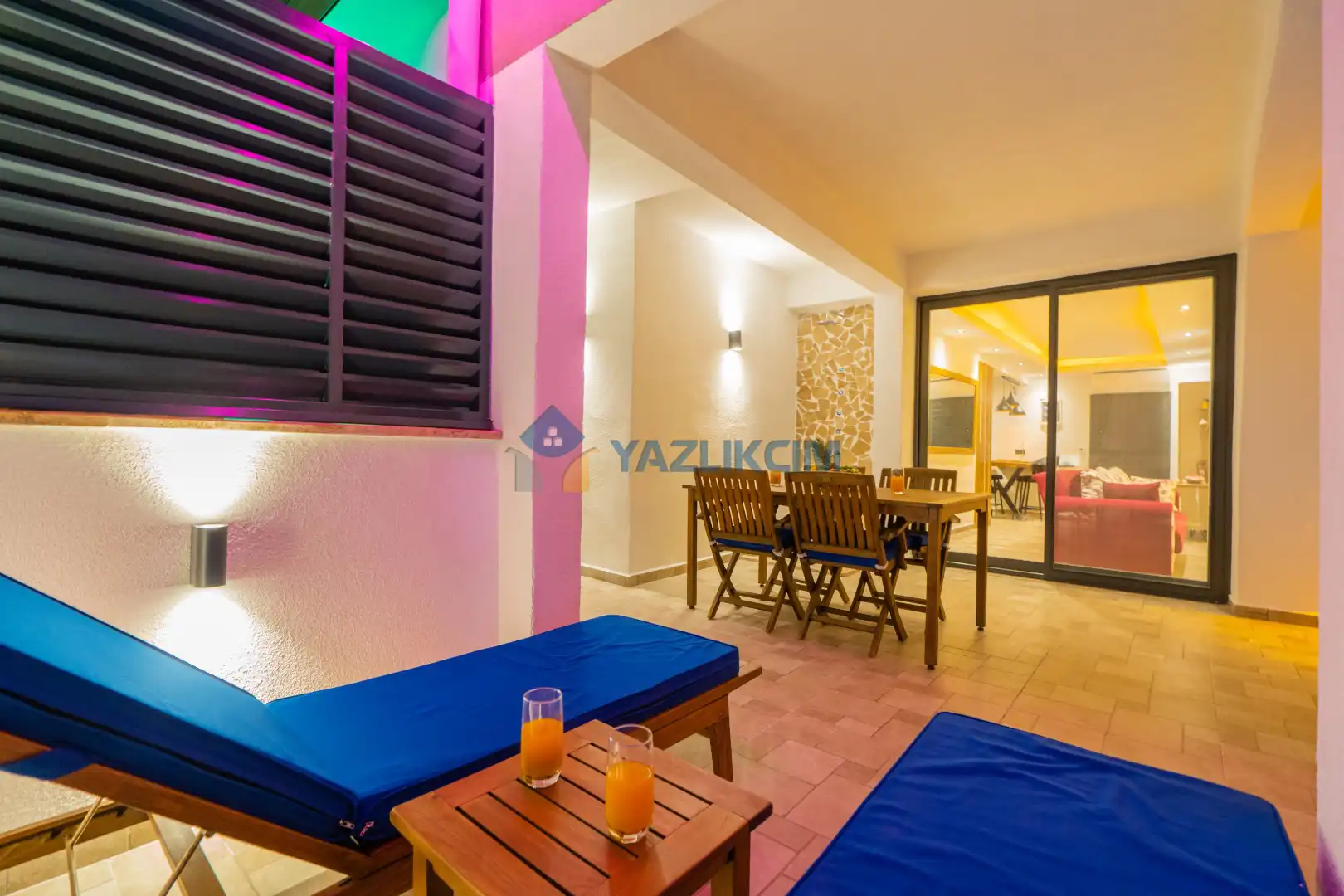 Detayları : Şezlong, güneşlenme şemşiyesi, barbekü, yemek masası ve sandalyeleri bulunmaktadır.