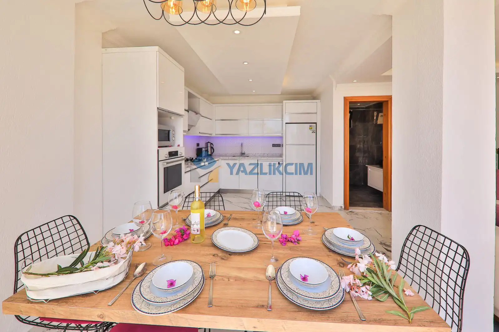Mutfak Detayları: Buzdolabı, bulaşık makinesi, fırın, çamaşır makinesi, yemek takımı, tava-tencere, çatal-bıçak seti bulunmaktadır.