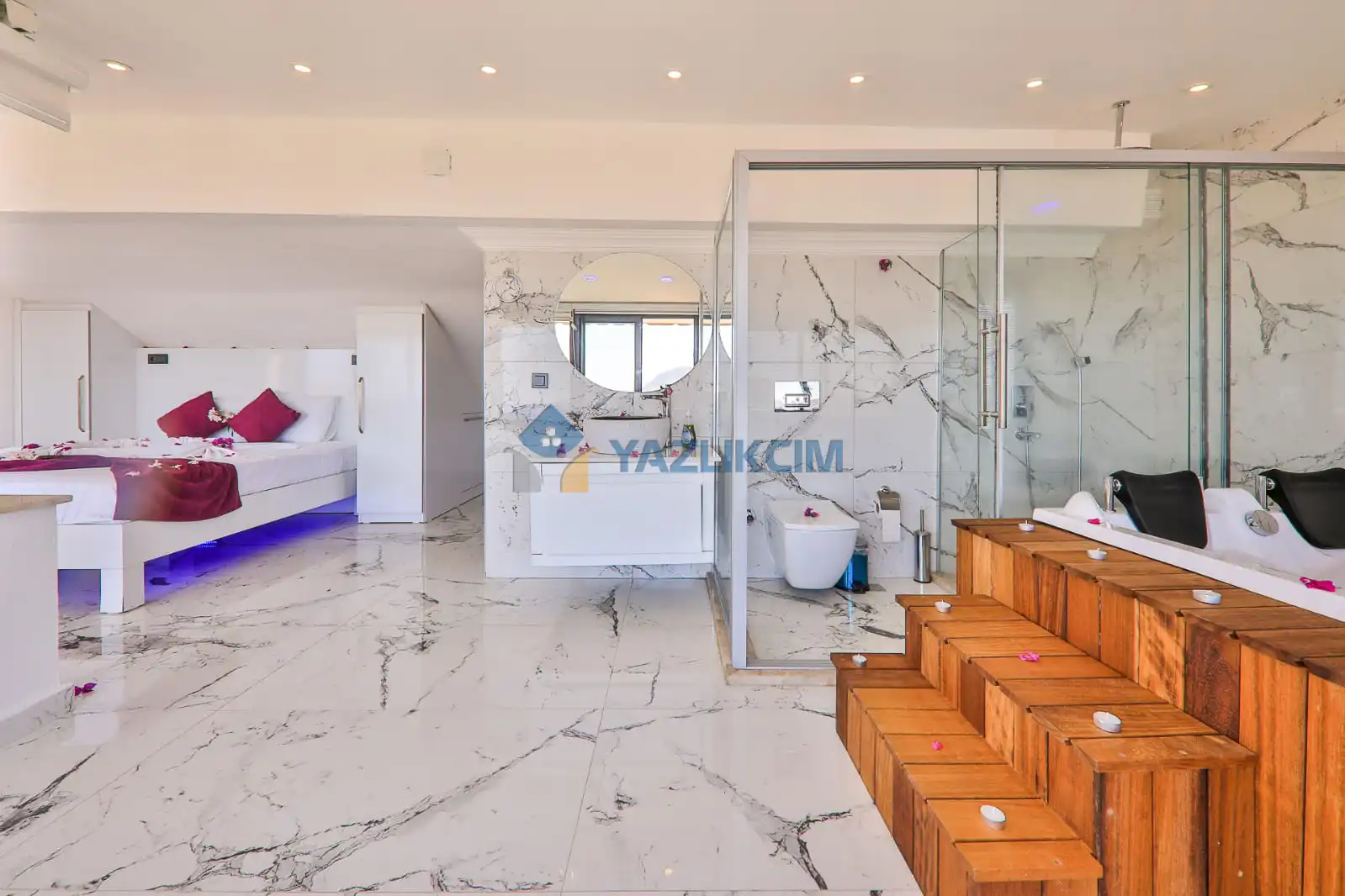 Detayları : Çift kişilik yatak, jakuiz ,klima, komidin, elbise dolabı, makyaj masası, banyo ve lavabo bulunmaktadır.