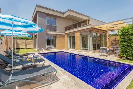 Detayları: Oturma grubu, Uydu TV (LCD), Klima, 6 kişilik yemek masası, WC & Lavabo ve Havuz terasına çıkış bulunmaktadır.