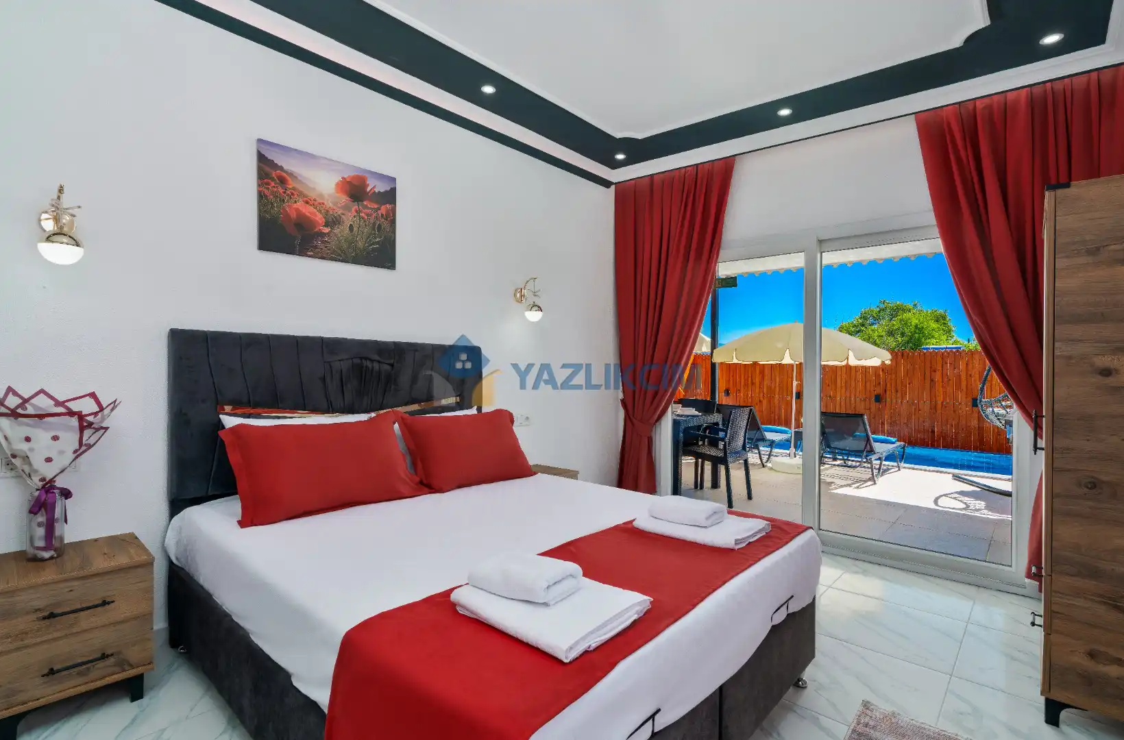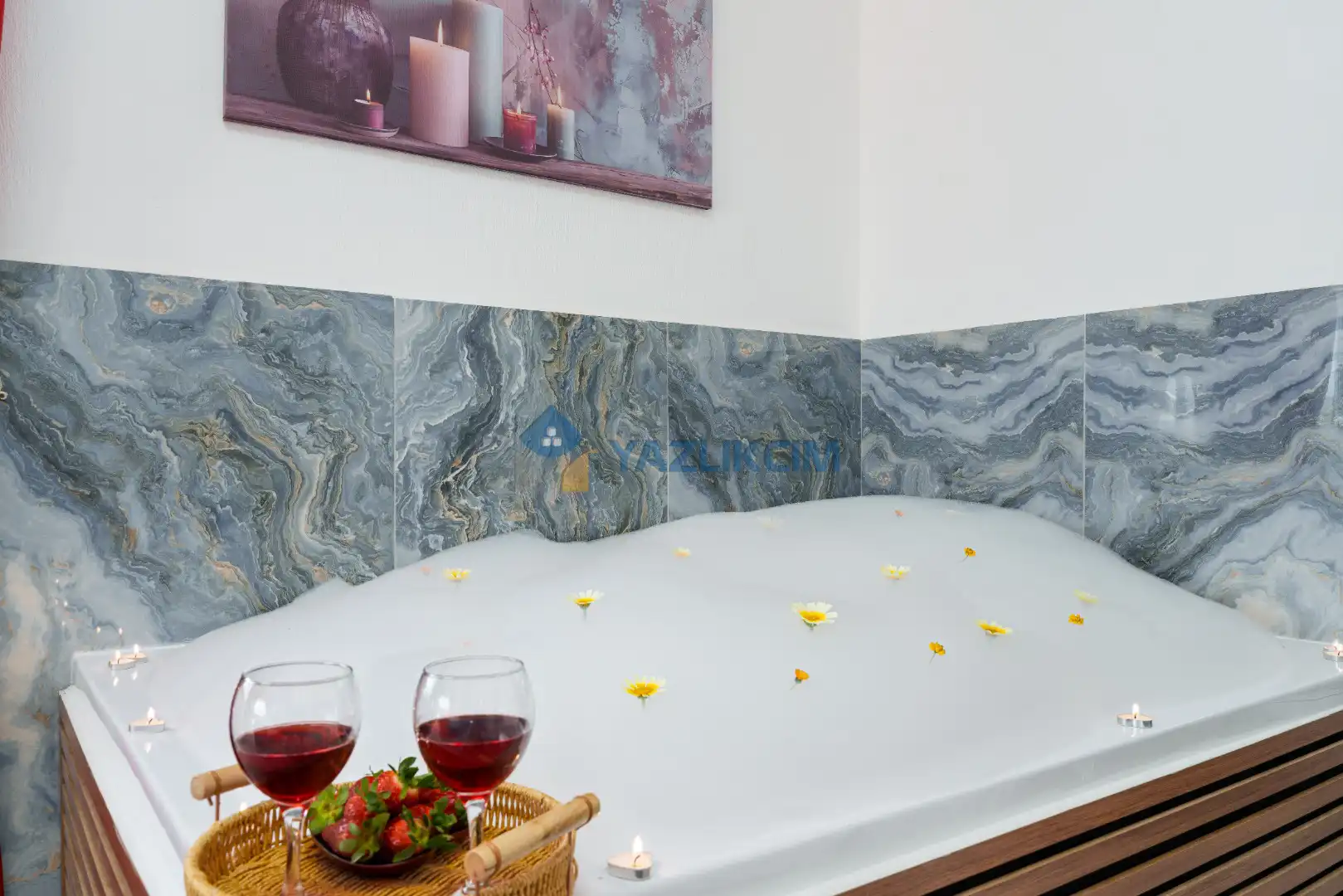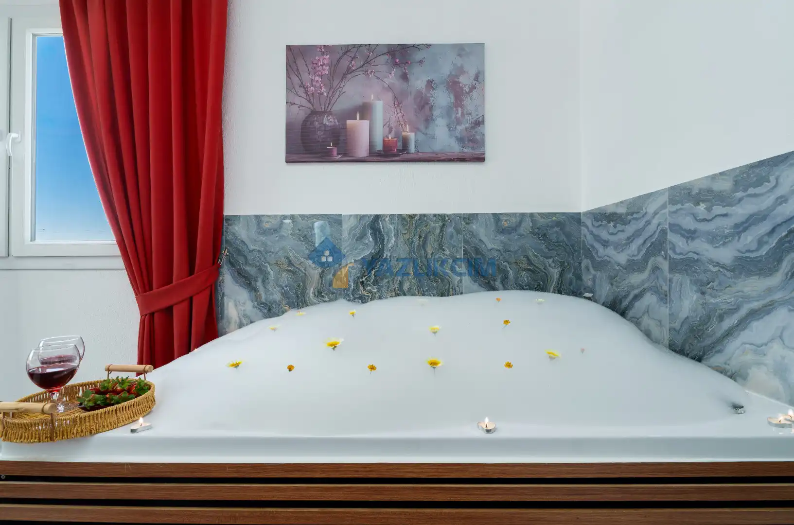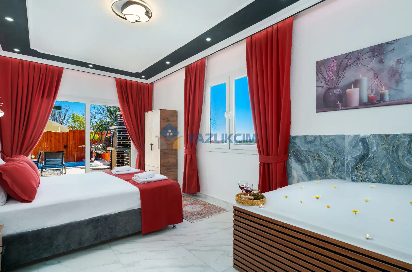Detayları : Çift kişilik yatak, jakuzi, klima , komodin, elbise dolabı, makyaj masası, banyo ve lavabo bulunmaktadır.