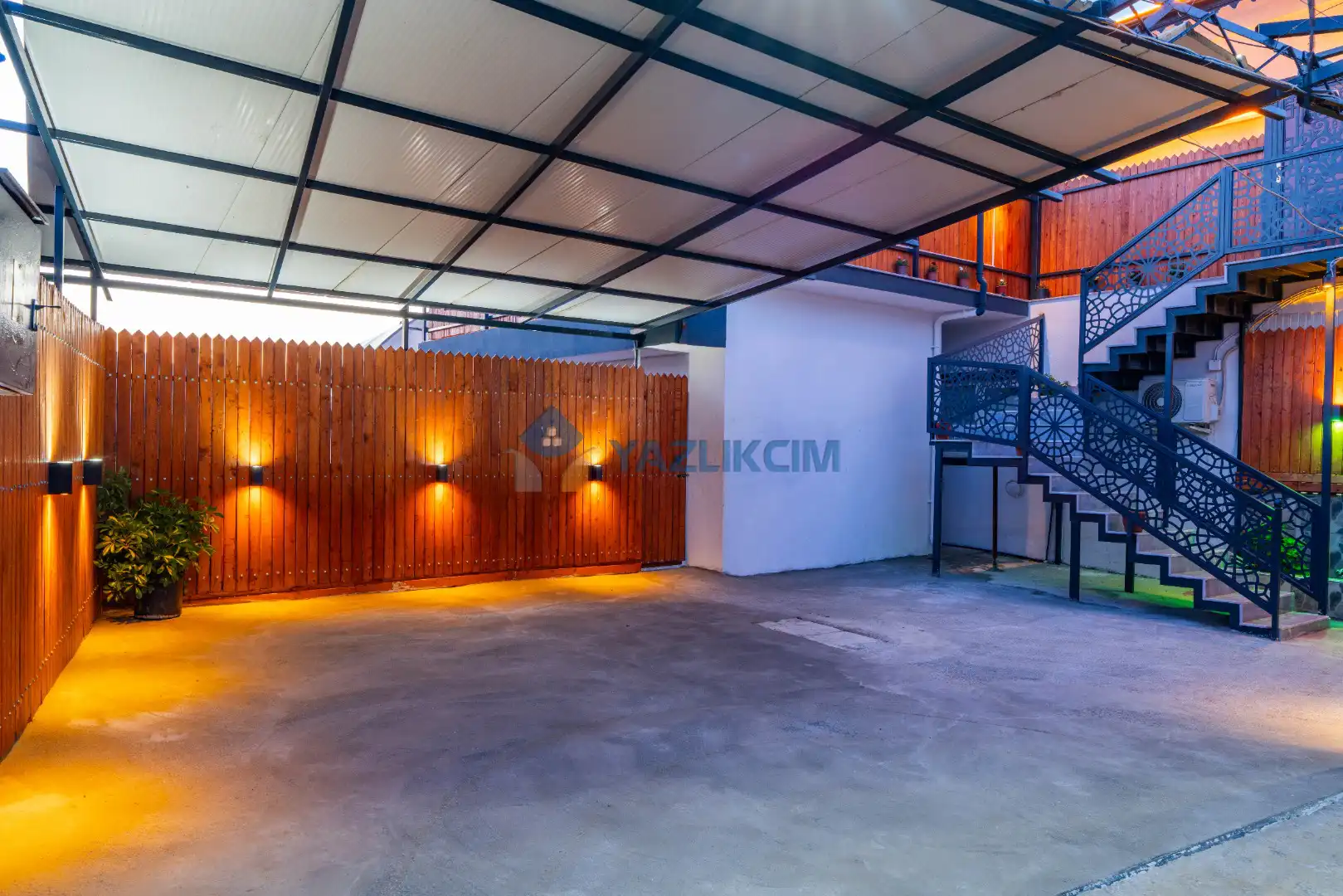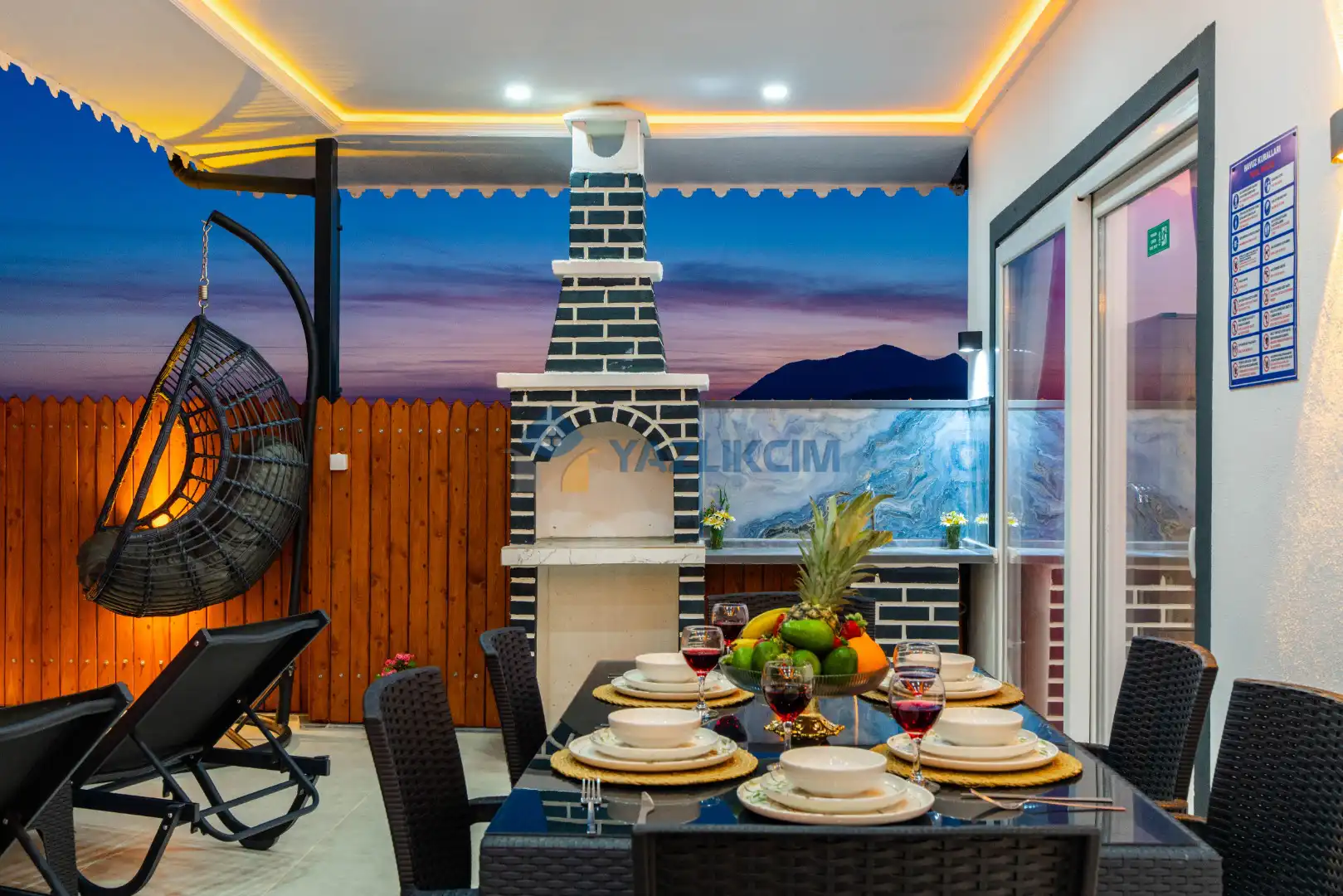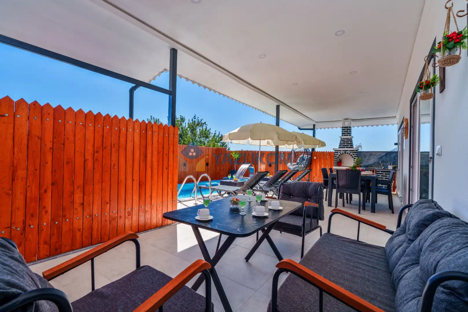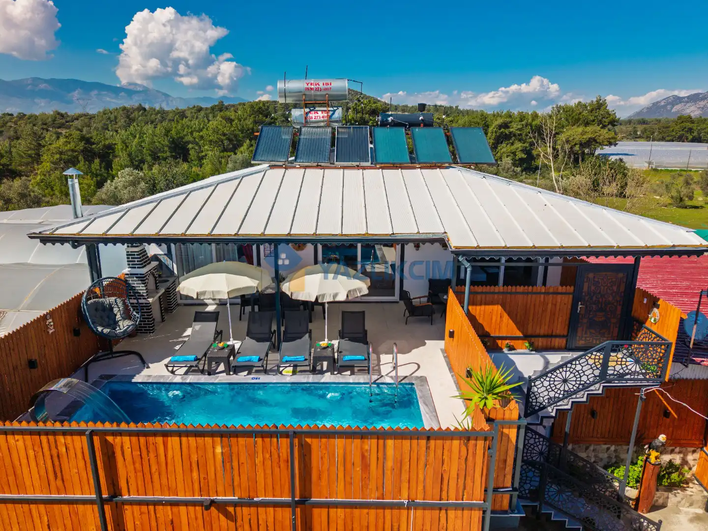 Detayları : Şezlong, güneşlenme şemsiyesi, oyun parkı, salıncak, oturma grubu, barbekü, yemek masası ve sandalyeleri bulunmaktadır.