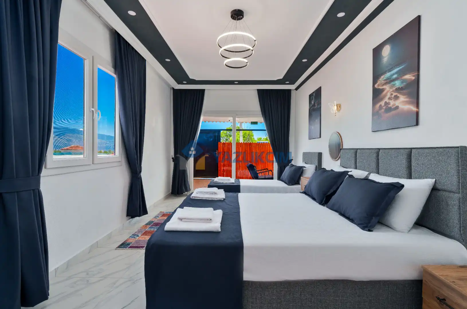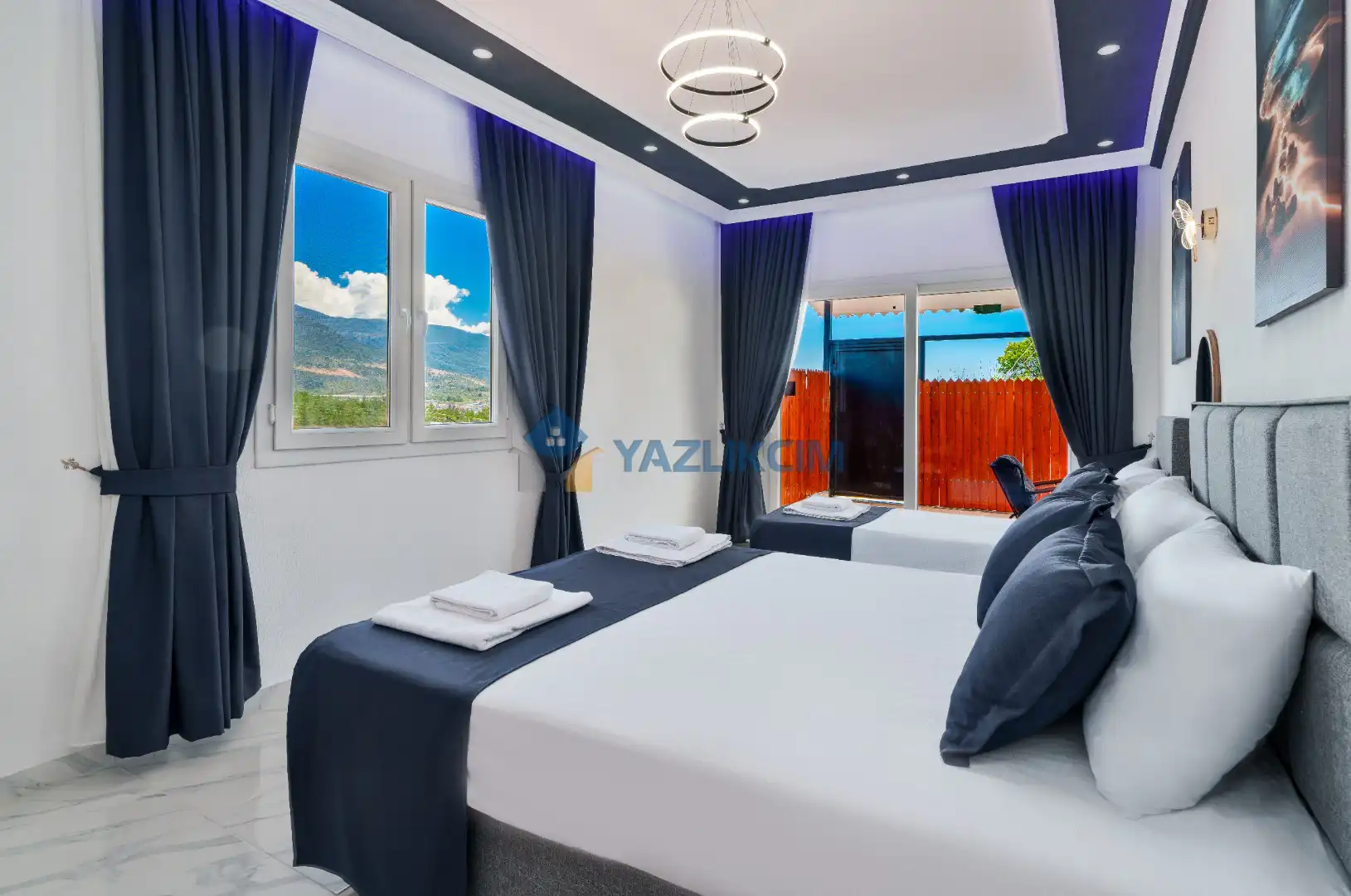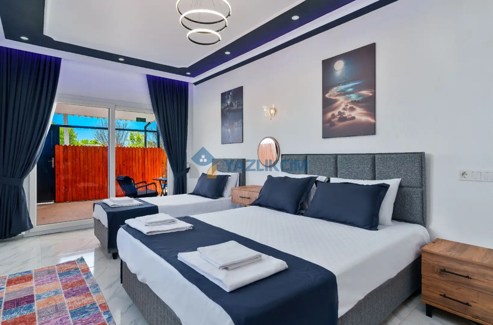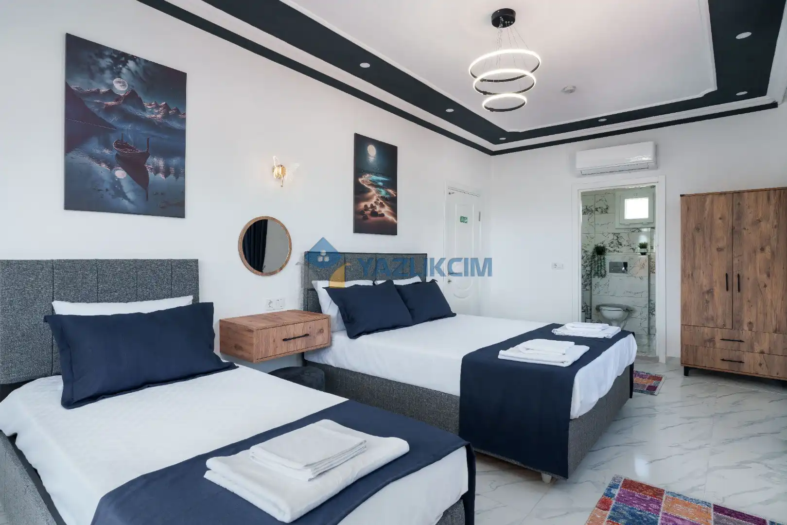 Detayları : 1 Çift kişilik yatak , 1 adet tek kişilik yatak , klima, komodin, elbise dolabı, makyaj masası, banyo ve lavabo bulunmaktadır.