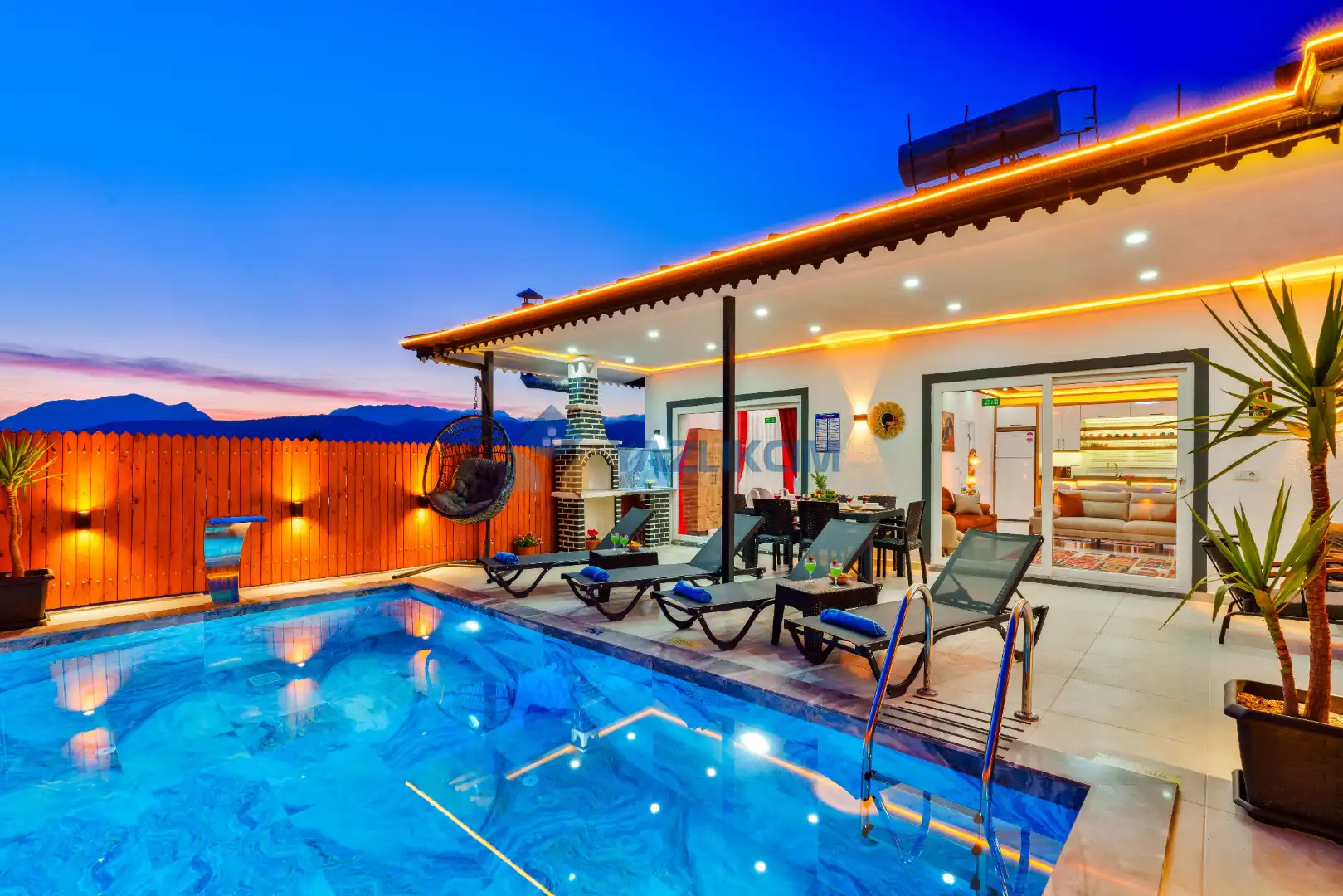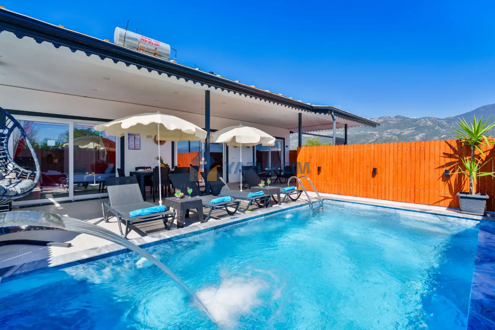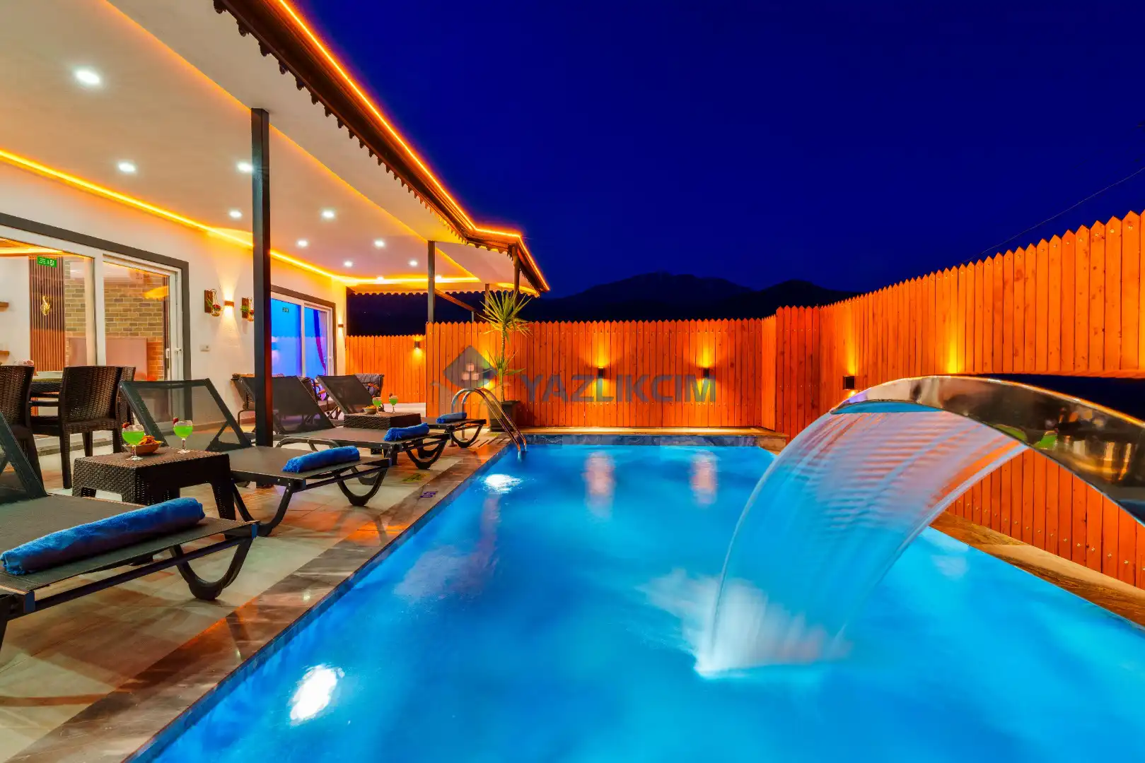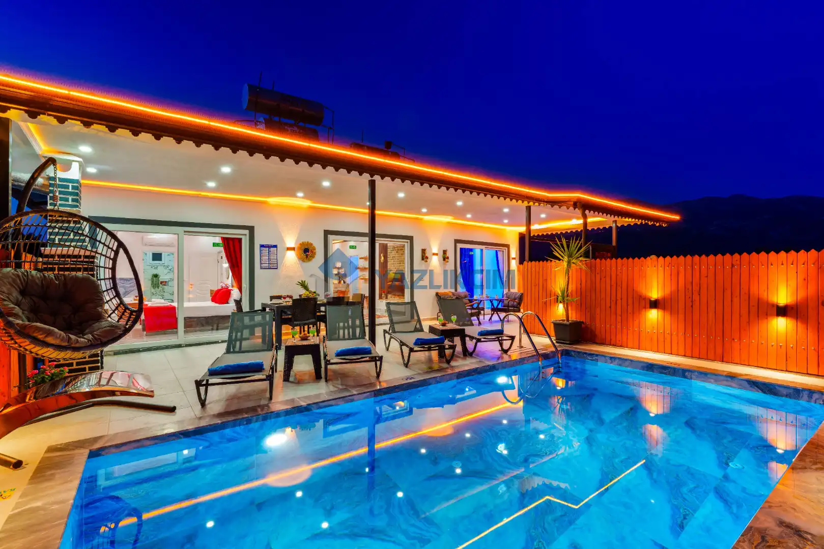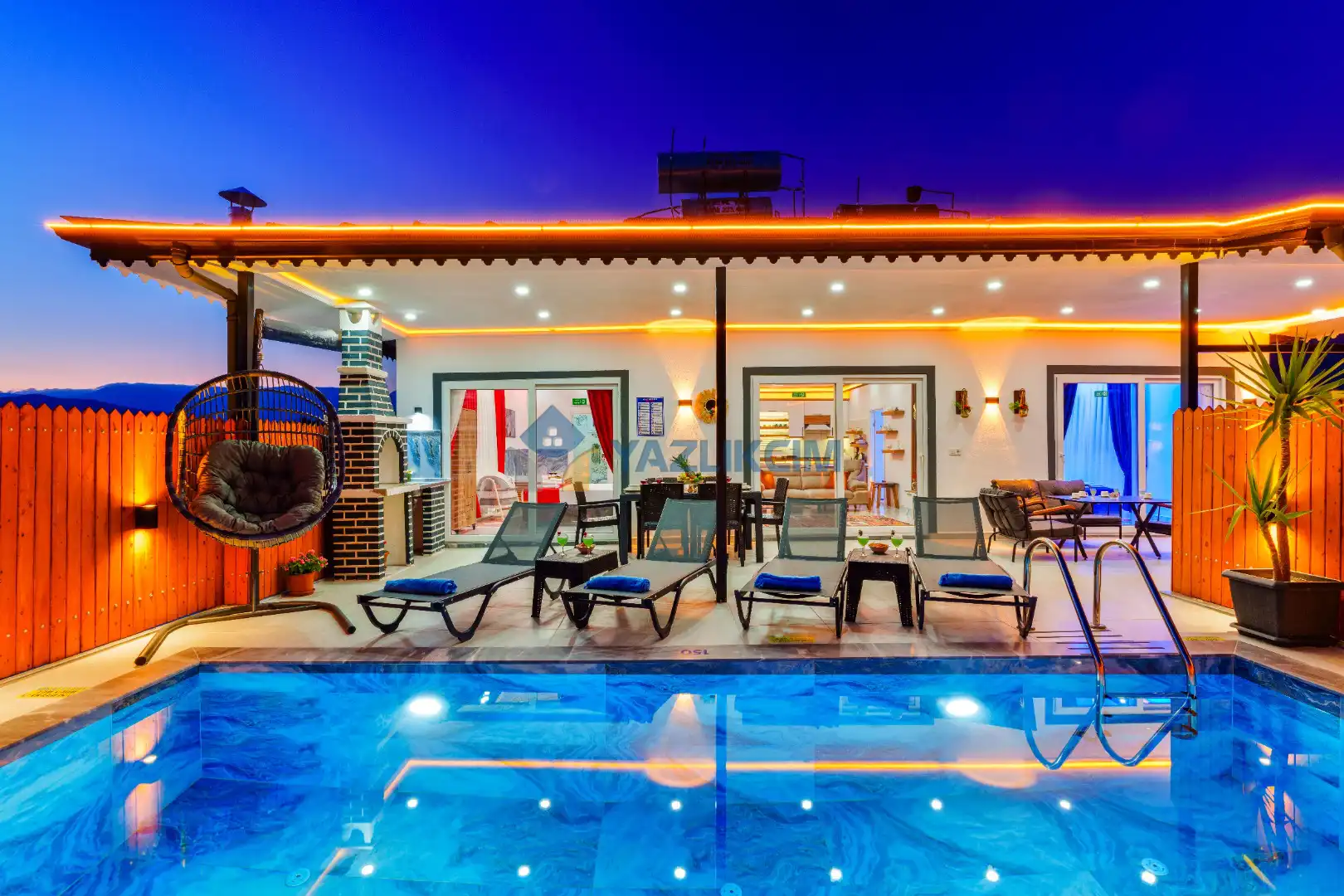 Salon Detayları : LCD TV, modern oturma grubu, yemek masası ve sandalyeler ve havuz terasına bulunmaktadır.