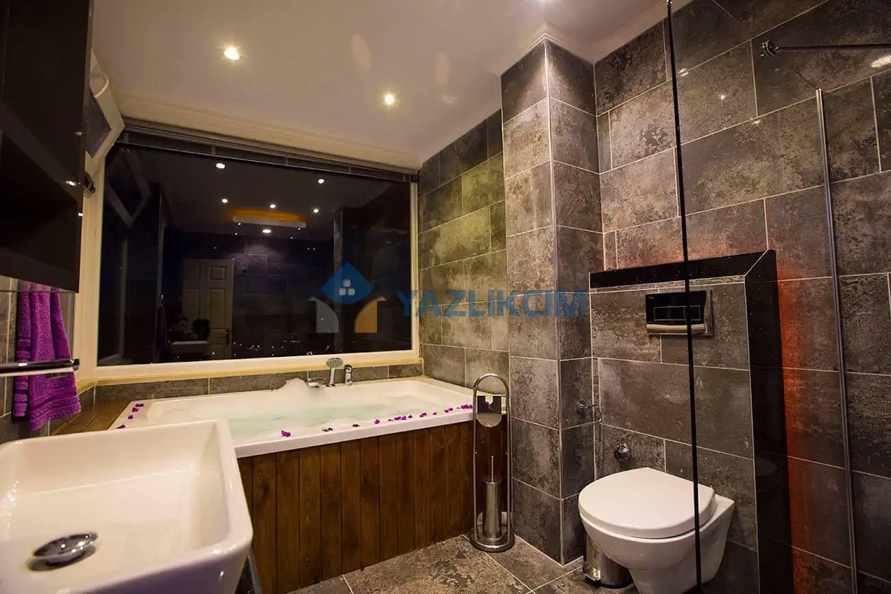 Antalya Kalkan’i sevmeyen var midir? Ziyaret edenler her zaman yine solugu Kalkan’da aliyor. Daha önce gelmemis insanlar da yeni tatil düsüncelerinde önceligi Kalkan’a veriyor. Tatil cennetlerinden olan ve gerek denizi gerek havasi ile yasamaya fazlaca uygun olan Kalkan, kiralik villa tatilleri ile de oldukça dikkat çekmektedir. Kalkan’da yazlik kiralik villa arayisi içine girerseniz önceliginiz villa Villa Ali’s Dream olsun. Deniz ve doga manzarali kiralik villa Villa Ali’s Dream, büyük aileler için tasarlanmis bir yasam alanidir. Kalabalik aileler için kiralik villa konseptine uygun hazirlanmis olan villa 3 yatak odasi ve 3 banyosu ile herkese yetecek oldukça genis alanlara sahiptir. Genis aileler için tatil planlamasi en önemlisi de konaklama düsüncesi fazlaca zaman almaktadir. Yine de tüm aile fertleri memmun kalmamaktadir. Bizler de kiralik villa Villa Ali’s Dream ile siz ailesi genis olanlar için konforlu bir adres olusturmaya çalistik. Herkesin rahatlikla konaklayip vakit geçirecegi alanlara sahip olan villa muhafazakar kiralik villadir. Muhafazakar tatil geçirmek isteyen ve muhafazakar kiralik villa arayisi içinde olan ailelerin oldukça rahat edecegi bu adreste sahane bir tatil geçireceginize emin olabilirsiniz. Ebeveyn odasinda yer alan deniz manzarali jakuzi ile dinlenmenin tadina varacak, günün en sicak saatlerinde havuzda serinleyerek günün tadini çikaracaksiniz. Kendi zevkiniz ve özgürlügünüz ile sekillendireceginiz bir tatile kavusacaginiz villa Villa Ali’s Dream da ayrilmak istemeyeceginize emin olabilirsiniz.