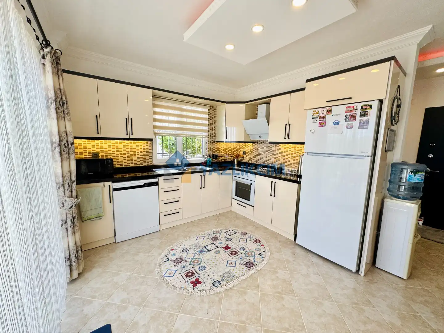 Mutfak Detaylari: Buzdolabi, bulasik makinesi, firin, çamasir makinesi, yemek takimi, tava-tencere, çatal-biçak seti bulunmaktadir.