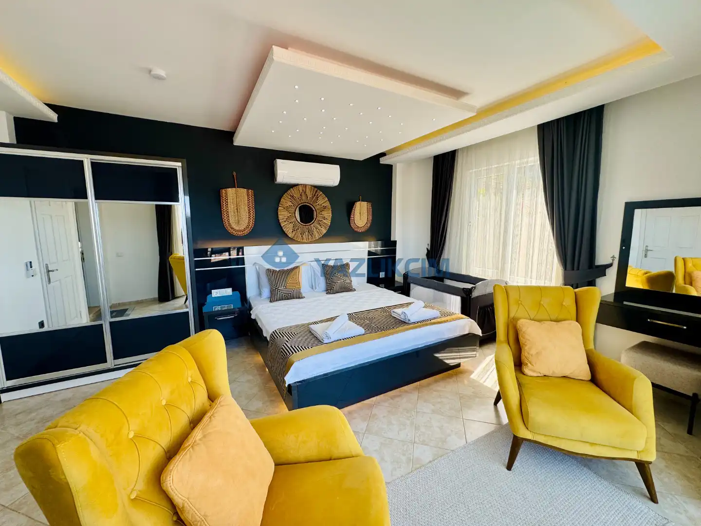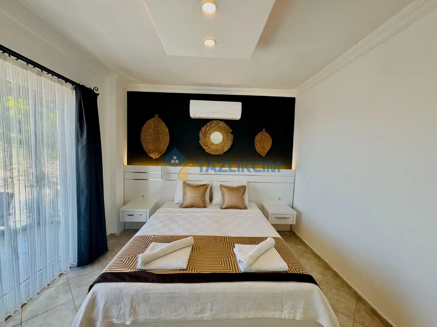 Detaylari : 1 adet çift kisilik yatak, elbise dolabi, klima, Ebeveyn banyosu bulunmaktadir.