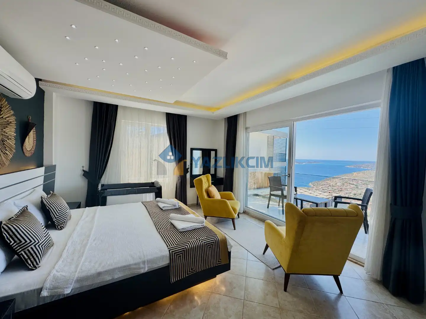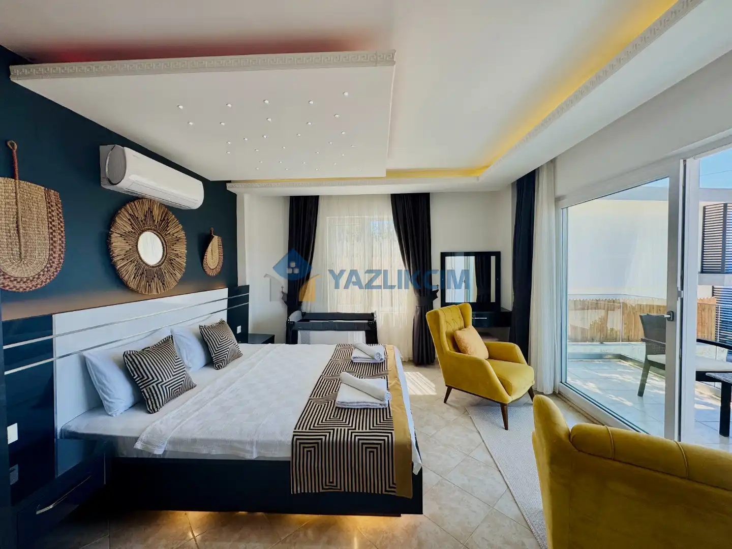 Detaylari : 1 adet çift kisilik yatak, elbise dolabi, klima ve ebeveyn banyosu bulunmaktadir.