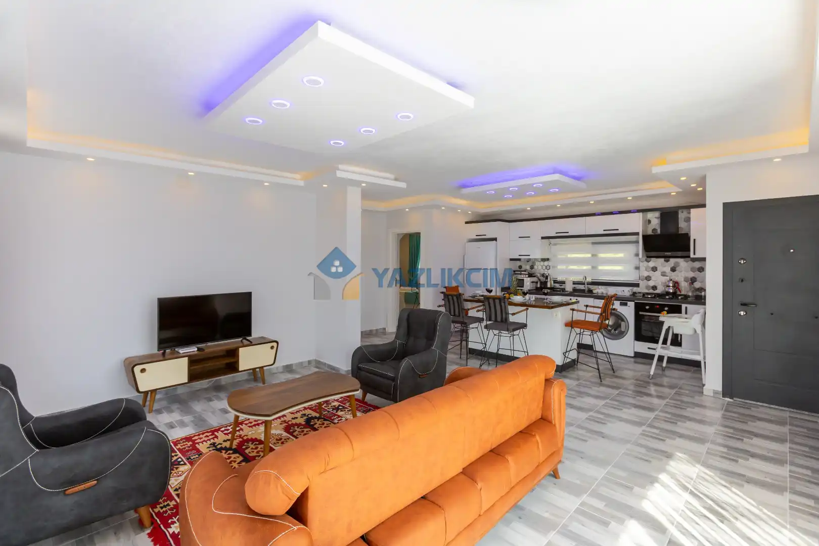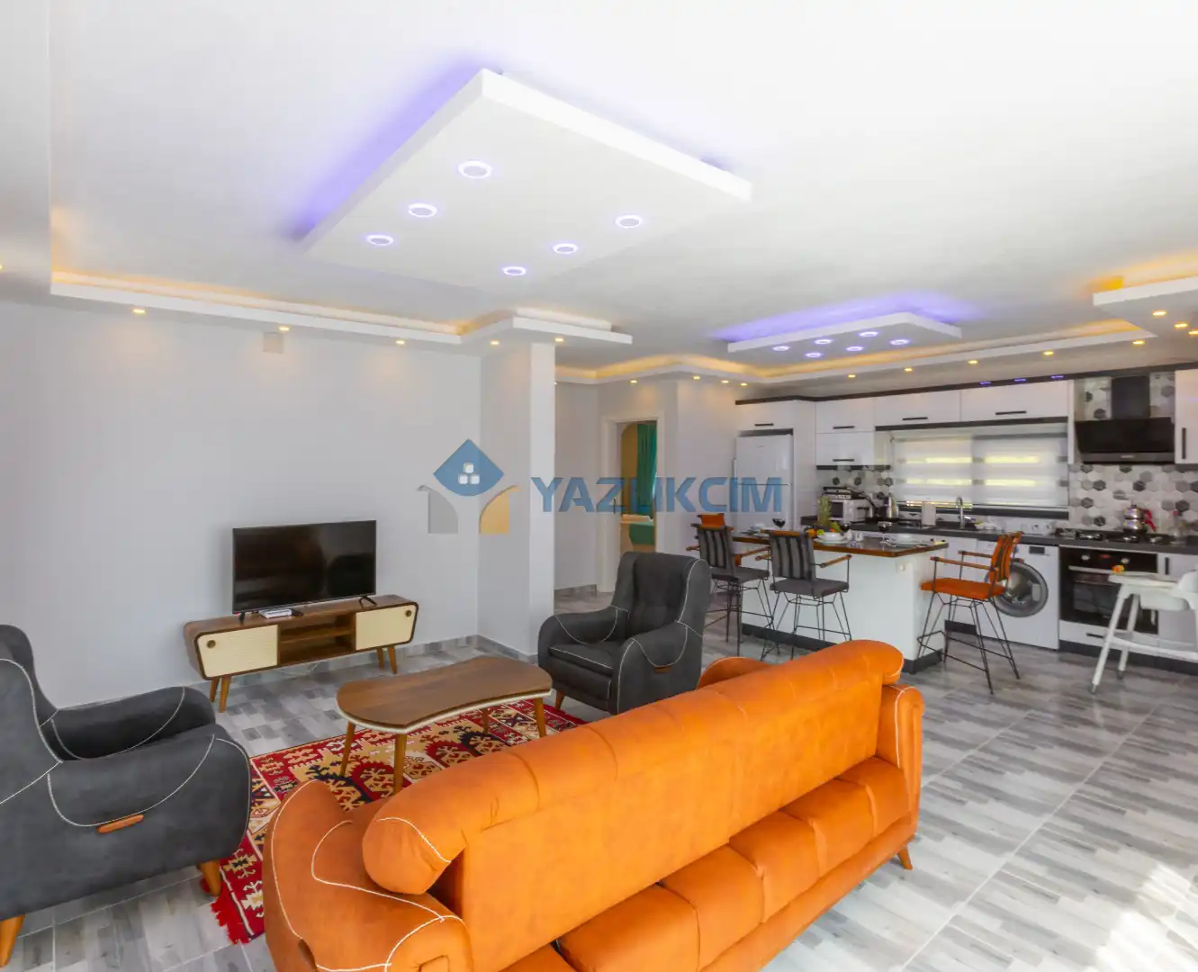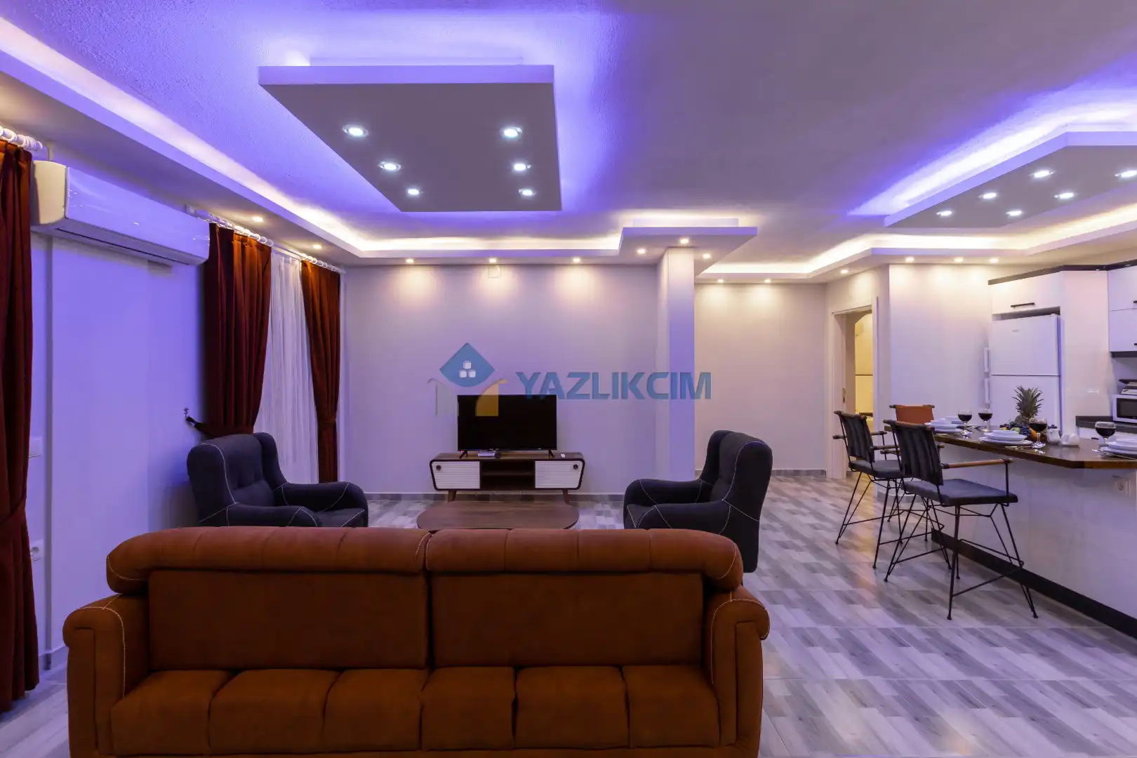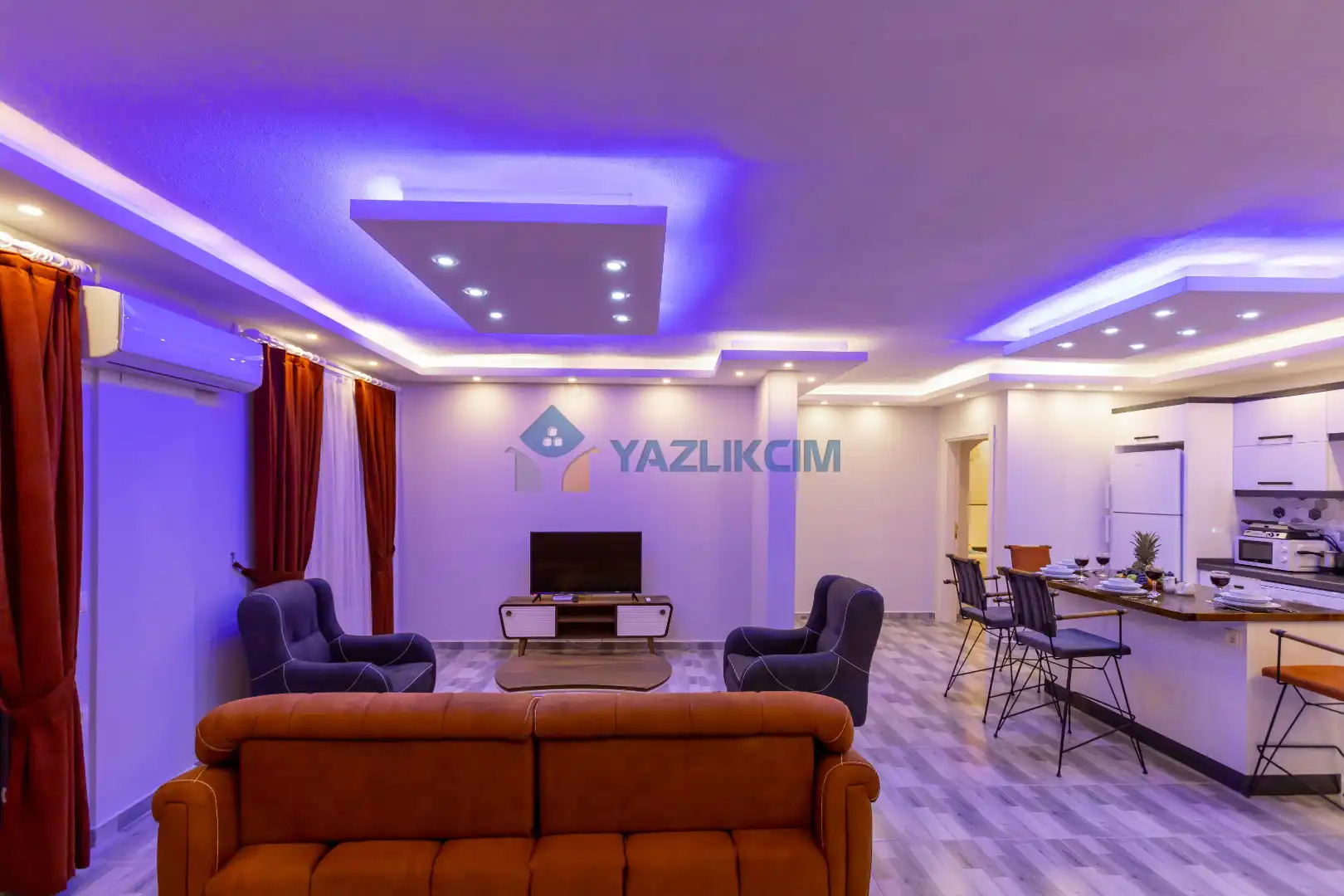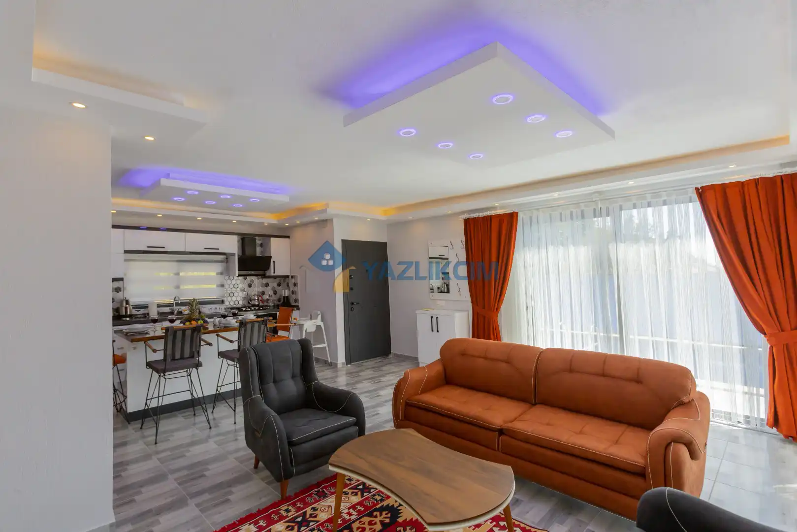 Salon Detayları : Oturma grubu, Uydu TV (LCD), Klima, 4 kişilik yemek masası, Havuz terasına çıkış bulunmaktadır.