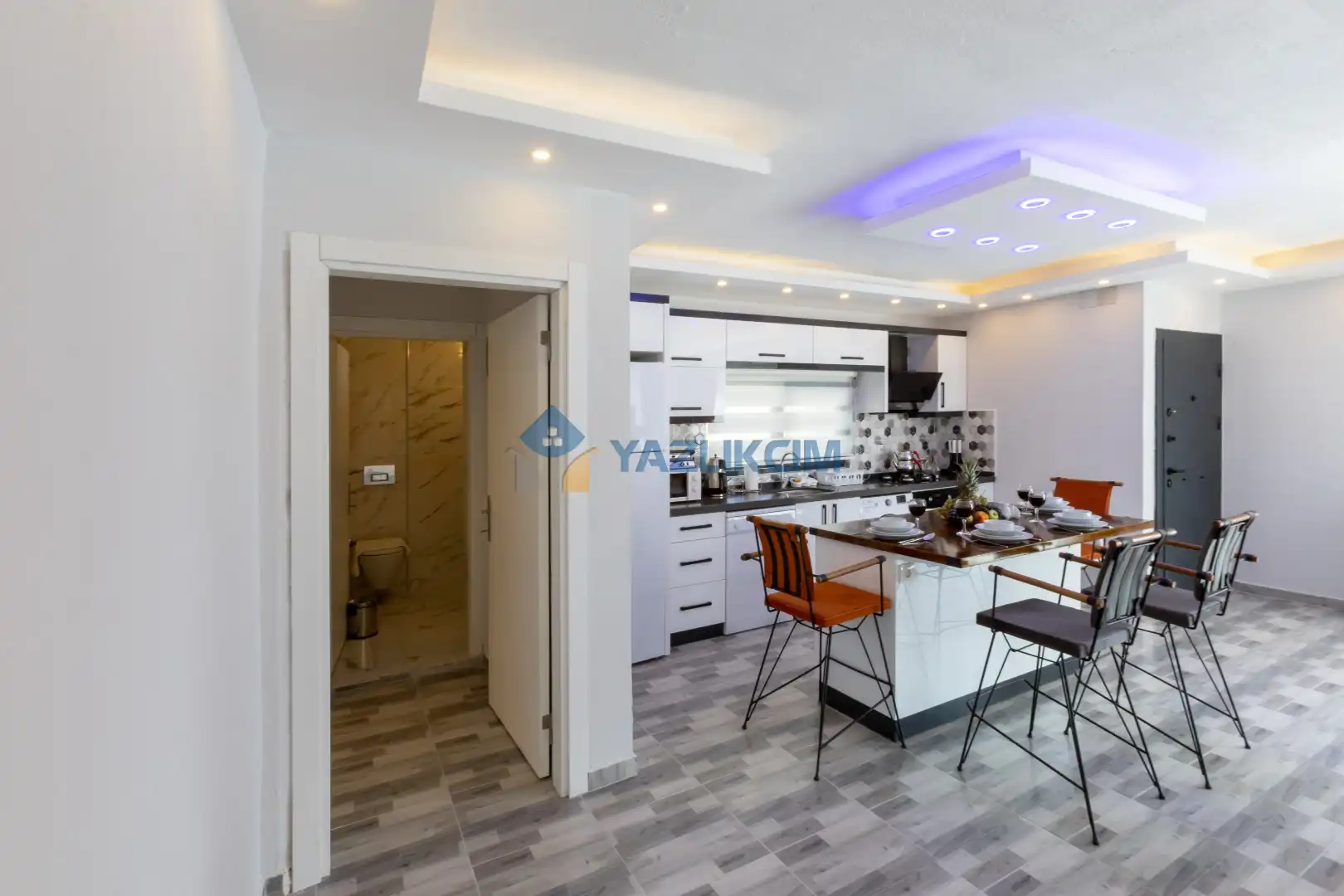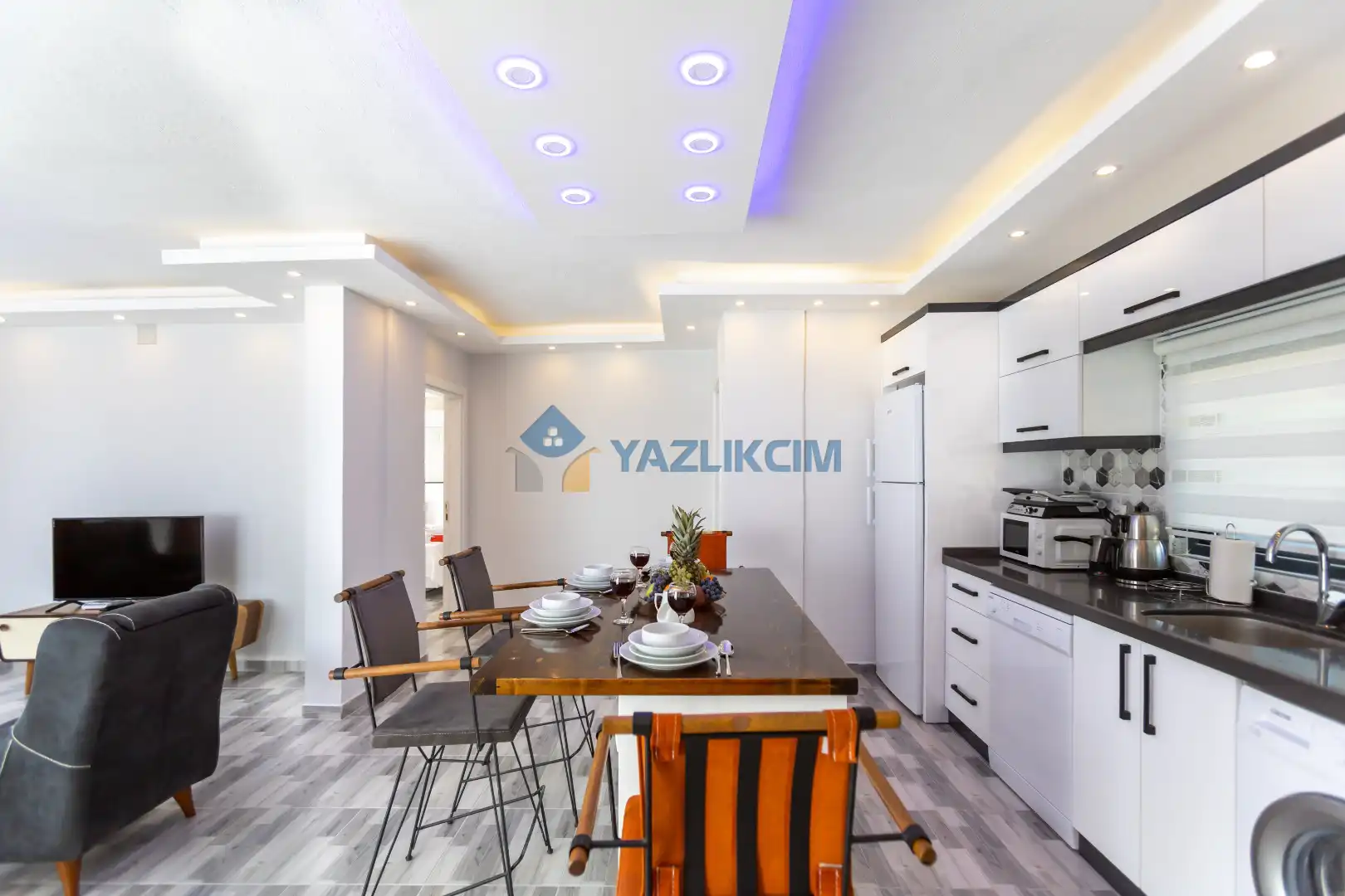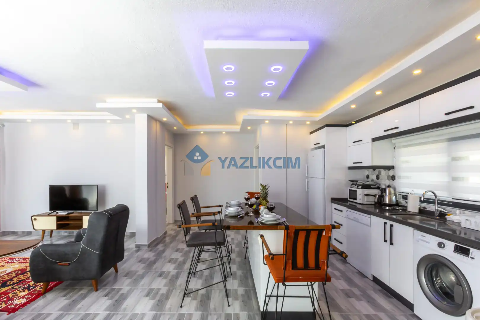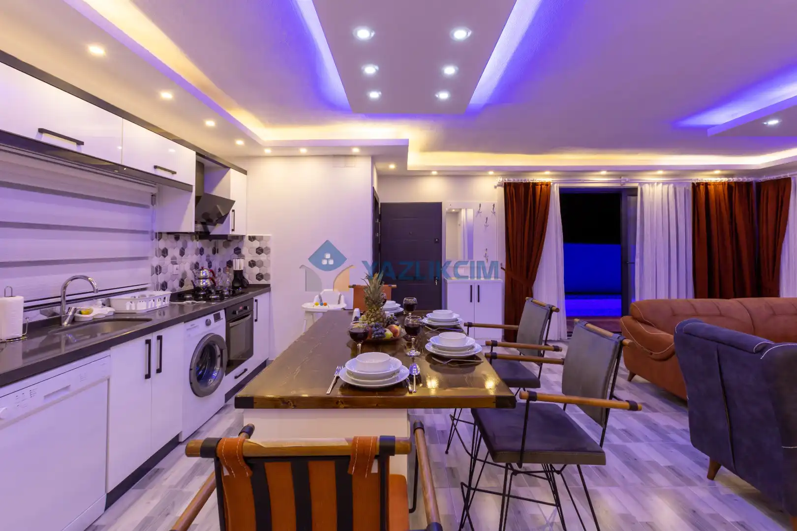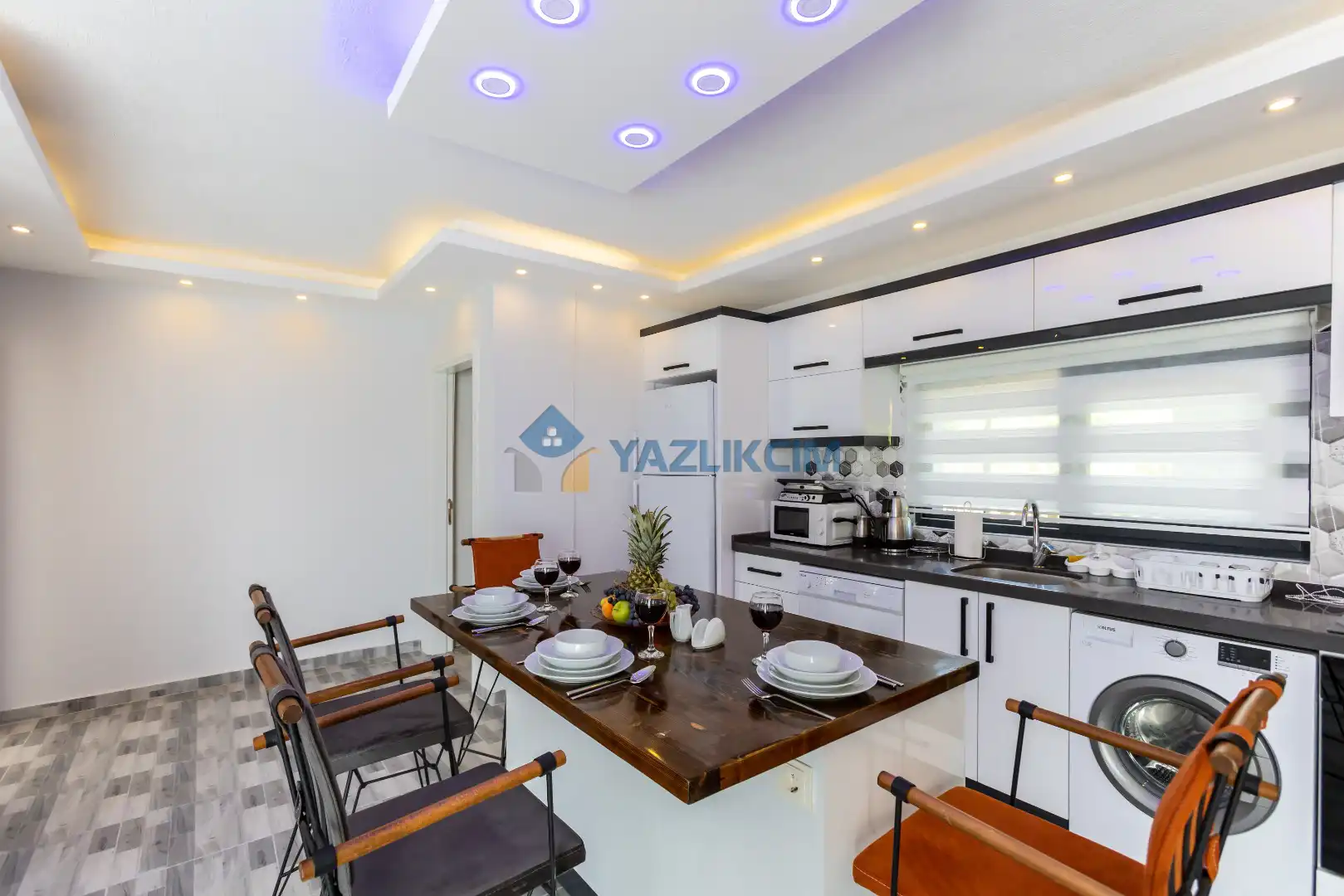 Mutfak Detayları : Modern Amerikan Mutfak , Buzdolabı, Bulaşık makinesi, Çamaşır makinesi, Fırın, 4’lü Ocak (ankastre), Mikrodalga fırın, Elektrikli su ısıtıcı, Tost makinesi