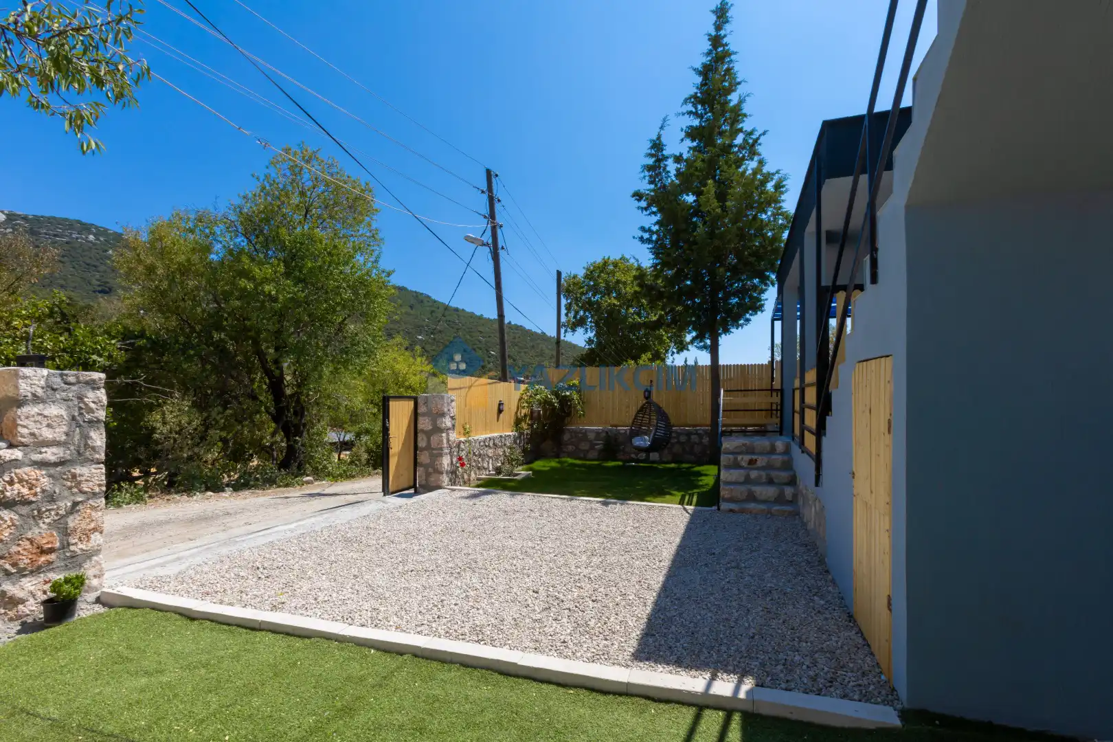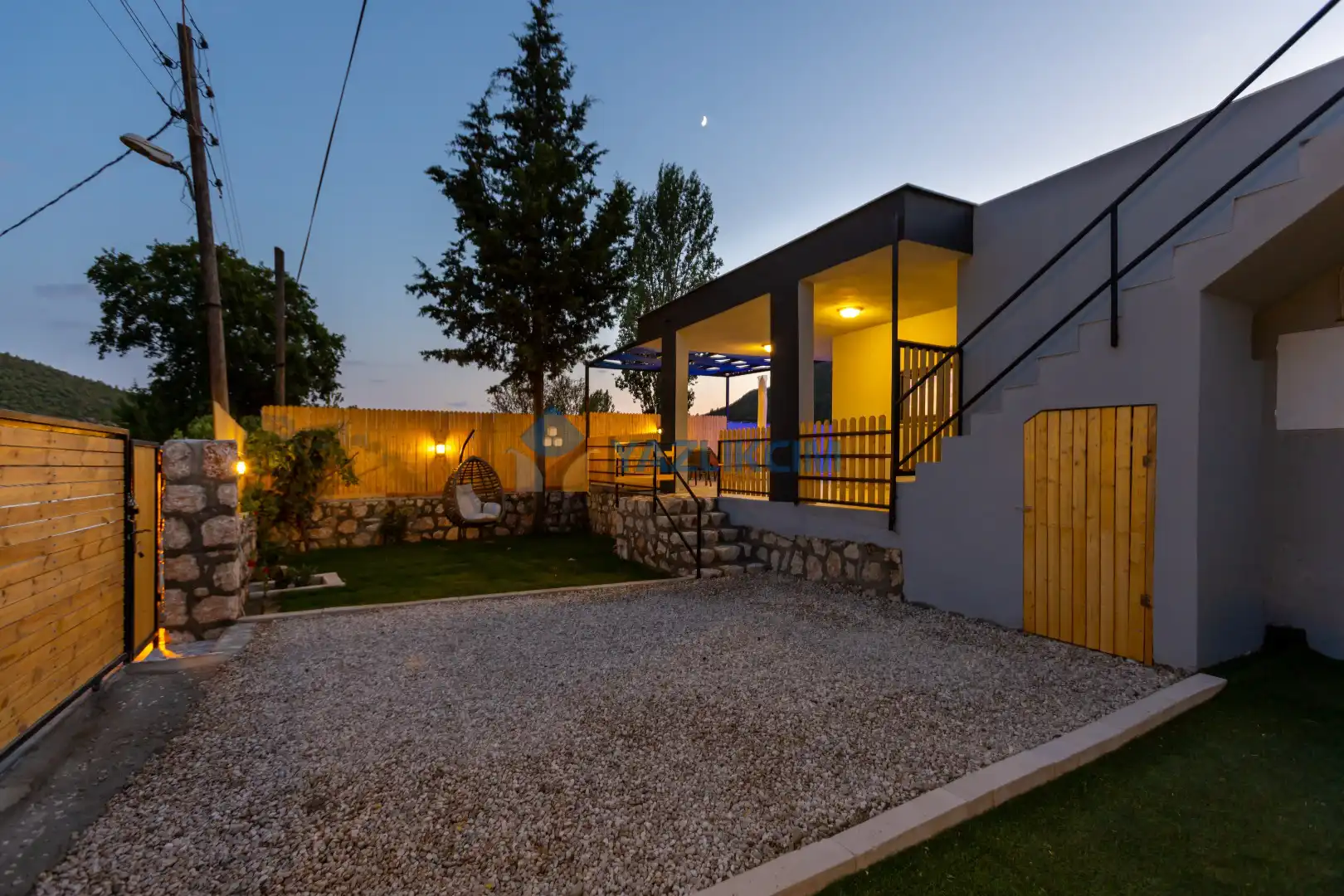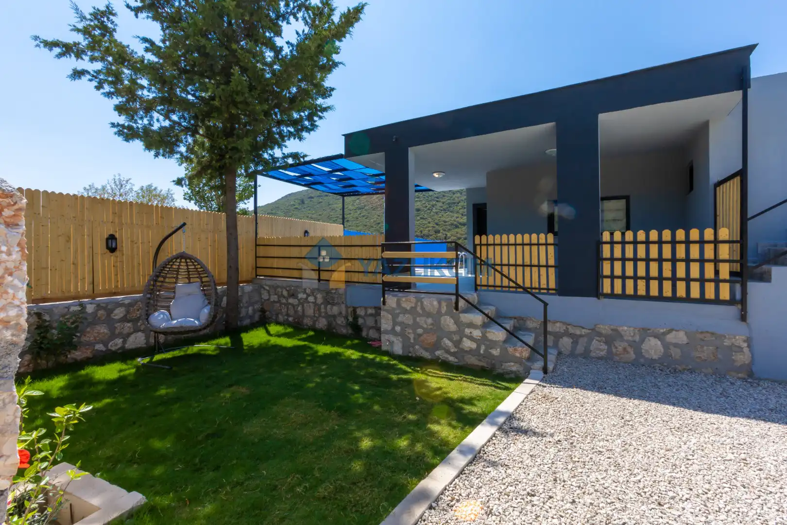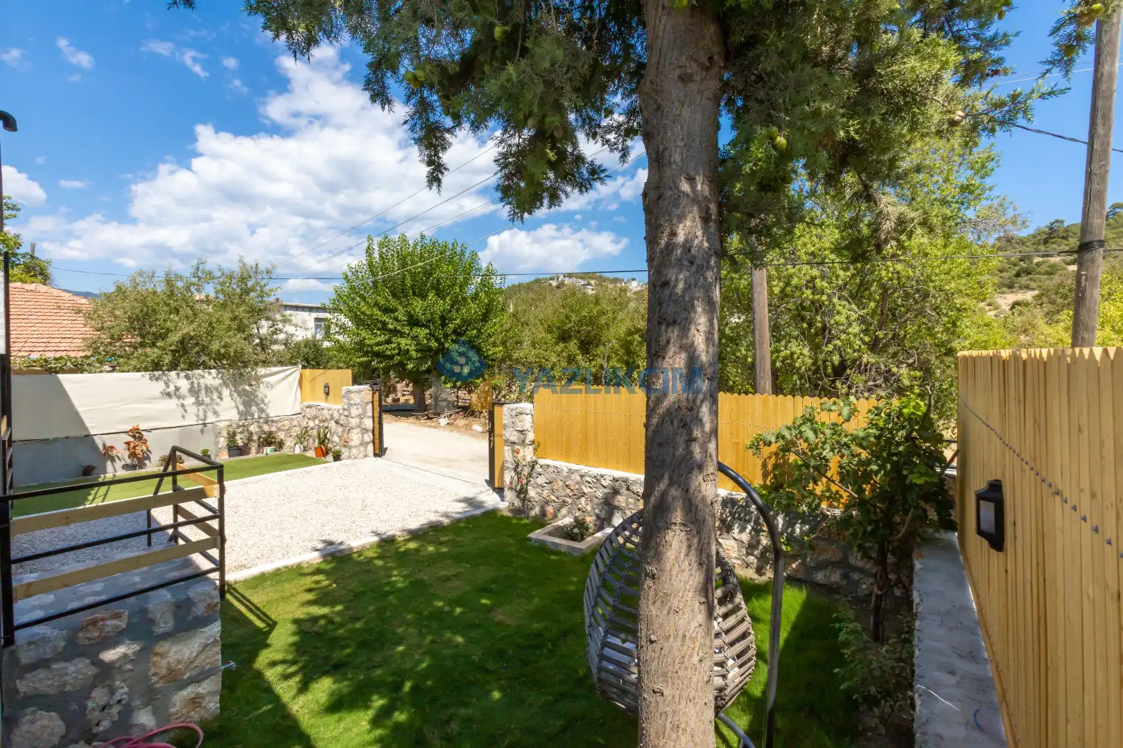 Detayları : 4 Kişilik masa ve sandalye, Oturma grubu, 2 adet şezlong, Barbekü, Salıncak, Güneş şemsiyesi, Çocuk havuzu