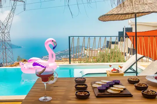 Deniz manzaralı kiralık balayı villasıDreamHosue Kalkan, deniz ve plaja 4 km uzaklıkta yer almaktadır. Manzarası ve güzelliği ise hemen yanı başınızda. Villanın kendi havuzu olması nedeniyle denize gitme ihtiyacı duymadan da yüzebilecek, bahçede güneşlenebileceksiniz. Villa fazlasıyla konforlu ve rahat. Ancak manzarası ise tam anlamıyla büyüleyici. Balayı villası Dream House Kalkan’ın dikkat çeken özelliklerinden bir diğeri de muhafazakar tatil yapmak isteyenler için oldukça uygun bir yer olmasıdır. Muhafazakar kiralık balayı villası olduğu için burada tatil yaparken kendinizi gözlerden uzak, eşinizle baş başa bir şekilde rahatça yaşayabilirsiniz. Romantik akşam yemeklerinizi kendiniz hazırlayıp havuz başında denize karşı yiyecek, günün en güzel saatlerinde huzur içinde gözlerinizi kapatarak tertemiz havayla ciğerlerinizi doldurabileceksiniz.