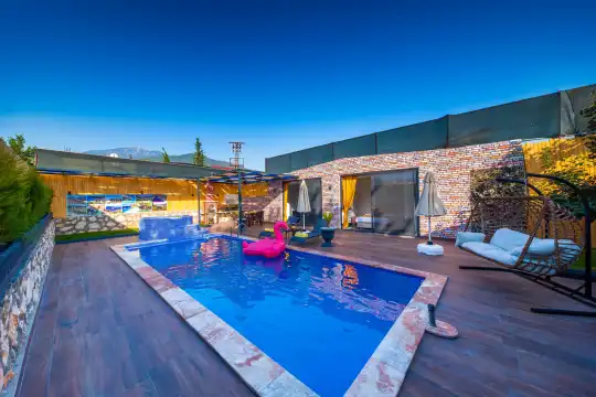 Doğa manzaralı kiralık balayı villası Egemen, deniz ve plaja 14 km uzaklıkta yer alıyor. Ancak kendi havuzu bulunan villada, denize ihtiyaç duymadan günün sıcaklığına inat huzurla yüzebilecek ve yine villanın bahçesinde özgürce güneşlenebileceksiniz. Özgürce diyoruz çünkü kiralık balayı villası Egemen, muhafazakar kiralık balayı villası olarak hazırlanmıştır. Bu detay ile burada rahatlıkla muhafazakar tatil yapabilecek ve tercihinizden dolayı bir kez daha mutluluk duyacaksınız. Şık bir bahçe içinde yer alan villada aynı zamanda barbekü de bulunmaktadır. Burada nefis akşam yemeklerinizi hazırlayacak ve balayı tatilinize özel romantik yemeklerinizi havuz başında yiyebileceksiniz. Villa Egemen’de tatil için daha fazla beklemenize gerek yok.