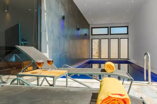 Kiralık balayı villası Gece’nin denize mesafesi yalnızca 6 km. Manzarası ise yanı başınızda olacak. Sportif bir dekorasyonun hüküm sürdüğü villada, asma katta bulunan yatağınızdan muhteşem Kalkan manzarasını izleyecek, kapalı havuzda keyiflenirken mutluluk dolacaksınız. “Sizleri nasıl mutlu edebiliriz?” sorusunu öncelik tutarak hazırladığımız villada ihtiyaç duyacağınız tüm eşyalar mevcut. Kahvaltılarınızı ya da yemeklerinizi dışarıda yemenize gerek kalmadan, deniz manzaralı balkonunuzda kendi hazırlamış olduğunuz yemekler ile güzel saatler geçireceksiniz. Hem doğaya hem denize olan manzarası ile deniz manzaralı villaGece, size balayından çok kendi evinizde konaklıyor izlenimi oluşturacak. Şık dekoru, konforlu mobilyaları, Kalkan manzarasına ev sahipliği yapan konumu ile bir kiralık villadan çok daha fazlası olan Gece için bizimle iletişime geçerek erken rezervasyon yaptırmayı ihmal etmeyin. Dilerseniz gün içinde Kalkan’ı keşfe çıkabilir, dilerseniz villanızdan hiç ayrılmadan havuzda eğlenebilir, balkonunuzda keyif çayları yudumlayabilirsiniz. Bir balayından beklentiniz eğer eşinizle birlikte baş başa kalıp doyasıya huzur solumak ise, villa Gece doğru bir seçim olacak demektir.