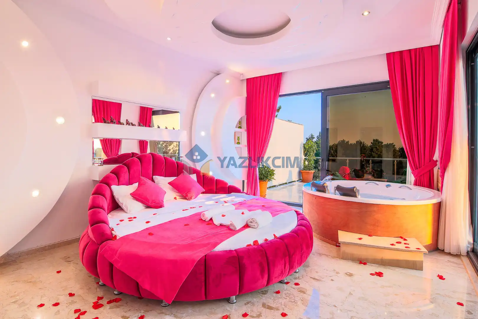 Detayları : 1 adet çift kişilik yatak, elbise dolabı, komodin, jakuzi ,Banyo ve tuvalet bulunmaktadır.
