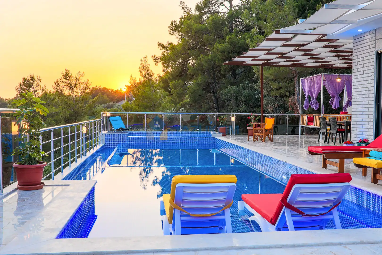 Balayı tatiliniz için aklınızdaki düşünce nedir bilemeyiz. Ancak unutamayacağınız güzel bir balayı için Antalya İslamlar’ı gönül rahatlığı ile tercih edebilirsiniz. Sizler için hazırlamış olduğumuz kiralık balayı villası Haki ile arkanıza yaslanın ve tatilin tadını çıkarın. Doğa manzaralı kiralık balayı villası Haki, denize 10 km uzaklıkta bulunmaktadır. Doğa tatili yapıp, huzurlu bir balayı geçireceğiniz bu adreste şimdiye kadar yapmış olduğunuz en iyi tatili yapacağınıza emin olabilirsiniz. Çünkü villa tamamen size ait olacak ve etrafınızda huzurunuzu bozacak herhangi bir ses olmayacak. Villa muhafazakar balayı villası olduğu için gönlünüzce balayınızı yapabilir, dinlenebilir, villada vakit geçirebilir, güneşlenebilirsiniz. Muhafazakar tatil denilince akla ilk gelen şey olan özgürlüğü villa Haki’de buram buram yaşayacaksınız. Villanın etrafını çeviren dışarıdan görünmeyi engelleyen çitler ile kendinizi fazlasıyla rahat hissedeceksiniz. Renkli dinlenme alanları, şık bahçe mobilyaları, kendi yemeklerinizi hazırlayabileceğiniz mutfak, geniş bahçesi, havuzu ebeveyn odasındaki jakuzi, şık balayı yatağı ile hoş bir deneyim ve benzersiz bir tatil geçireceğinize emin olabilirsiniz. Sizlerin mutluluğu ve huzuru bizler için önemli. Bunun için rahat etmeniz için her şeyi düşündük ve balayı villası Haki’de hazırladık. Ağaçların gölgesinde bahçede dinlenin, akşam serinliğinde havuz başında romantik yemekler yiyebilir, gözlerden uzak bir havuzda yüzün ve huzura kavuşun diye hazırlamış olduğumuz villa Haki için geç kalmayın ve erken rezervasyon yaptırarak villayı kiralayın.