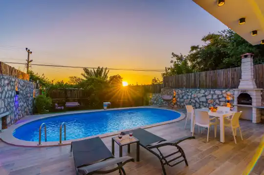 Doğa manzaralı kiralık balayı villası Hep, deniz ve plaja 8 km uzaklıkta bulunmaktadır. Burada rahat bir doğa tatili yapacağınızı aynı zamanda romantik balayı tatili için gerekli her özelliğin mevcut olduğunu belirtmek isteriz. Çünkü balayı villası Hep yalnızca sizi rahat ettirmek için düşünülerek hazırlanmıştır. Villanın kendi bahçesi ve havuzunda rahatça vakit geçirebilir, eksiksiz eşyaların olduğu mutfakta dilediğiniz yemekleri hazırlayabilir ve bahçedeki barbeküyü de kullanabilirsiniz. Baş başa özgür bir balayı tatilinin sizi adeta kendi evinizde hissettireceğinizi de belirtmek isteriz.
