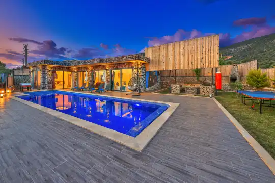 Doğa manzaralı kiralık villa İnci Duo, 2 yatak odası ve 2 banyoya sahiptir. Herkesin rahatlıkla kendi odasında dinleneceği villa, geniş bahçesi ve havuzu ile de rahatınızı en iyi şekilde karşılayacak alanlara sahiptir. Villa, deniz ve plaja 16,5 km uzaklıkta bulunmaktadır. Dışarıya çıkmadan da tatilinizi villada en hoş şekilde geçireceğinizi özellikle belirtmek isteriz. Neden mi? Çünkü muhafazakar kiralık villa olarak hazırlanan İnci Duo, dışarıdan görünmeye engel olan özel çitleri sayesinde muhafazakar tatil yapabileceğiniz en uygun adrestir. Bunun yanı sıra, havuzun yanı sıra bahçede yer alan masa tenisi ve langırt ile eğlenceli zamanlar geçirebilecek, çocuklarınız da mini oyun alanında diledikleri gibi oynayabilecek.