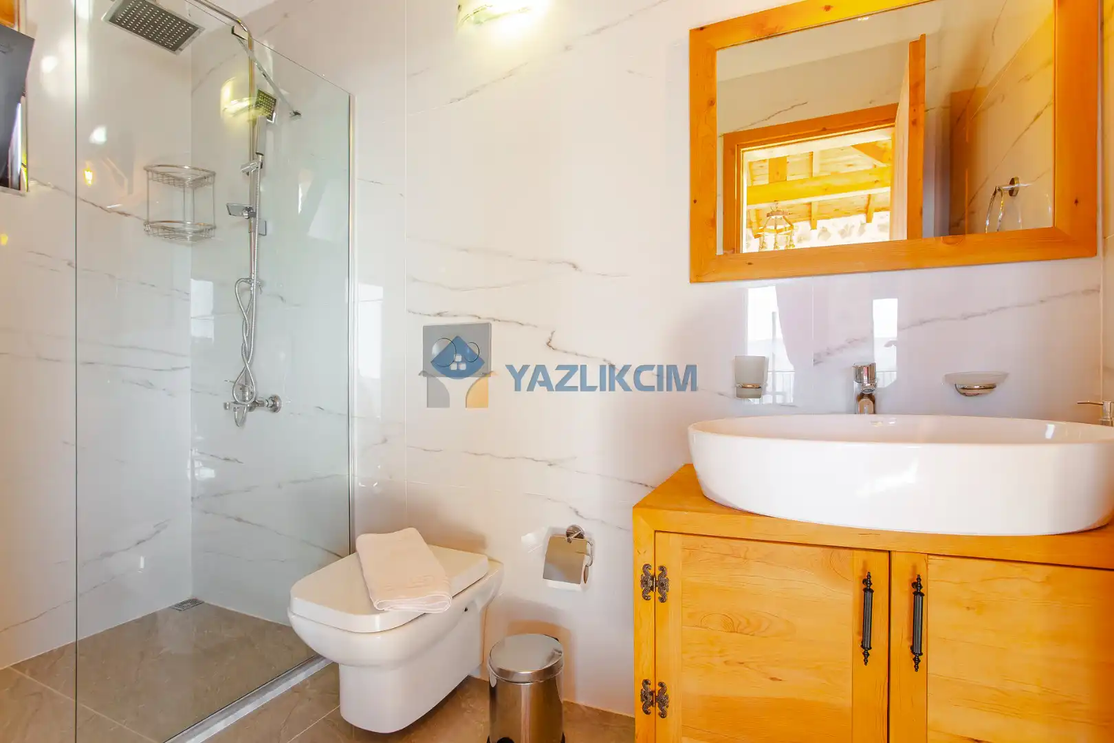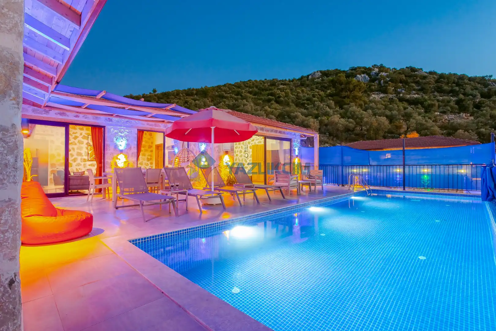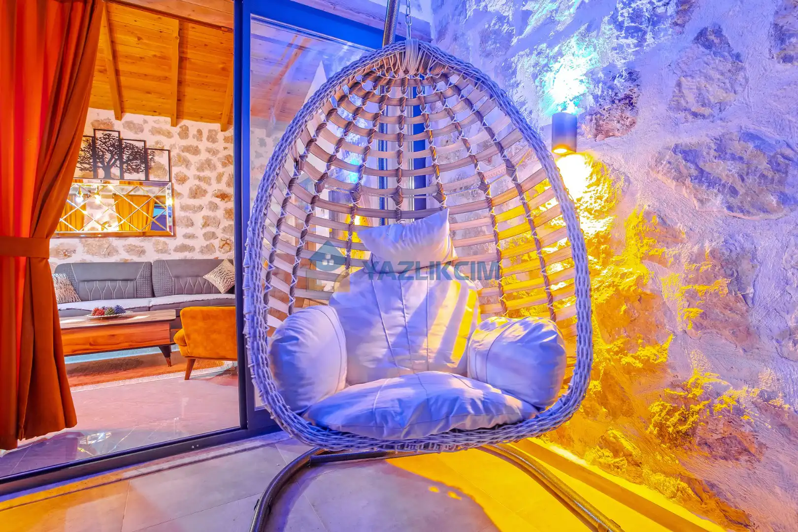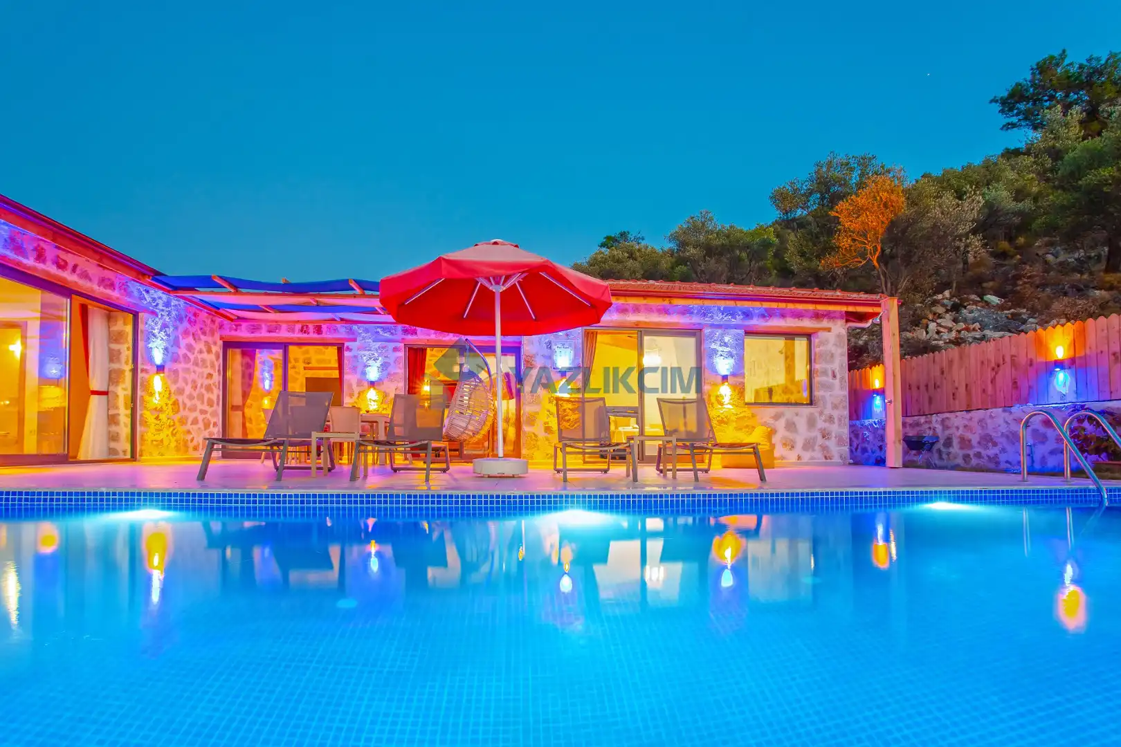 Doğa manzaralı kiralık villa İnziva’da 2 yatak odası ve 2 adet banyo bulunmaktadır. Çocuklu ailelerin de rahatça konaklayabileceği villayı dilerseniz yakın dostlarınız ile de kiralayabilir ve gönlünüzce bir tatil geçirebilirsiniz. Villanın deniz ve plaj ile olan uzaklığı 8 km’dir. Eğer plaj kalabalığına girmek istemiyor ve gönlünüzce yazın tadını çıkarmak istiyorsanız, villanın kendi bahçe ve havuzunda günü en iyi şekilde geçireceğinizi belirtmek isteriz. Çünkü villa İnziva, muhafazakar kiralık villa olarak hazırlandığından dolayı burada rahatlıkla muhafazakar tatil yapabileceksiniz. Üstelik ailenizle baş başa ve gözlerden uzakta. Bunun yanı sıra kendi evinizdeki rahatlığı birebir yaşama şansı sağlayan villada kendi yemeklerinizi hazırlayıp bahçede yiyebilir, rahat mobilyalarda uzanarak dinlenebilirsiniz. Villa tatili yapabileceğiniz İnziva için geç kalmayın.
