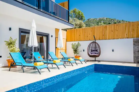 Doğa manzaralı kiralık villa Karadağ, 2 yatak odası ve 2 banyoya sahip bir yaşam alanıdır. Tatilinizi kiralık villada yapmak istiyor ve tercihinizi doğa manzarasından yana kullanmak istiyorsanız, hem Kalkan’da hem kiralık villa Karadağ’da tam isteğinize göre bir tatil yapacaksınız demektir. Ancak villa öyle güzel bir lokasyonda yer alıyor ki, denize de yalnızca 3 km uzaklıkta bulunuyor. Denizin de tadını çıkarabilecek ya da kendinize ait muhafazakar havuz ile de hoşça vakit geçirebileceksiniz. Kalkan’da kiralık villaolan Karadağ’ın aynı zamanda en güzel özelliklerinden birisi muhafazakar villa olmasıdır. Böylece eğer tercihiniz ailecek kendi halinizde tatil yapmak ve özgürce hareket etmekse tercihinizi gönül rahatlığı ile Karadağ’dan yana kullanabilirsiniz. Değişiklik değil belki ama tahmininizden daha fazla bir rahatlığa kavuşacağınız kiralık villa Karadağ’da aynı zamanda jakuzi, bahçede barbekü ile ihtiyaçlarınızdan öte bir konfora kavuşacaksınız. Kendi yemeklerinizi barbeküde yapabilecek, villanızda misafir ağırlayabilecek, günün en sıcak saatlerinde havuzunuzda özgürce serinleyebileceksiniz. Elbette konforlu ve rahat mobilyaları da eklemeden geçemeyeceğiz. Şuna emin olabilirsiniz ki, villada yok yok