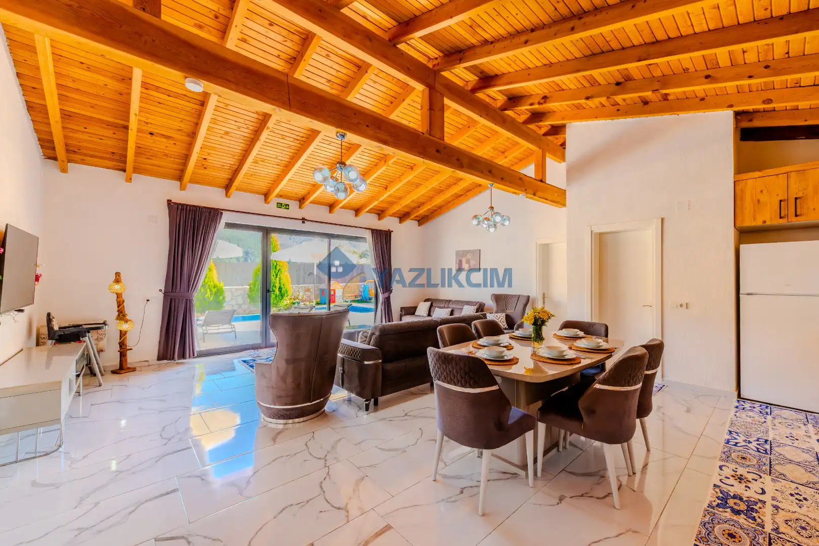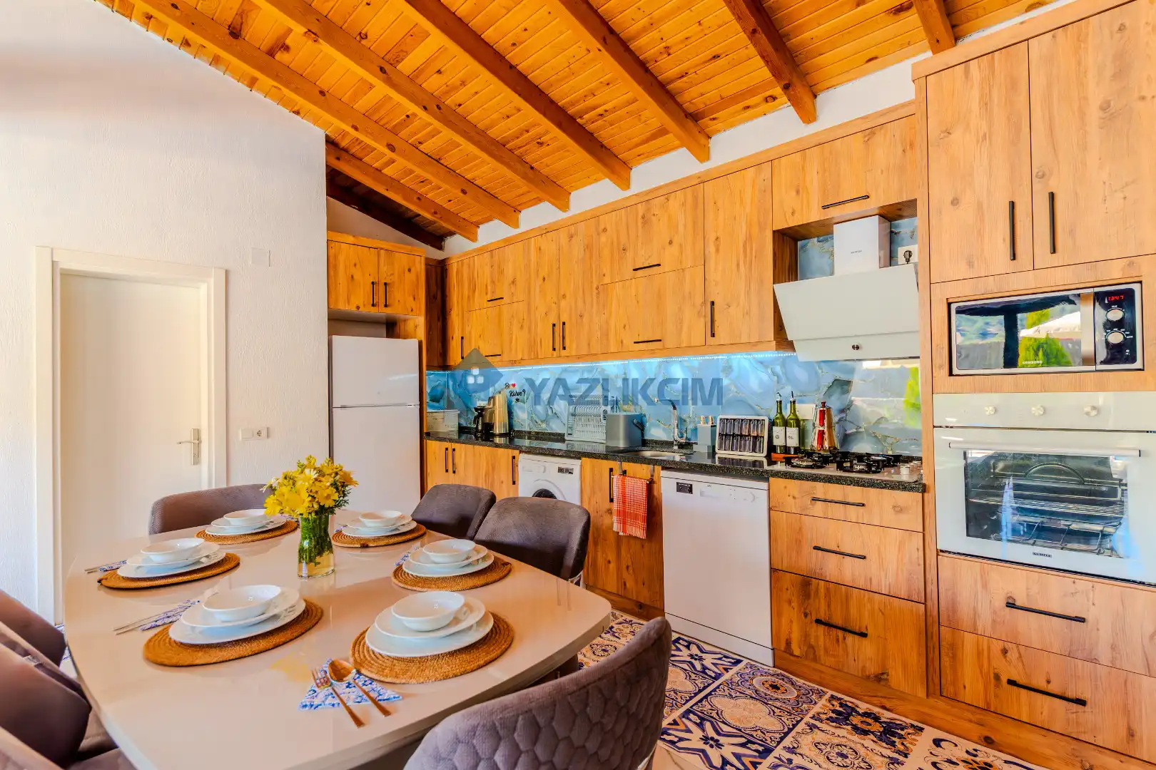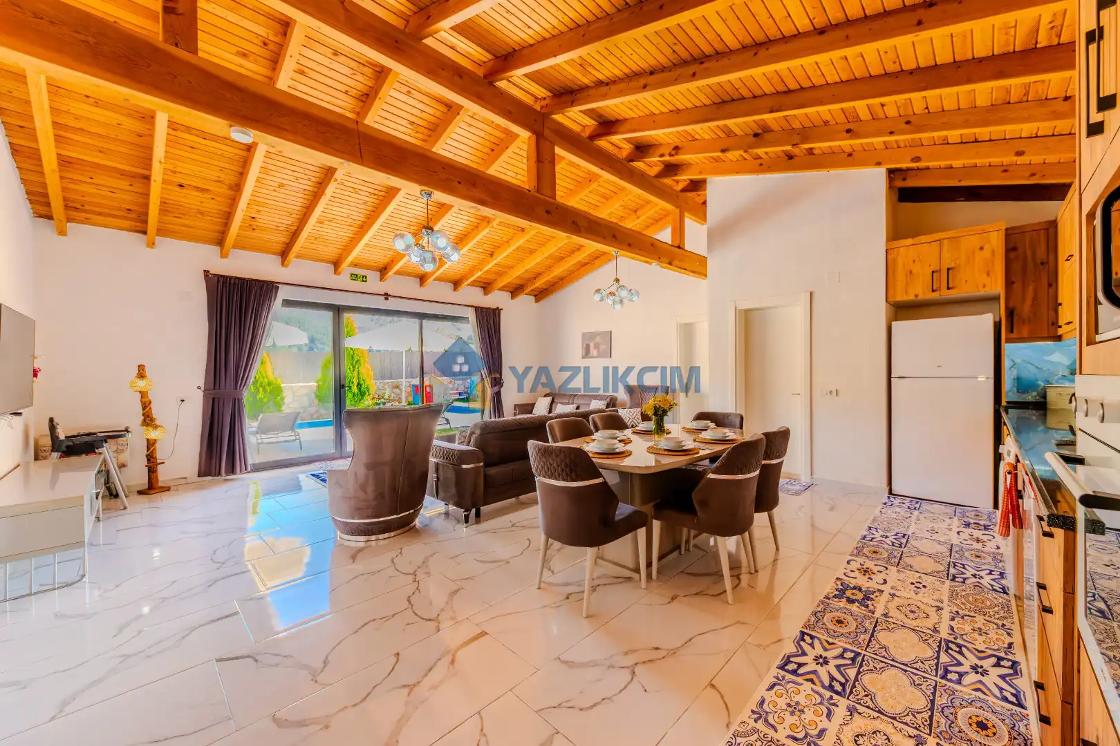 Villalarımızın hiçbirisinde yemek hizmeti bulunmamaktadır. Bunları siz misafirlerimizin temin etmesi gerekmektedir. Villalarımızın mutfak bölümü yemek yapmaya elverişli şekilde dizayn edilmiş olup gerekli araç ve gereçler mevcuttur. Villalarımızın bazılarında fırsatlar bölümünde yer alan ücretsiz Serpme Köy Kahvaltısı önceden belirlenmiş restaurantta veya kahvaltı salonlarında 4 kişiliğe kadar bir gün ücretsiz verilmektedir. Ücretsiz kahvaltıyı yapmak istediğiniz günden bir gün önce rezervasyon yaptırmanız gerekmektedir. Ücretsiz köy kahvaltısı 5 (beş) gece ve üzerindeki konaklayan misafirlerimiz için geçerlidir.