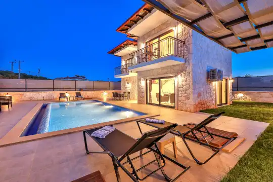 Kaş’ta kiralık villa tatili geçirmek isteyenler için hazırlamış olduğumuz Kaşlı 2, diğer kiralık villa Kaşlı 1 ile komşu durumdadır. Hem Kaş’ta hem de kiralık villa olan tatil alternatifinizi çok seveceksiniz. Özellikle çocuklu aileler tatillerini daha rahat ve konforlu geçirmek ister. Kaşlı 2’de bu konforu fazlasıyla bulacak, rahatça tatilinizin tadını çıkaracaksınız. Doğa manzaralı kiralık villa Kaşlı 2, Kaş’ın iç açan doğa manzarasını ayağınıza kadar getiriyor. 2 yatak odalı ve 2 banyolu villanın denize olan mesafesi 7 km’dir. Denize de yakın olacağınız villanın kendi havuzunda günün dilediğiniz saati serinleyebilir, bahçede keyif çatabilir, içeceklerinizi mutlulukla yudumlayabilirsiniz. Kiralık villa tatillerinin en dikkat çeken ve sevilen özelliklerinin başında kendi evinizdeki konforu tatilinde de sizlere sunuluyor olmasıdır. Doğa manzaralı villa Kaşlı 2 de, bu konforu size fazlasıyla sağlayacak yaşam alanlarınızda birisi haline gelecek. Bu ilk kiralık villa deneyiminizi sonraki tatilleriniz için de uygulayacak ve adresiniz Kaşlı 2 olacaktır. Rahat mobilyaları, eksiksiz eşyaları ile hem dinlenecek hem de kendi yemeklerinizi hazırlayarak bahçede ailecek yiyebileceksiniz. Tatillerin yorucu olduğu fikri artık sizden çok uzakta olacak. Çünkü kiralık villa Kaşlı 2’de geçireceğiniz tatilde yorgunluğu unutacak tamamen dinlenmiş bir halde tatilinizi sonlandıracaksınız. Böylesi huzur dolu bir tatil fikrinin hayal olmadığını Kaş’ta kiralık villa Kaşlı 2’de mümkün olduğunu bilmenizi isteriz.