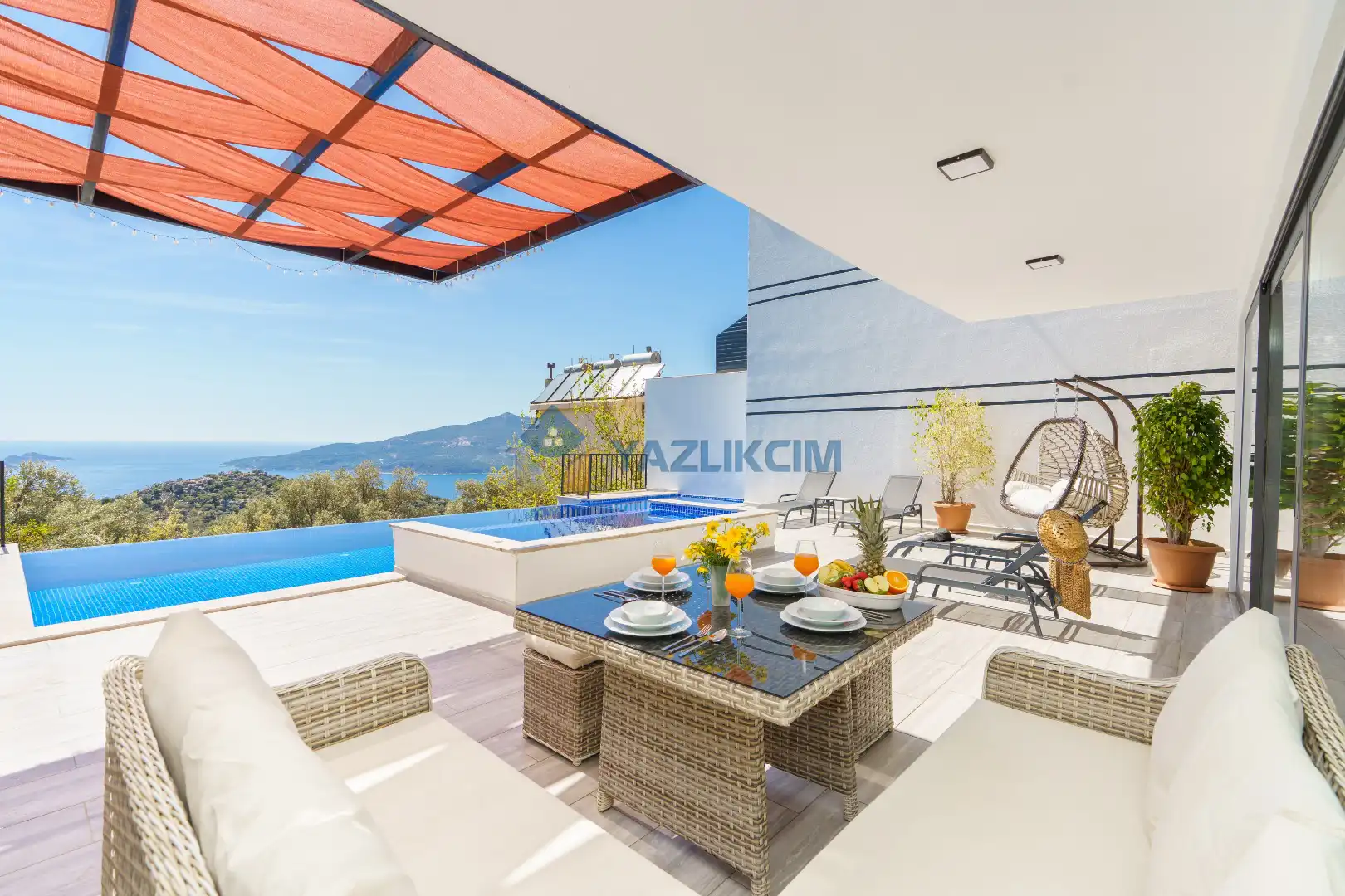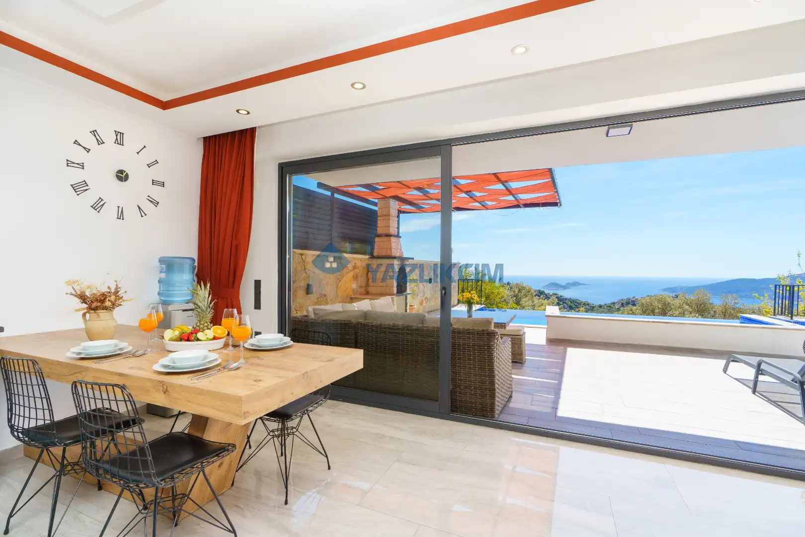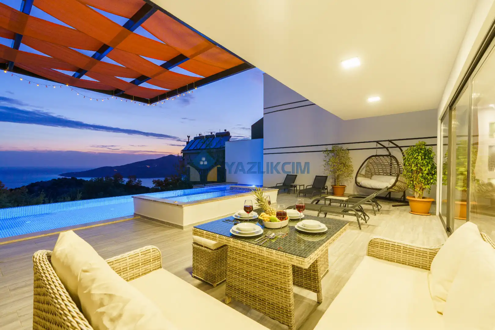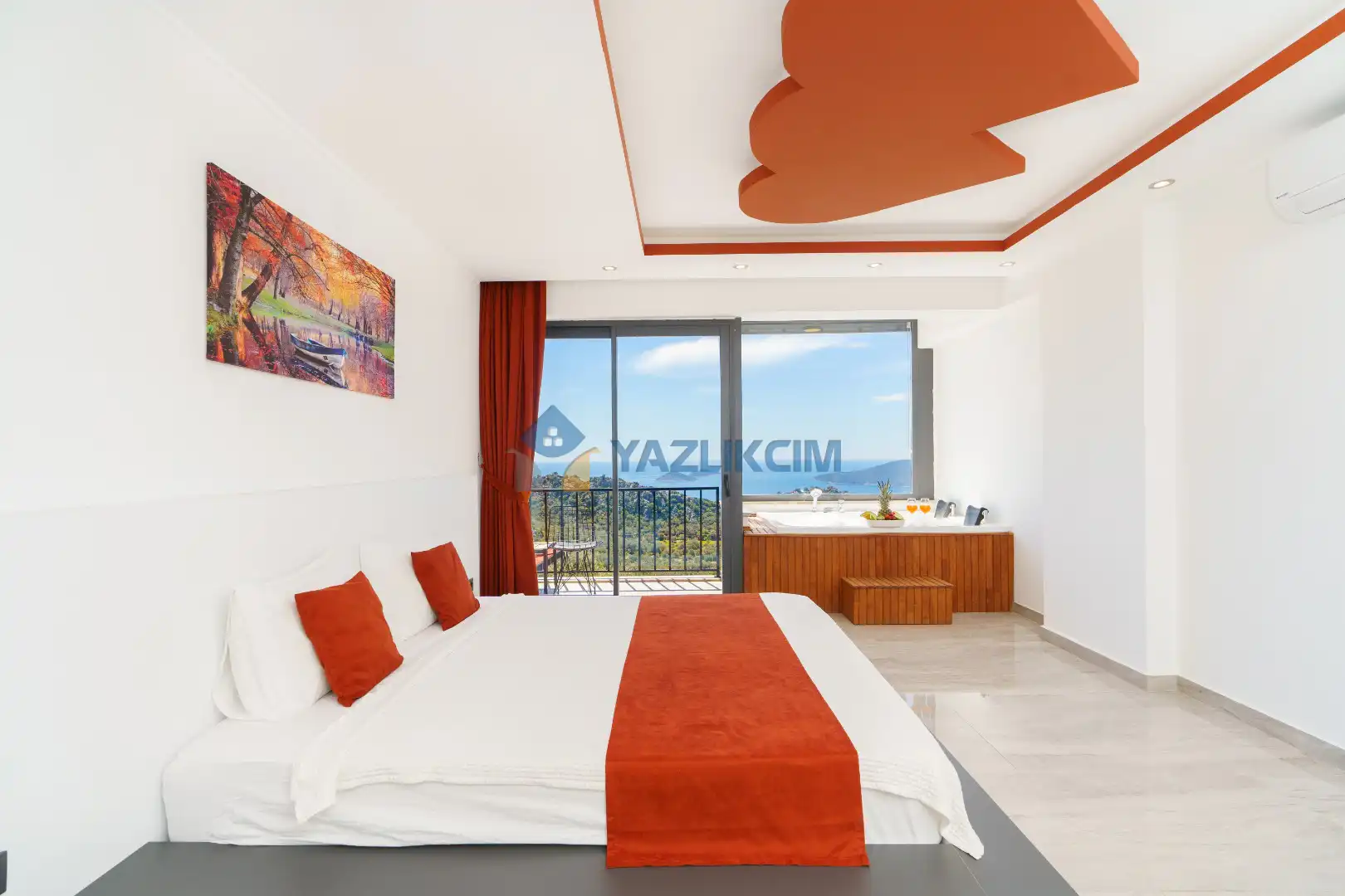 Kalkan’da deniz manzaralı kiralık villa olan Kısmet, ailenizle birlikte size huzurlu bir tatil vadediyor. Kalkan’ın sıcacık havası ve güzel manzarası eşliğinde konaklayacağınız villa Kısmet, kiralık villa tatili denilince aklınıza gelecek ilk adres olacak. Sonraki tatillerinizde de devamlı tercih edeceğiniz birinci yer. Deniz manzaralı kiralık villa Kısmet, 2 yatak odası ve 2 banyoya sahip bir yaşam alanıdır. Yaşam alanı diyoruz çünkü burada konakladığınız her an kendi evinizde hissedeceğiniz bir konfora sahip olacaksınız. Villa Kısmet’in deniz ve plaja olan uzaklığı 3.5 km’dir. Villanın muhafazakar kiralık villa olduğunu da özellikle belirtmek isteriz. Tatillerini bu tercihten yana kullanmak isteyenler için özellikle beğeni taşıyan villa Kısmet, tatiliniz süresince sizlere sonsuz bir özgürlük sunuyor. Bahçede dinlenip güneşlenirken, havuzda yüzerken kendinizi dış dünyadan soyutlanmış hissedeceğiniz kapalı alanları ile villada fazlasıyla rahat edeceksiniz. Mimari açıdan da oldukça şık detaylara sahip olan kiralık villa, Kalkan’da yazlık villa arayan aileler için doğru adres olacak. Renkli dekoru, rahat mobilyaları, eksiksiz eşyaları ile bir tatilden çok daha fazlasına sahip olacağınız villa Kısmet, evinizden sonraki ikinci adresiniz olacak. Geniş bahçede yer alan barbeküde nefis akşam yemekleri hazırlayacak, deniz manzarasına karşı havuz başında ailecek yiyebileceksiniz. Huzur, konfor, rahatlık adına her şeyi bulabileceğiniz villa için geç kalmayın ve erken rezervasyon yaptırarak tatilinizi garantileyin.