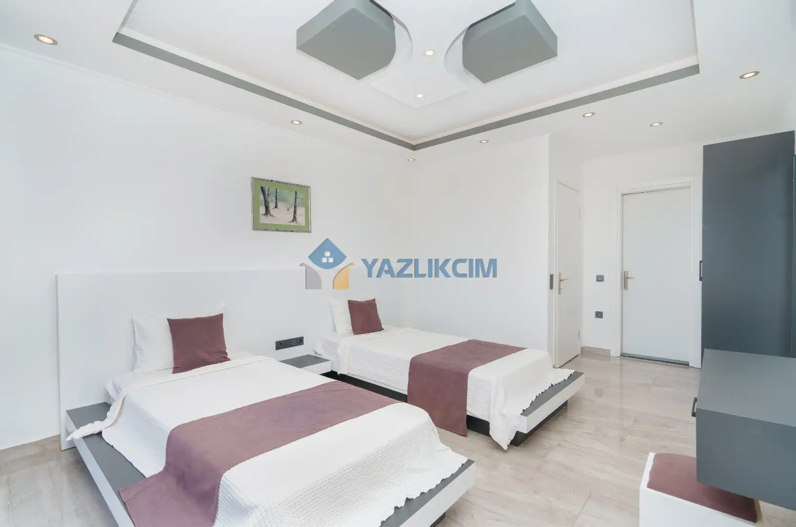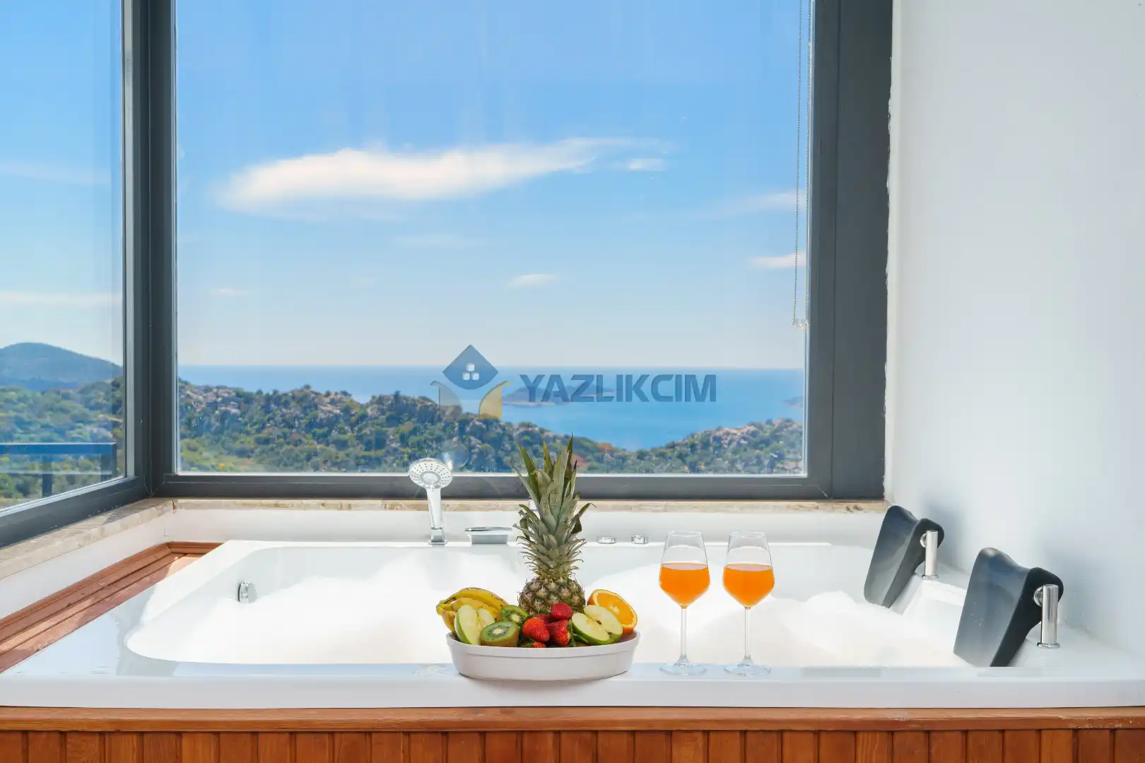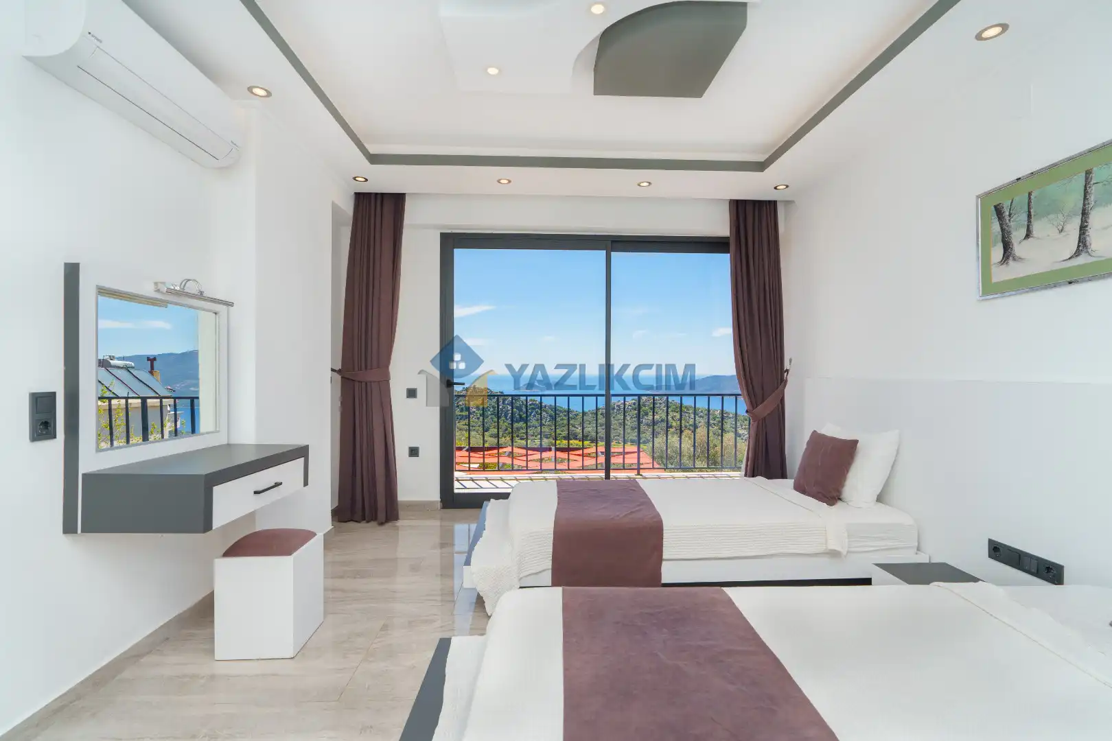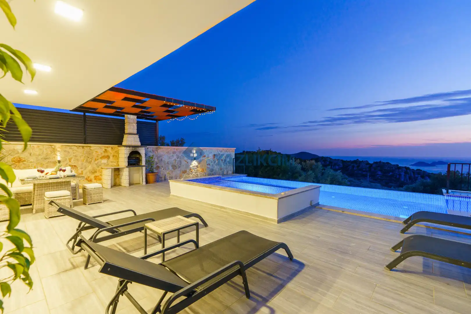 Kalkan’da deniz manzaralı kiralık villa olan Kısmet, ailenizle birlikte size huzurlu bir tatil vadediyor. Kalkan’ın sıcacık havası ve güzel manzarası eşliğinde konaklayacağınız villa Kısmet, kiralık villa tatili denilince aklınıza gelecek ilk adres olacak. Sonraki tatillerinizde de devamlı tercih edeceğiniz birinci yer. Deniz manzaralı kiralık villa Kısmet, 2 yatak odası ve 2 banyoya sahip bir yaşam alanıdır. Yaşam alanı diyoruz çünkü burada konakladığınız her an kendi evinizde hissedeceğiniz bir konfora sahip olacaksınız. Villa Kısmet’in deniz ve plaja olan uzaklığı 3.5 km’dir. Villanın muhafazakar kiralık villa olduğunu da özellikle belirtmek isteriz. Tatillerini bu tercihten yana kullanmak isteyenler için özellikle beğeni taşıyan villa Kısmet, tatiliniz süresince sizlere sonsuz bir özgürlük sunuyor. Bahçede dinlenip güneşlenirken, havuzda yüzerken kendinizi dış dünyadan soyutlanmış hissedeceğiniz kapalı alanları ile villada fazlasıyla rahat edeceksiniz. Mimari açıdan da oldukça şık detaylara sahip olan kiralık villa, Kalkan’da yazlık villa arayan aileler için doğru adres olacak. Renkli dekoru, rahat mobilyaları, eksiksiz eşyaları ile bir tatilden çok daha fazlasına sahip olacağınız villa Kısmet, evinizden sonraki ikinci adresiniz olacak. Geniş bahçede yer alan barbeküde nefis akşam yemekleri hazırlayacak, deniz manzarasına karşı havuz başında ailecek yiyebileceksiniz. Huzur, konfor, rahatlık adına her şeyi bulabileceğiniz villa için geç kalmayın ve erken rezervasyon yaptırarak tatilinizi garantileyin.