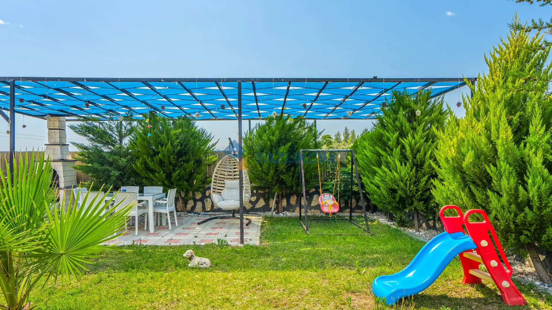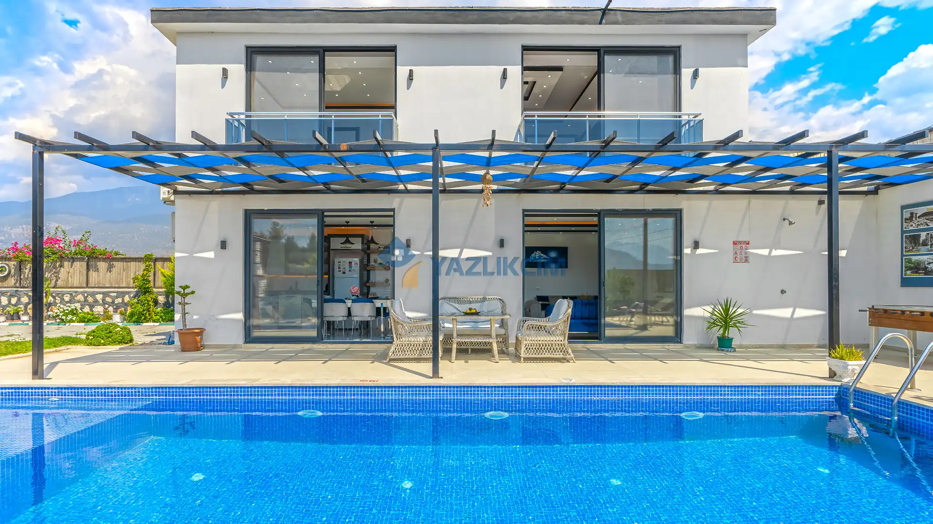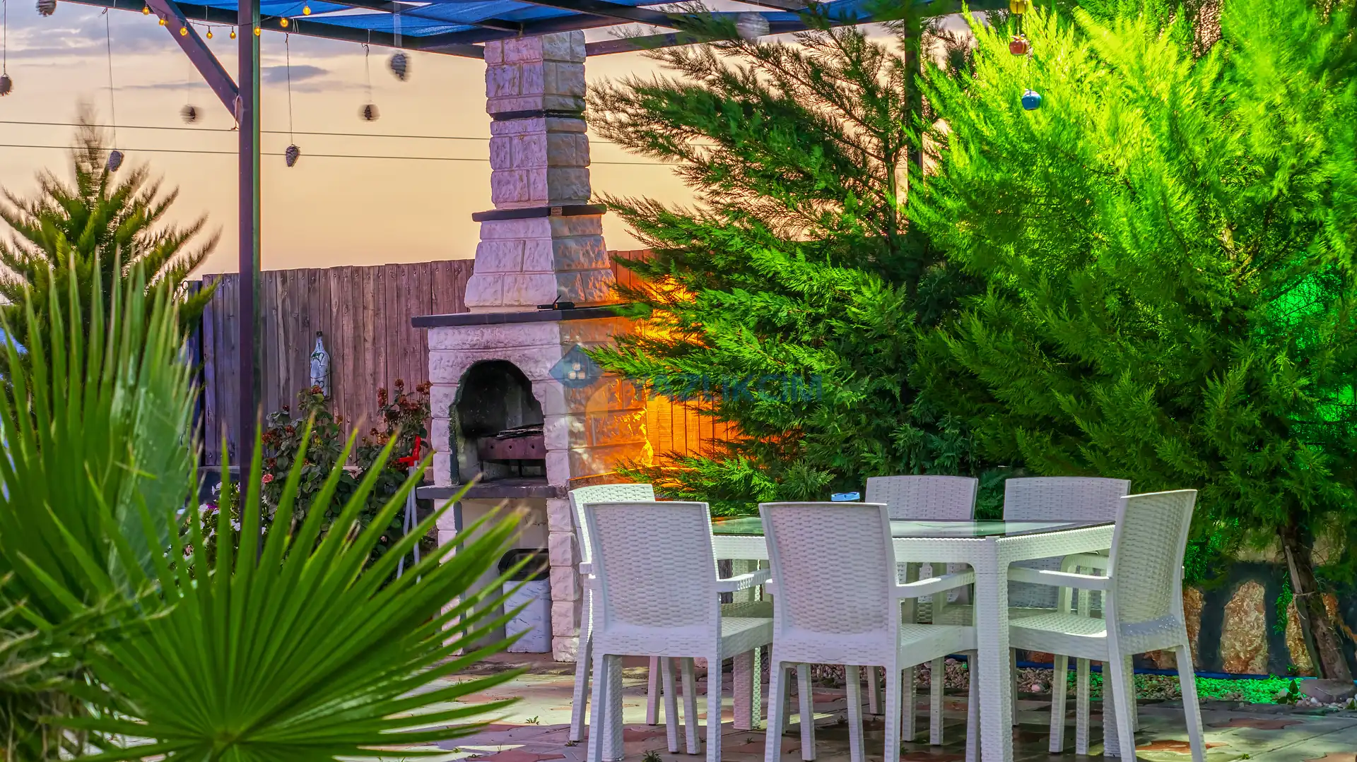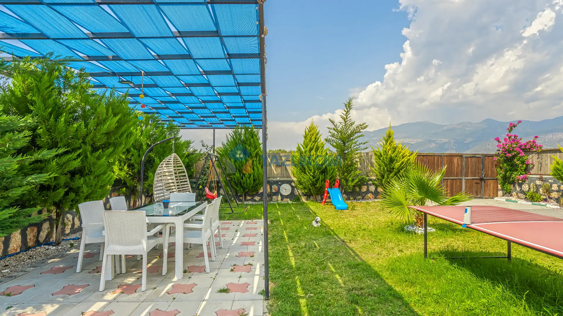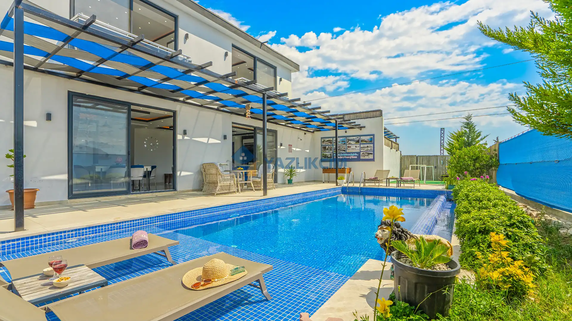 Detayları : Şezlonglar, barbekü, yemek masası, salıncak, oturma grubu bulunmaktadır.