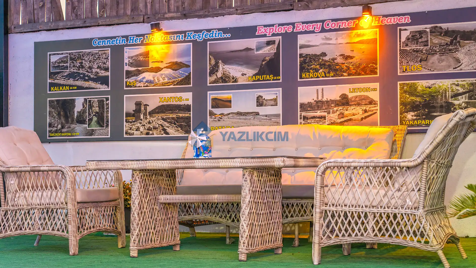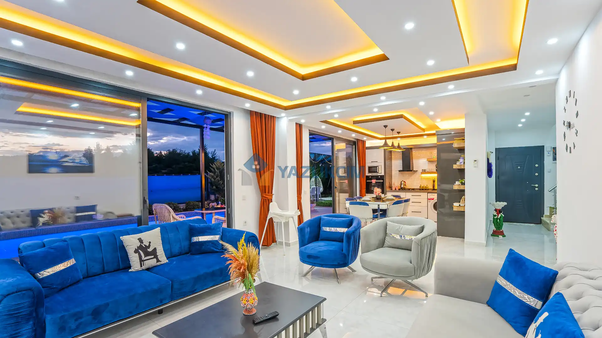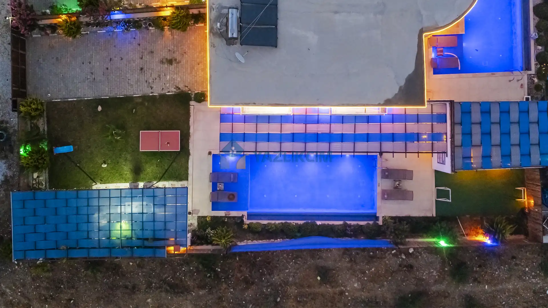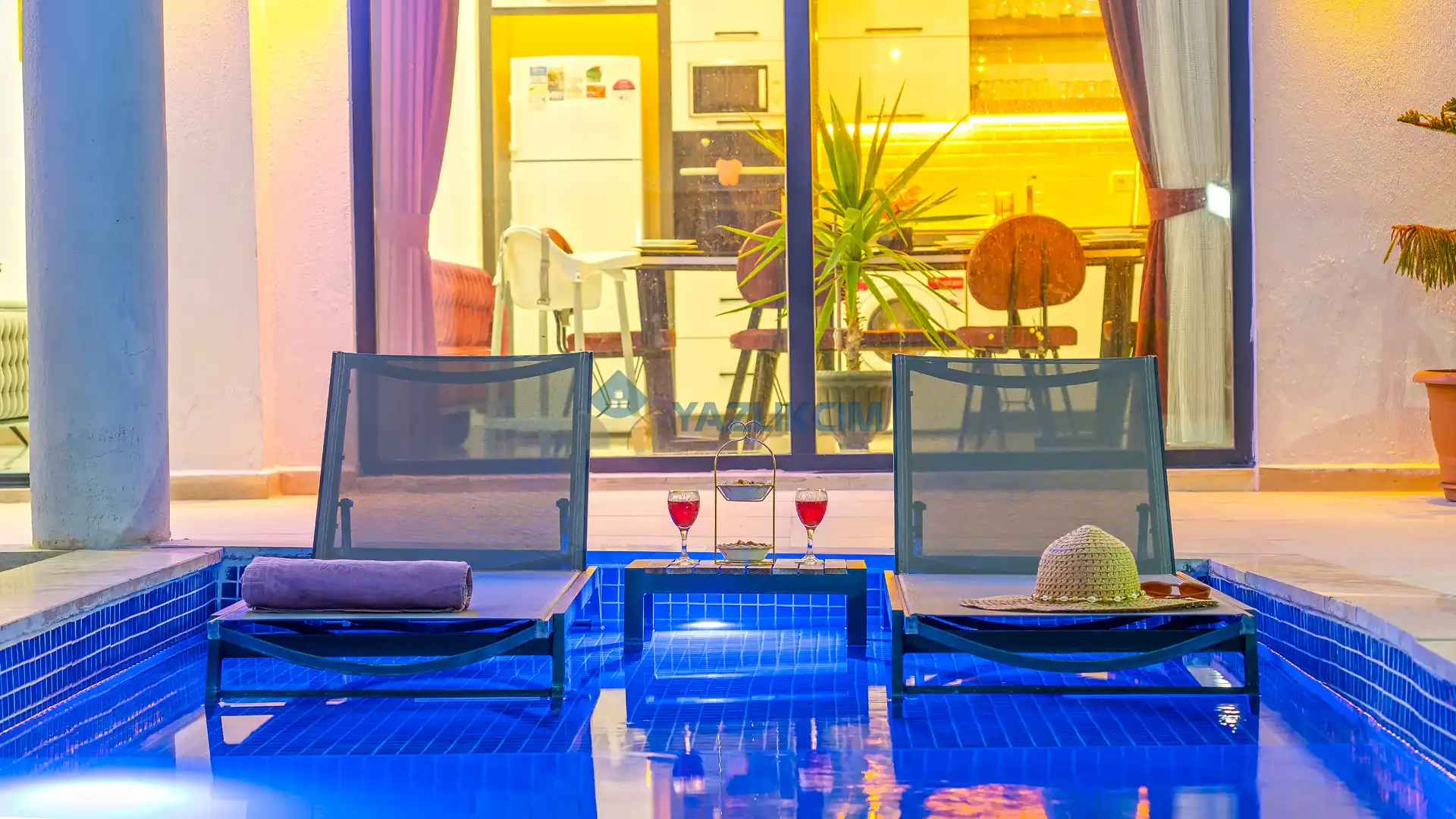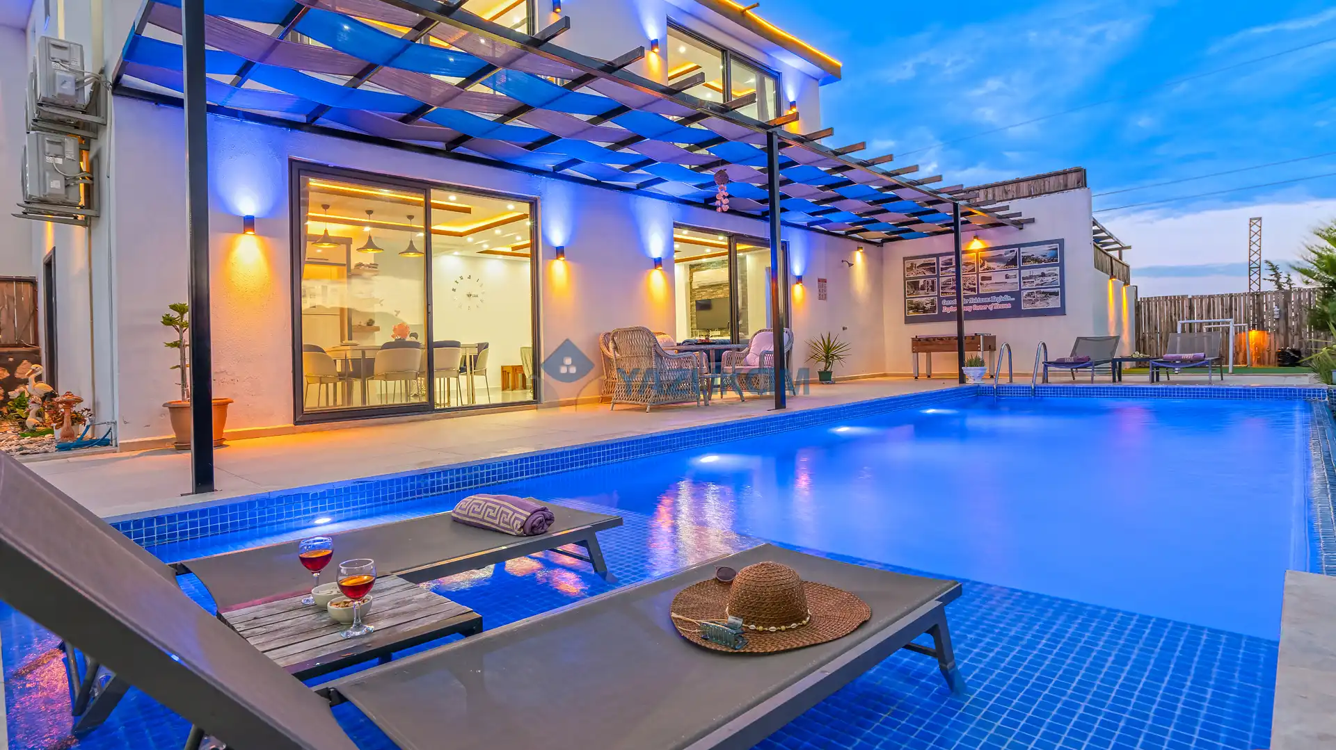 Detayları : Şezlonglar, barbekü, yemek masası, salıncak, oturma grubu bulunmaktadır.