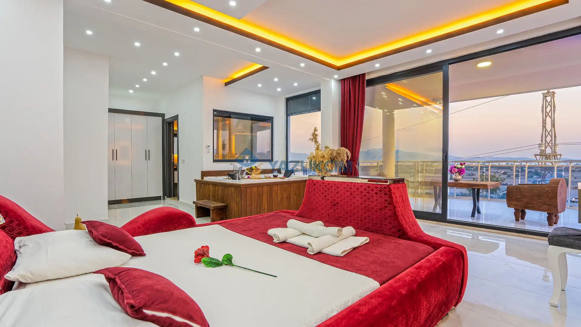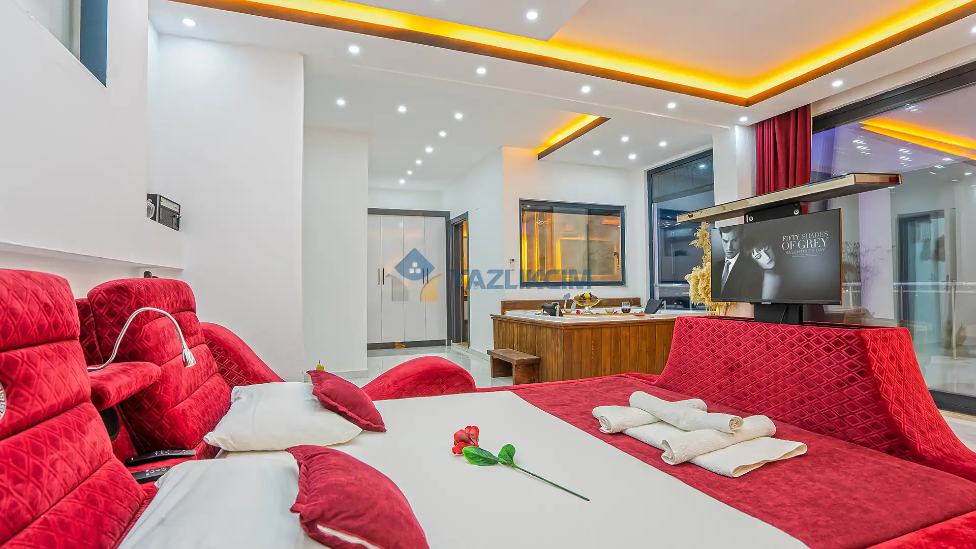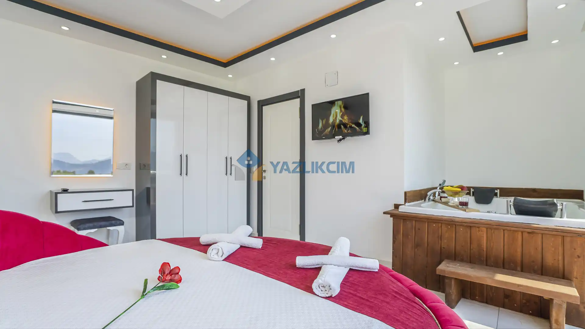 Detayları : Bir adet çift kişilik yatak ,klima, jakuzi, komodin, makyaj masası , elbise dolabı ve ebeveyn banyosu bulunmaktadır.