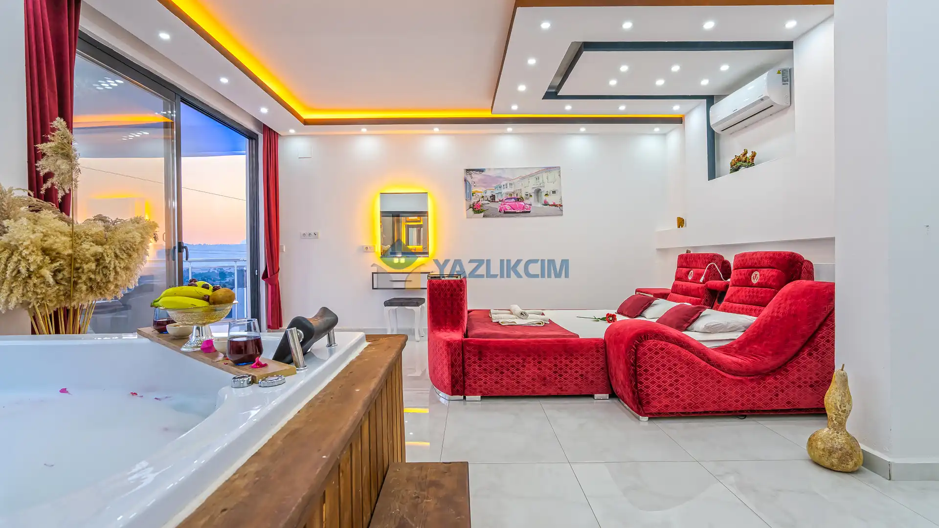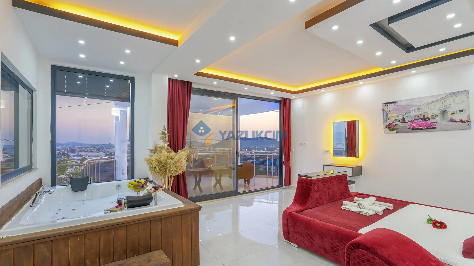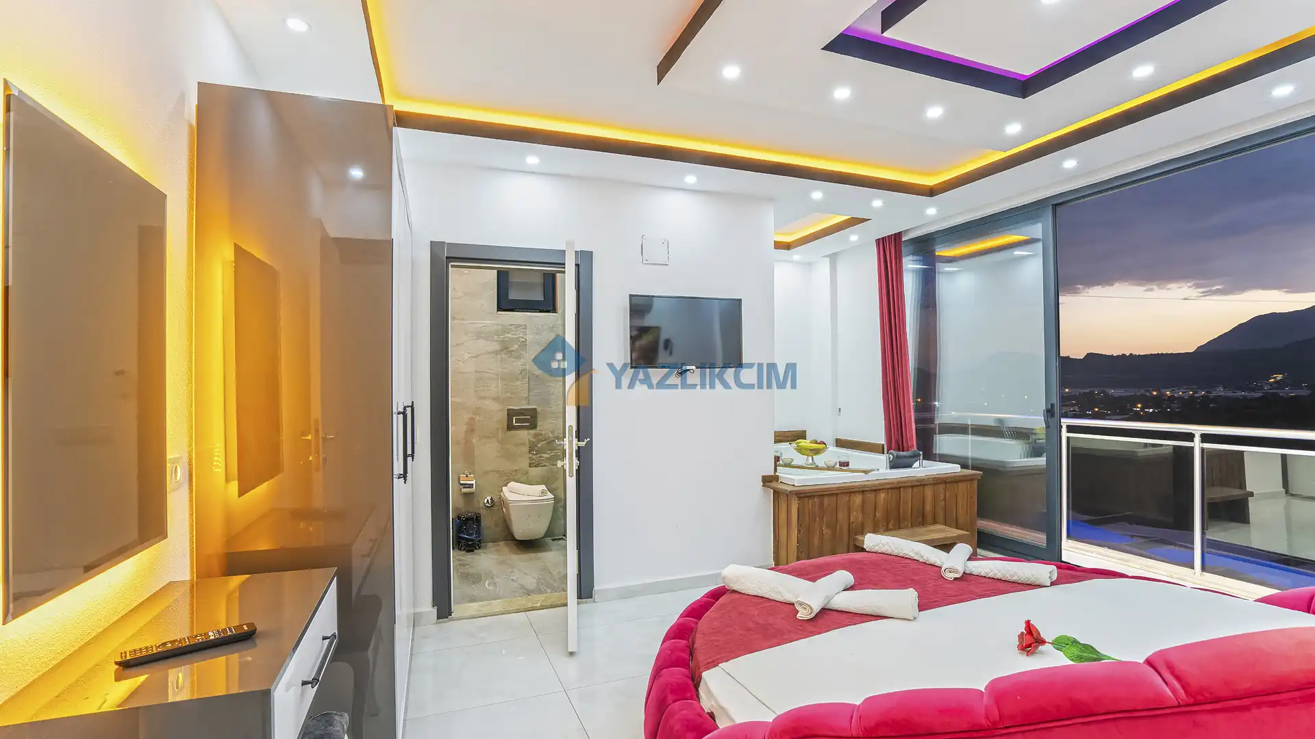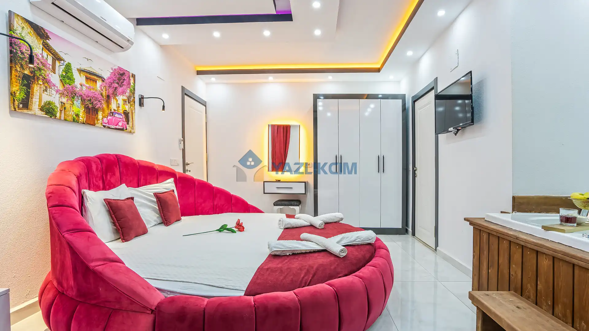 Detayları : Bir adet çift kişilik yatak ,klima, jakuzi, komodin, makyaj masası , elbise dolabı ve ebeveyn banyosu bulunmaktadır.