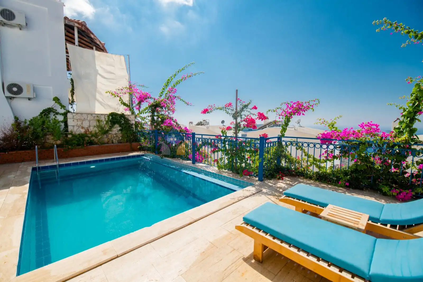 Deniz manzaralı kiralık villa Manzara, 3 yatak odası ve 3 banyosu ile geniş bir yaşam alanı oluşturuyor size ve ailenize. Plaja uzaklığı 3 km olan villa, sahip olduğu manzarası ile ayrılmak istemeyeceğiniz bir huzur sunuyor size. Eğer bir tatilden beklentiniz güneşin ve denizin tadını çıkarırken aynı zamanda bolca dinlenmek, tüm yılın yorgunluğunu atmak ise doğru adreste konaklıyor olacaksınız. Devamlı soluyacağınız bolca oksijen ile ruhunuzun da dinlendiğini hissedecek, keyif ve konforla Manzara’nın tadını çıkaracaksınız. Bahçeyi çevreleyen begonvil ve ağaçların gölgesinde çayınızı yudumlarken çocuklarınız havuzun tadını çıkaracak. Deniz manzaralı villa Manzara’yı dilerseniz yakın dostlarınız ile de kiralayabilir ve eğlenceli bir tatil geçirebilirsiniz. Villada konaklarken kendi yemeklerinizi hazırlayabilecek, havuz başında ailenizle keyifle yiyebileceksiniz. Kendi evinizde hissedeceğiniz villada ihtiyaç duyacağınız tüm detayları sizin için hazırladık. Size kalan yalnızca valinizi alıp yola koyulmak. Şık mobilyalar, eksiksiz eşyalar, keyif alanları ile bir tatilden çok daha fazlasını deneyimleyeceğiniz kiralık villanızdan ayrılmak istemeyeceğinize emin olabilirsiniz. Ki ayrılmanıza gerek kalmayacak. Bir sonraki tatil rotanızı çoktan oluşturmuş olacak ve yine kendinizi Kalkan’da villa Manzara’da bulacaksınız.