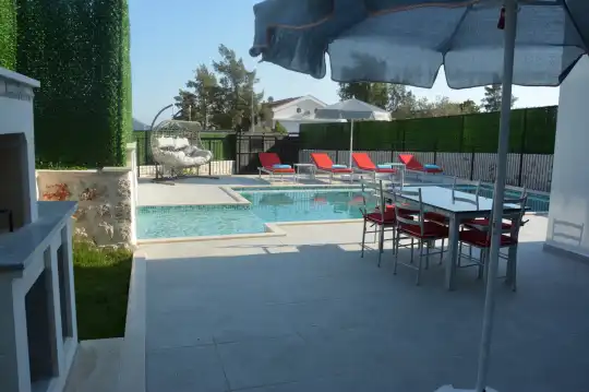 Deniz manzaralı kiralık villa Özgür, 2 yatak odası ve 2 banyoya sahip. Denize ve plaja uzaklığı 3 km olan villa kendi havuzu ile size yeterli tatil imkanı sunuyor. Kiralık villa tatillerinin en güzel özelliklerinden birisi, belirli saat ve kurallara bağlı kalmadan dilediğiniz gibi tatilinizi şekillendirmeniz, kendi özgürlüğünüzün tadını çıkarmanızdır. Tatiller yorgunluk atmak, dinlenmek ve huzurlu bir şekilde geçirdiğiniz zamanlardan keyif almak içindir. Tatilinizi ve sizi yoracak şeylerden kaçınıp, tam anlamıyla huzur depolayacağınız bir villada konaklayarak geçireceğiniz tatil sonrası hem fazlasıyla dinlenmiş hem de yeterince huzurla dolmuş olacaksınız. Çünkü özellikle muhafazakar villa Özgür, sizler için hazırlamış olduğu eşyaları, mobilyaları, manzaralı konumu ve detayları ile sizi fazlasıyla mutlu bir şekilde uğurlayacak kendi evinize. Özgür için muhafazakar villa dedik. Bu da özellikle muhafazakar tatil geçirmek isteyen misafirlerimiz için öncelikli dikkat edilen ve cazip noktalardan. Bu tatil alternatiflerinde, kalabalıktan uzak tamamen size ait ve dışarıdan görünmeyen havuz, bahçede vakit geçirebiliyor, dilediğiniz gibi güneşlenip yüzebiliyorsunuz. Böyle bir tatil yapmak imkansız eğil. Sizler için hazırladığımız muhafazakar villalar ile yeni bir tatil deneyimi edinebilirsiniz.