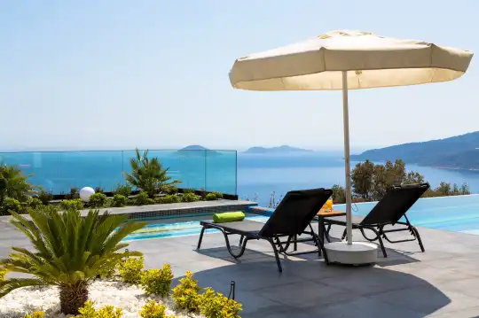 Deniz manzaralı kiralık villada tatil yapmaya hazır olun. Antalya Kalkan’da tamamen sizlerin keyif ve konforu göz önünde bulundurularak hazırlanmış lüks villa Panorama ile unutulmayacak bir tatil geçireceksiniz. Kalabalık aileler için geniş bir yaşam alanı sunan villanız 4 yatak odası ve 4 banyoya sahip. Lüks villanız sadece deniz değil aynı zamanda Kalkan’ın tertemiz doğasına da ev sahipliği yapıyor şahane konumu ile. Manzarayı kuş bakışı çevreleyen Villa Panorama’nın mimarisindeki şıklığı çok seveceksiniz. Çocuk havuzu ile çocuklarınızı da ihmal etmeyen bu deniz manzaralı lüks villanızda doyasıya vakit geçirebilin diye tüm detaylar düşünüldü. Bizler için tatilinizden ziyade konfor ve huzurunuz daha ön planda. Bundan dolayı hem manzarası, hem bahçesi, hem rahat ve konforlu mobilyaları, aynı zamanda bahçede de keyifli zamanlar geçirebilin diye bahçe mobilyaları ile de kiralık villanız size her türlü keyfi tatiliniz süresine büyük bir istekle sunuyor. Kiralık lüks villa Panorama için erken rezervasyon yaptırabilir ve tatiliniz için fazlasıyla heyecanlı bir nedeniniz daha olabilir.