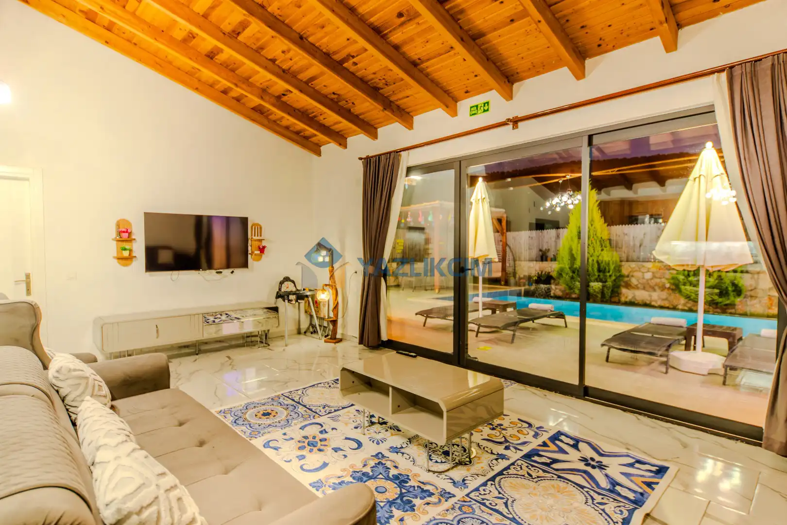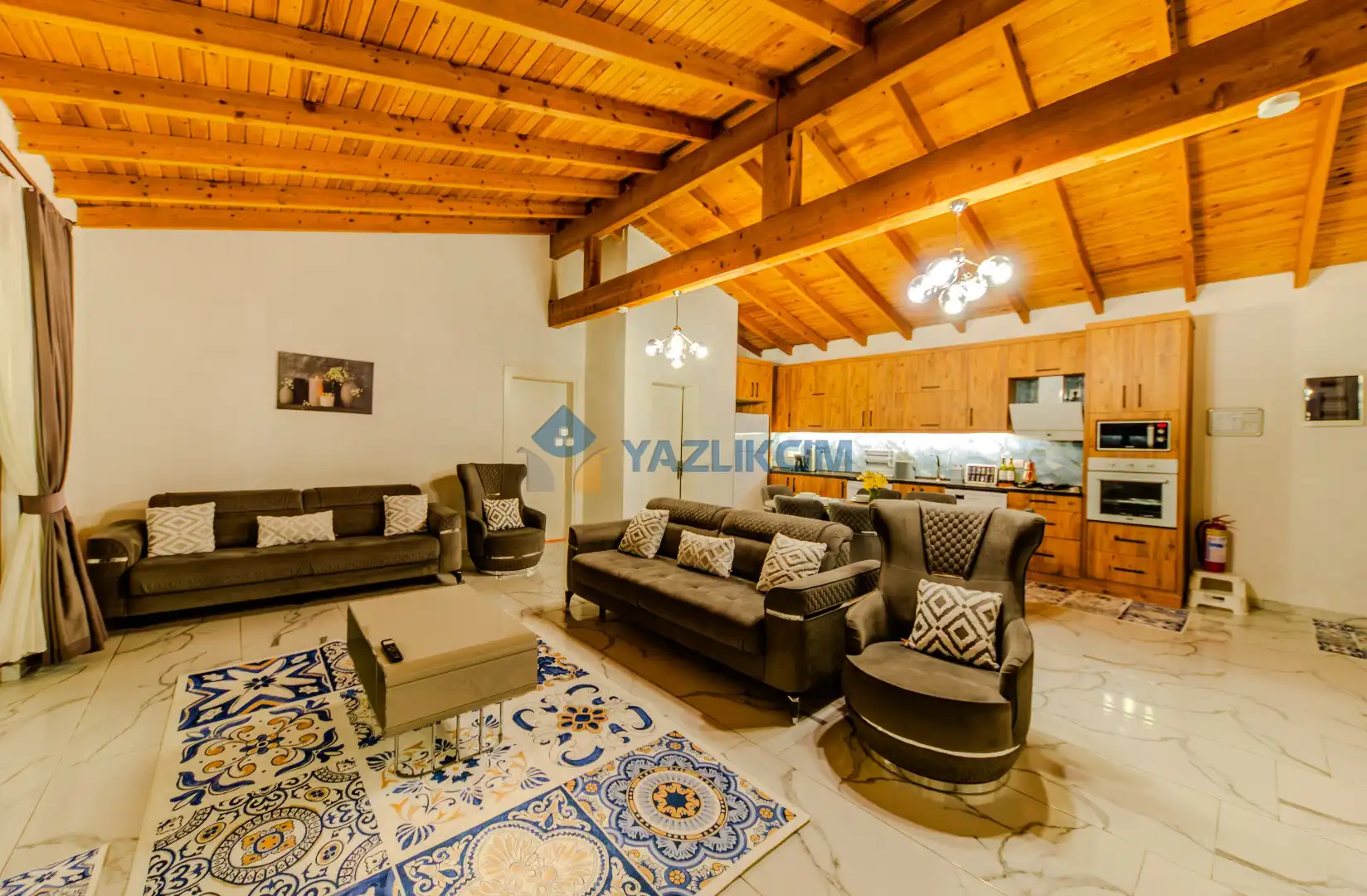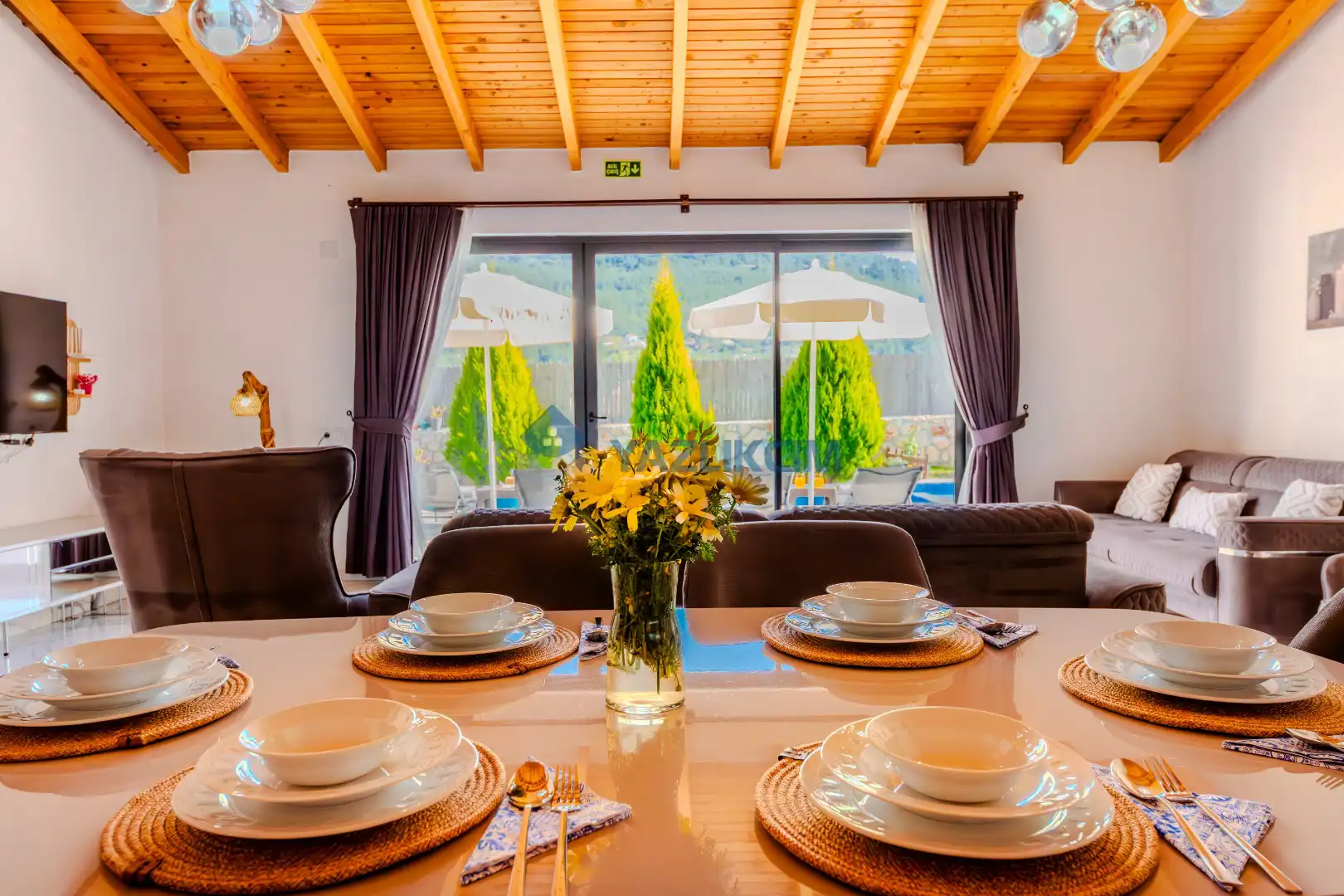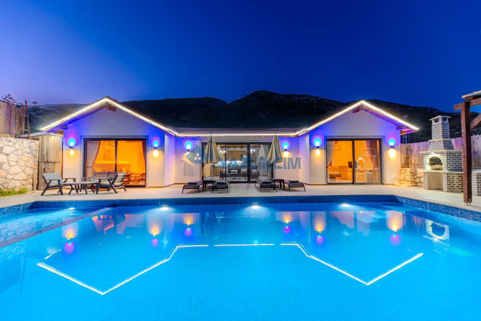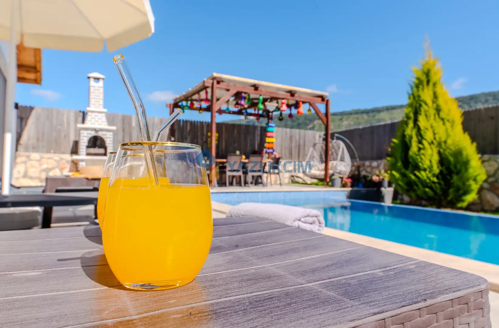 Detayları : Şezlonglar, barbekü, yemek masası, salıncak, oturma grubu bulunmaktadır.