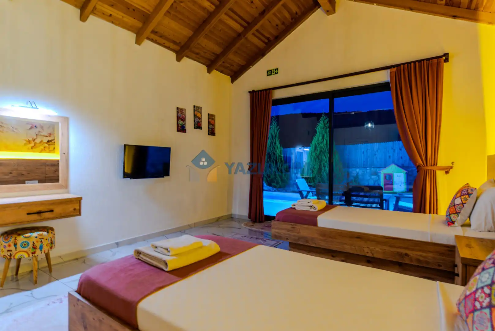 Detayları : İki adet tek kişilik yatak , klima, komodin, makyaj masası ve elbise dolabı bulunmaktadır.
