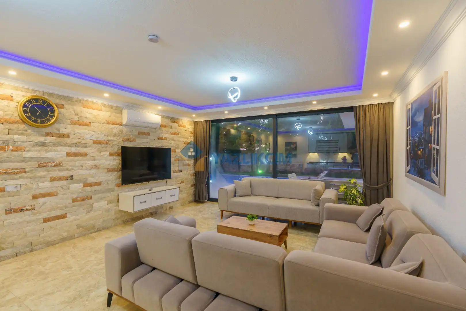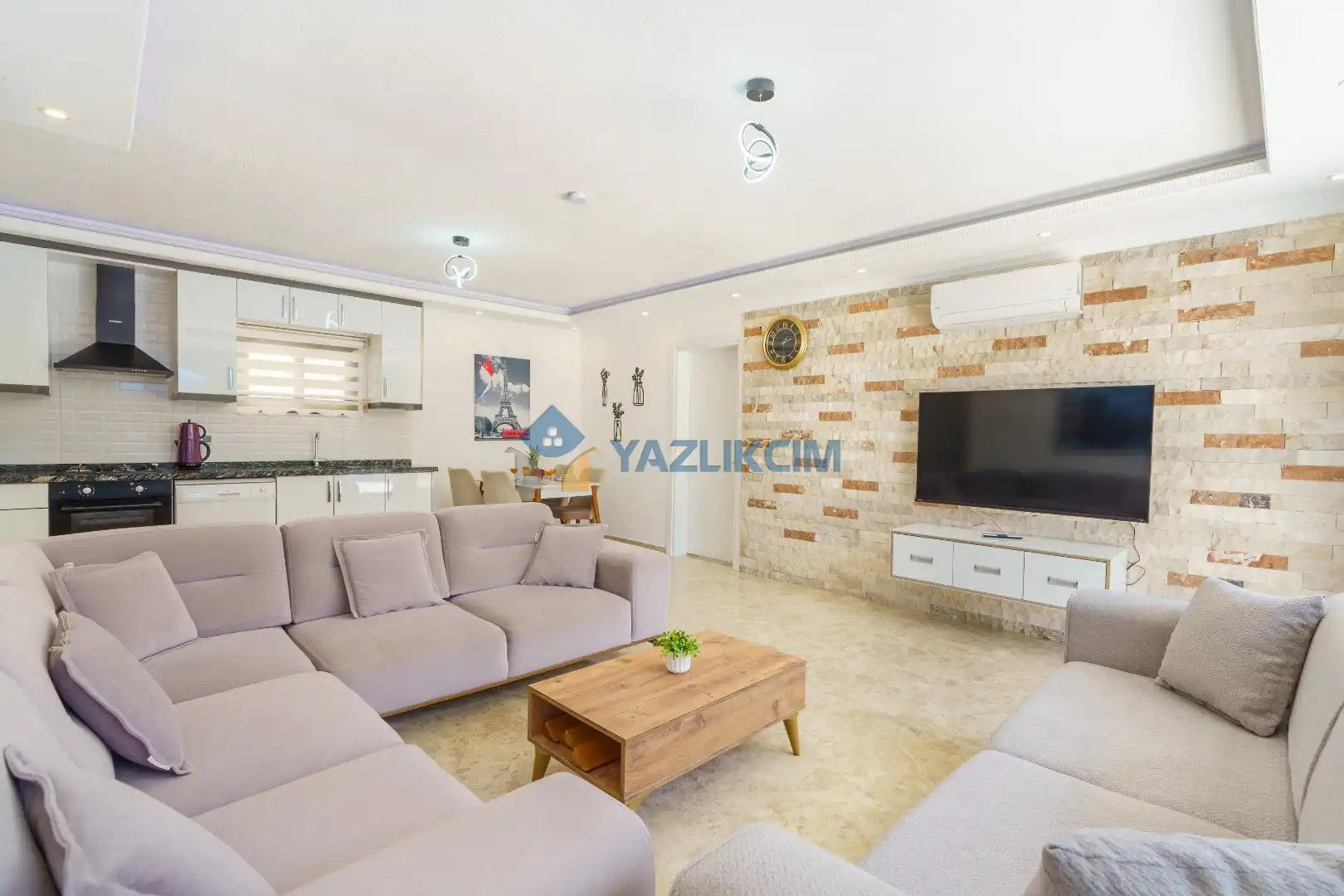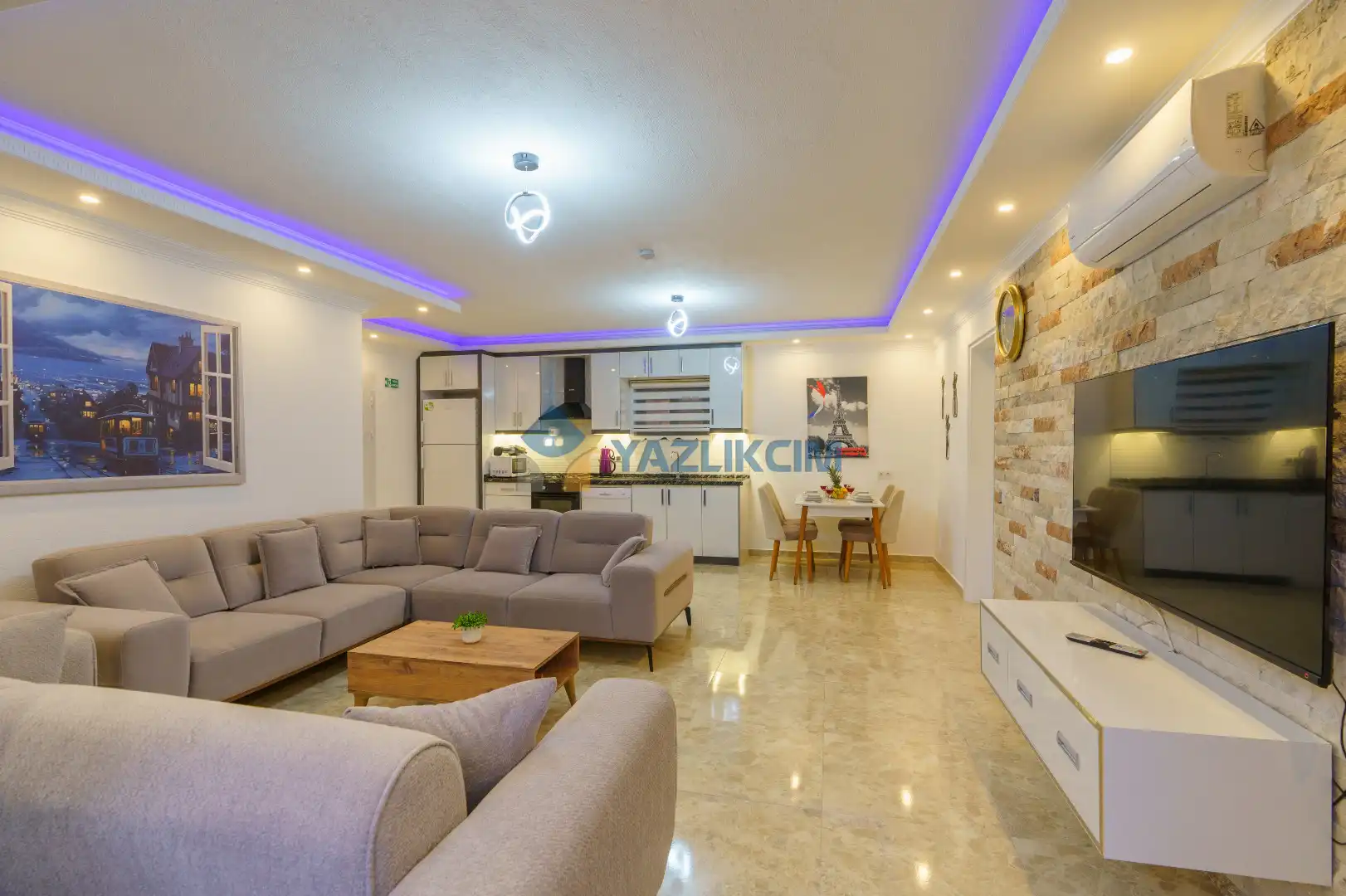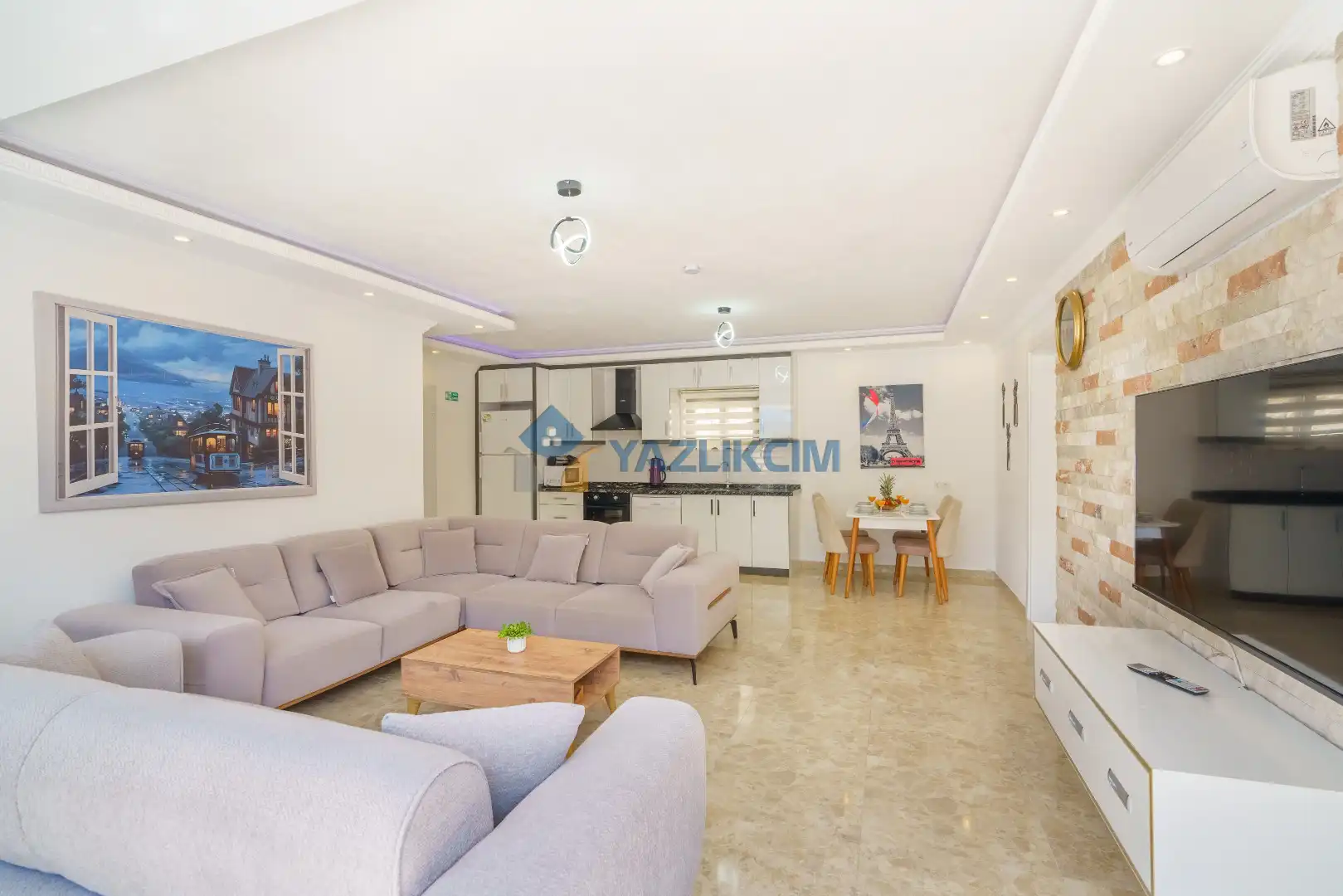 Salon Detayları : Oturma grubu, Uydu TV (LCD), Klima, yemek masası, bulunmaktadır.