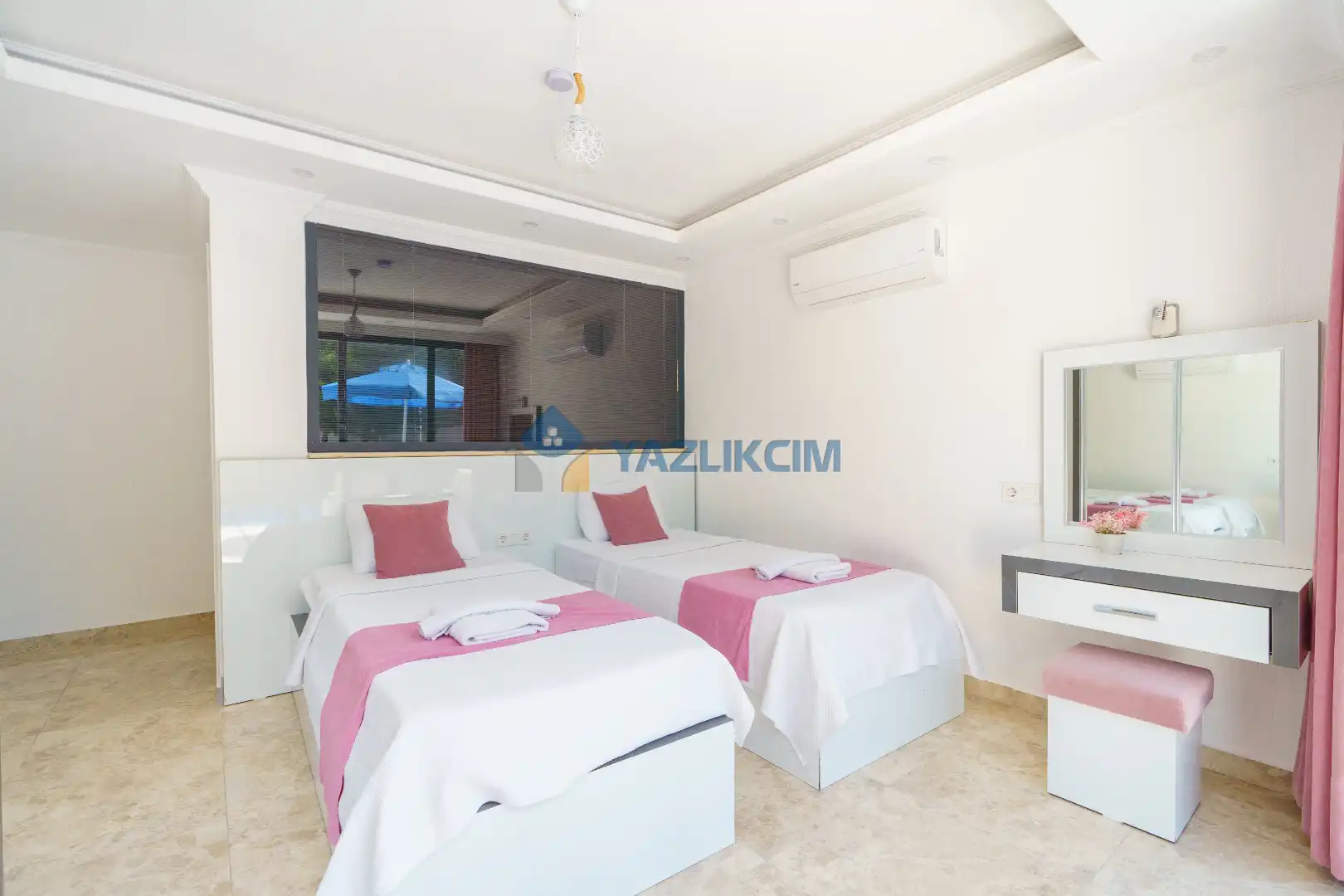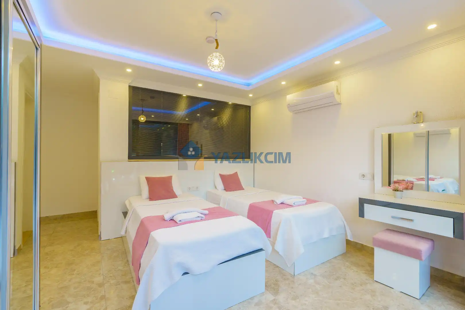 Detayları : 2 adet tek kişilik yatak, park yatak , Komodin, Makyaj masası, Klima, Elbise dolabı, Banyo/ WC bulunmaktadır.