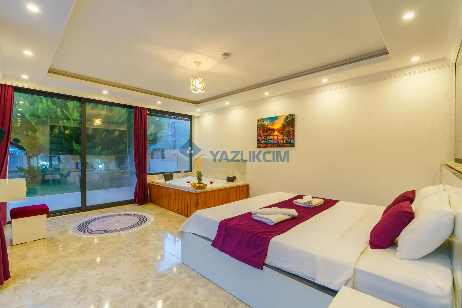 Detayları : Çift kişilik yatak, Makyaj masası, Komodin, Klima, TV, Elbise dolabı, Banyo/ WC bulunmaktadır.