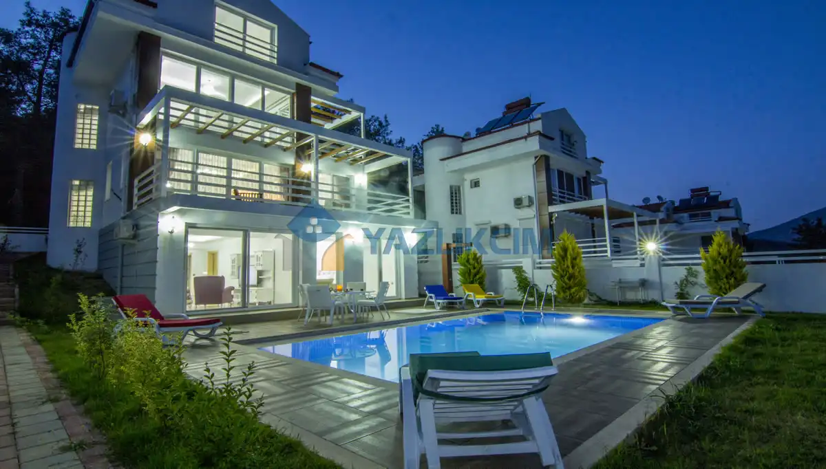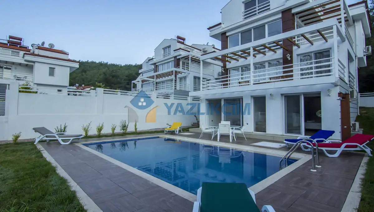 Fethiye Ölüdeniz denilince aklınıza ilk deniz ve şahane manzarası geliyor öyle değil mi? Ancak Ölüdeniz deniz turizminin yanı sıra benzersiz doğası ile de tatilcilerin dikkatini çeken bir bölge. Burada yapacağınız tatillerin huzurlu ve doğa içinde geçmesini istiyorsanız kiralık villa Tala 2’yi gönül rahatlığı ile tercih edebilirsiniz. Kalabalık aileler için tatil konaklaması denilince aklınıza ilk Tala 2 gelecek. Neden mi? Çünkü doğa manzaralı kiralık villa Tala 2, 5 yatak odası ve 5 banyoya sahip oldukça geniş bir villadır. Deniz ve plaja yalnızca 5 km uzaklıkta olan villa, doğanın tam kucağında hazırlanmış bir durumda. Yeşil ile gökyüzü mavisini birleştiren bir manzaraya sahip olan villa, diğer kiralık villalarımız Tala serisi ile komşu durumunda. Aile büyükleri ve çocuklarınız ile unutulmaz bir konforda tatil geçirmeye hazır olun. Geniş alanları ile kiralık villa Tala 2 herkese yetecek konforlu alanlara sahip. Villayı dilerseniz yakın aile dostlarınız ile de kiralayabilirsiniz. Geniş bir villa olan Tala 2’de herkes rahat edebilecek. 3 katlı villanın geniş bahçe ve havuzu dilediğiniz saatte istediğiniz gibi dinlenebilme özgürlüğü sağlıyor sizlere. Eğer şehirde yaşıyorsanız fazlasıyla yorulduğunuzu tahmin ediyoruz. Doğanın dinlendirici etkisine her daim ihtiyaç duyulur. Bu istekler ve öncelikler çerçevesinde hazırlandı villanız. Rahat, konforlu, keyifli, mutlu bir tatil geçirebilmeniz için villa Tala 2’ye davetlisiniz.