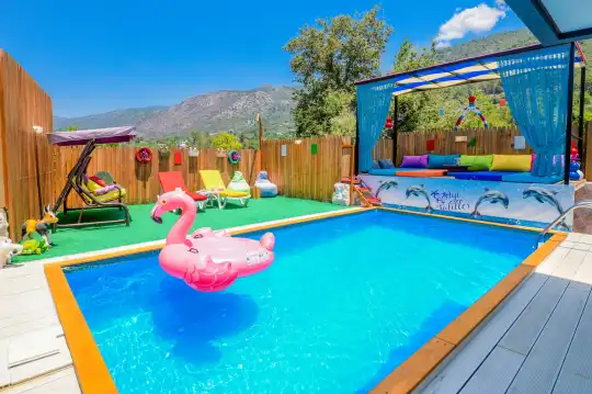 Doğa manzaralı balayıvillasında huzurlu konaklayıp aynı zamanda romantik bir şekilde balayı yapabileceğiniz kiralık villa Tuğba, Antalya’nın doğa ile iç içe bölgesi Üzümlü’de sizi bekliyor.