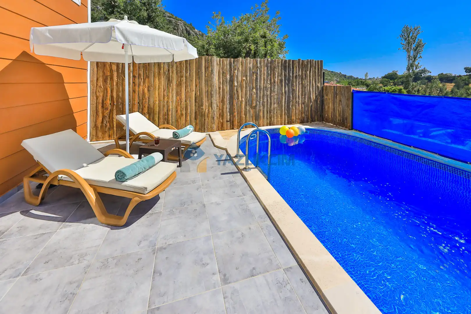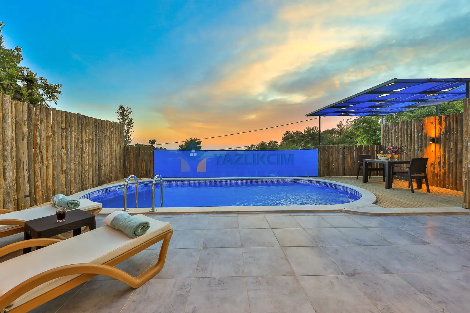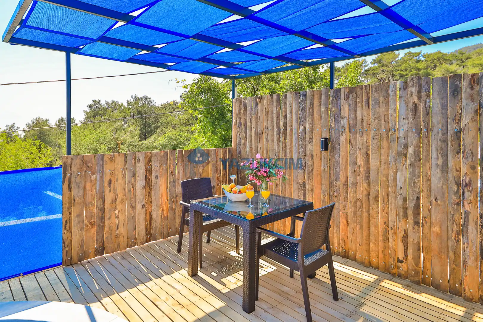 Detayları : Şezlong , güneşlenme şemsiyesi , barbekü , yemek masası ve sandalyeleri bulunmaktadır.