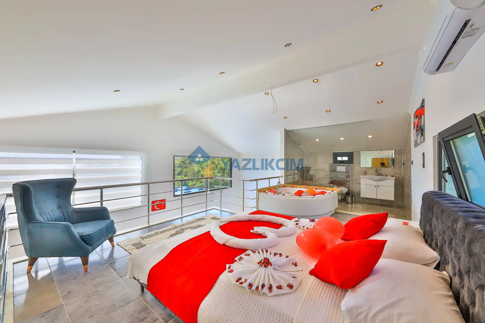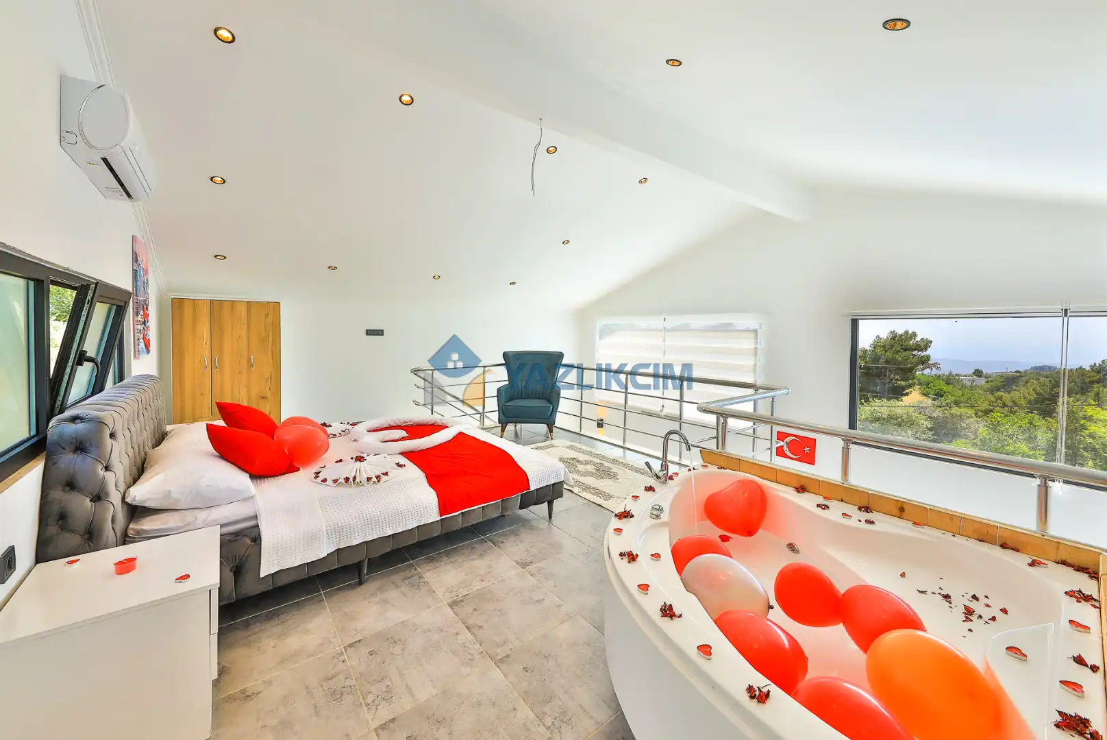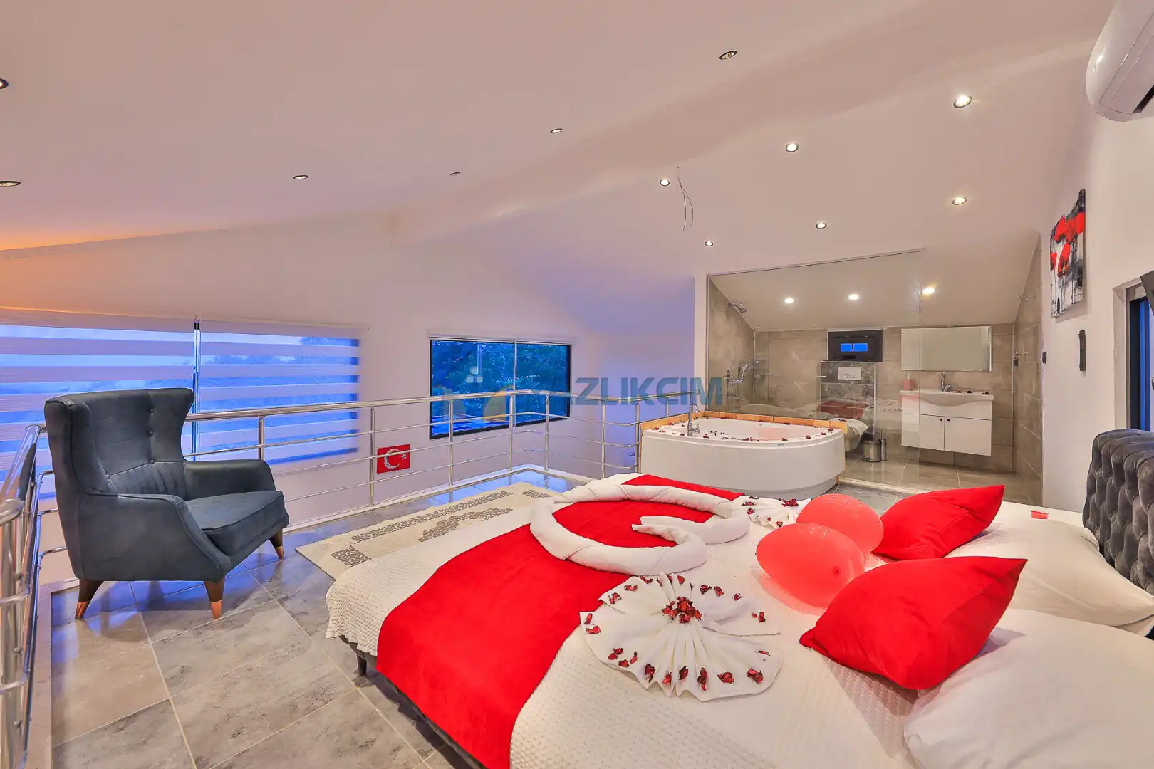 Detayları : Çift kişilik yatak , klima , jakuzi , komodin , elbise dolabı , banyo ve lavabo bulunmaktadır.