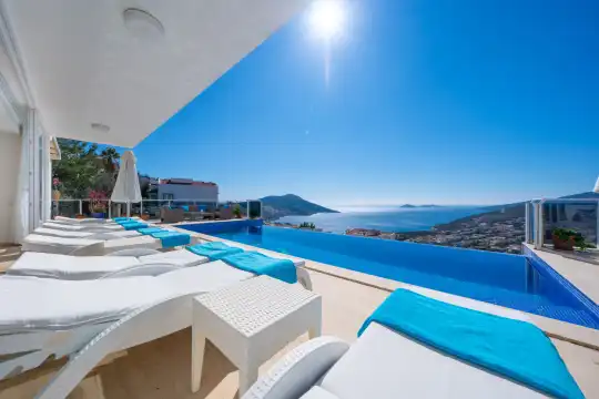 Deniz manzaralı kiralık villa Waratah, 5 yatak odası ve 5 banyosu bulunan, oldukça geniş bir yaşam alanı. Tam da kalabalık ailelerin gönül rahatlığı ile tercih edebileceği gibi. Geniş aileler için tatil konaklaması önceliği hazırladığımız villa Waratah’ın denize olan uzaklığı yalnızca 2 km’dir. Bahçesinden villanın içine kadar oldukça ferah alanlara sahip olan villa, Kalkan’da yazlık kiralık villa arayışınızı sonlandıracak ve sonraki tatilleriniz için de ilk tercihiniz olacak. Yazlık villaların en güzel özellikleri de, istediğiniz özellikle villaları tercih edebilmenizdir. Waratah da yine tercihleriniz doğrultusunda size konforlu bir tatil imkanı tanıyan kiralık villanız olacak. Deniz manzaralı odalar, bahçe, teras ile denizin tüm huzuru tatiliniz süresince sizinle olacak. Kalkan şehir merkezini gezebilir, plajda ailenizle yüzebilir, akşam olup villanıza döndüğünüzde gönül rahatlığıyla dinlenebilirsiniz. Üstelik kendi yemeklerinizi hazırlayıp, denizin üzerinden nazlı nazlı kaybolan gün batımı manzarasıyla havuz başında yiyebilirsiniz. Konfor, huzur ve rahatlığa dair her şeyi eksiksiz bulabileceğiniz kiralık villa Waratah ile ailenizdeki tüm bireylere yetecek geniş alanlar fazlasıyla mevcut.